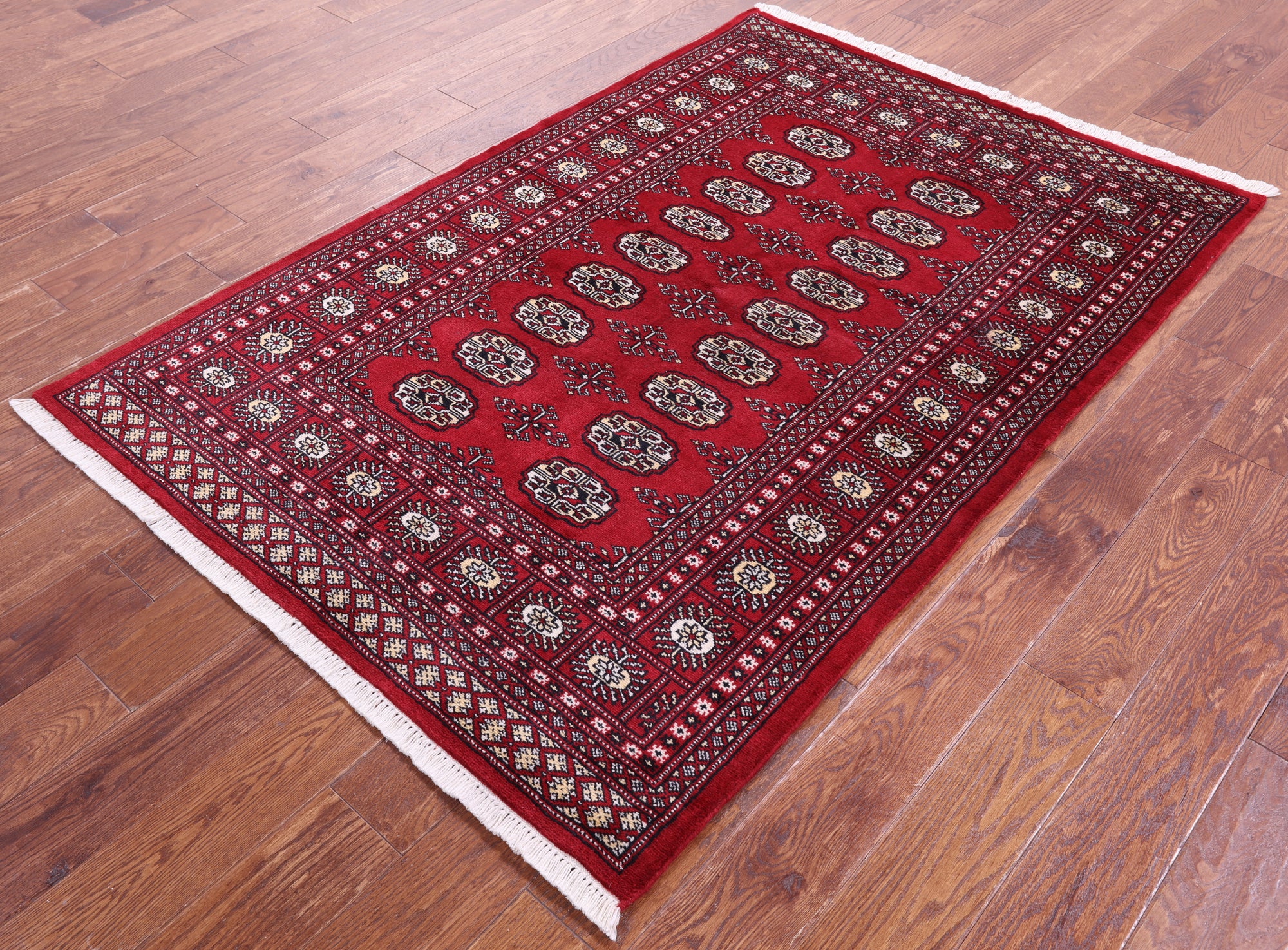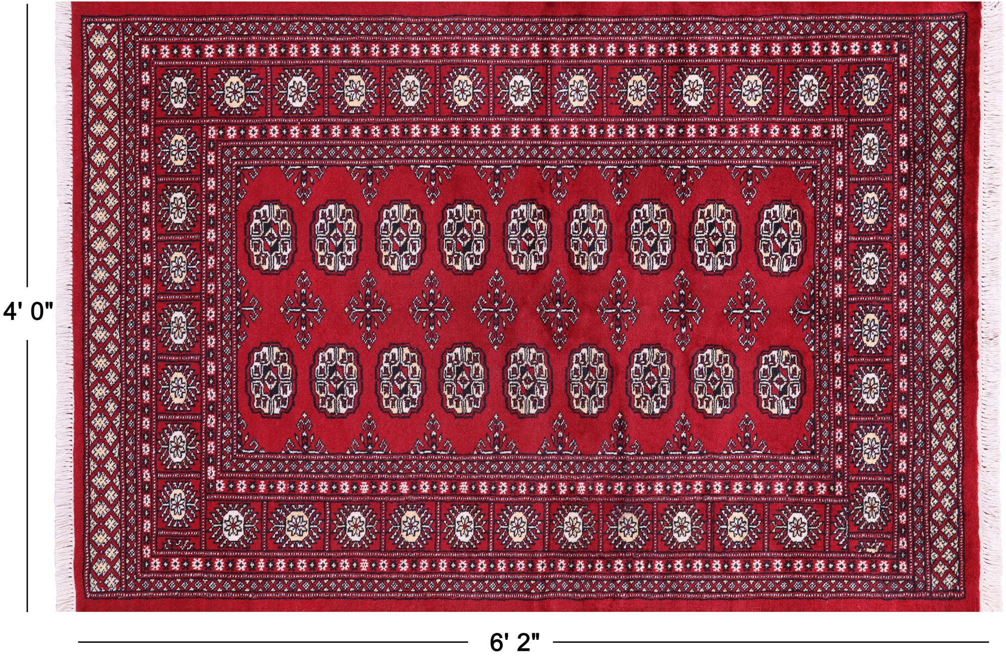 Red Silky Bokhara Hand-Knotted Wool Rug 4' 0" X 6' 2" - Q23836