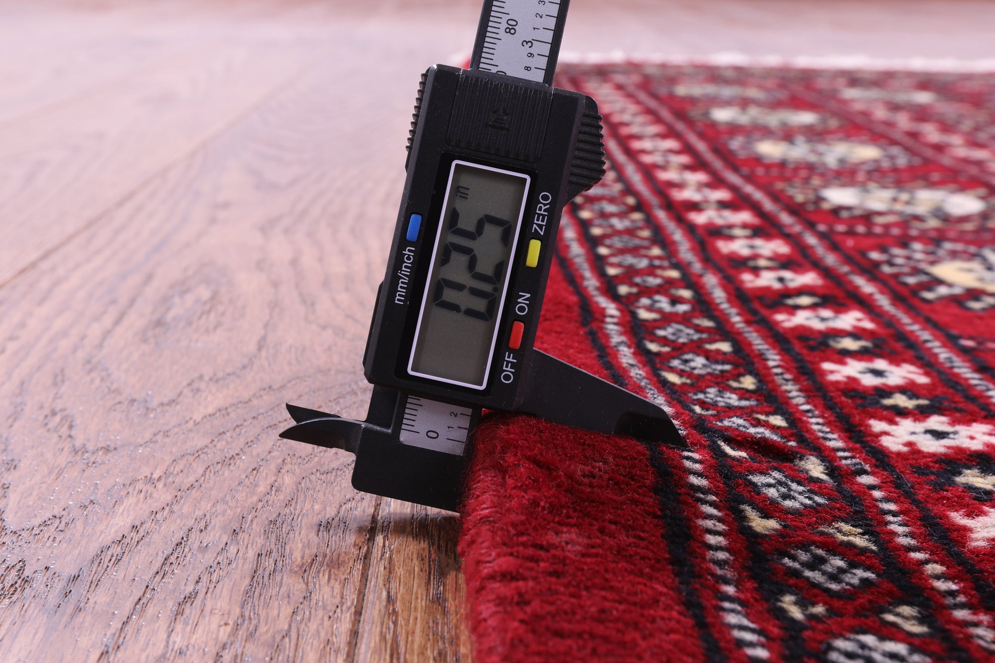 Red Silky Bokhara Hand-Knotted Wool Rug 4' 0" X 6' 2" - Q23836 is backordered and will ship as soon as it is back in stock.
