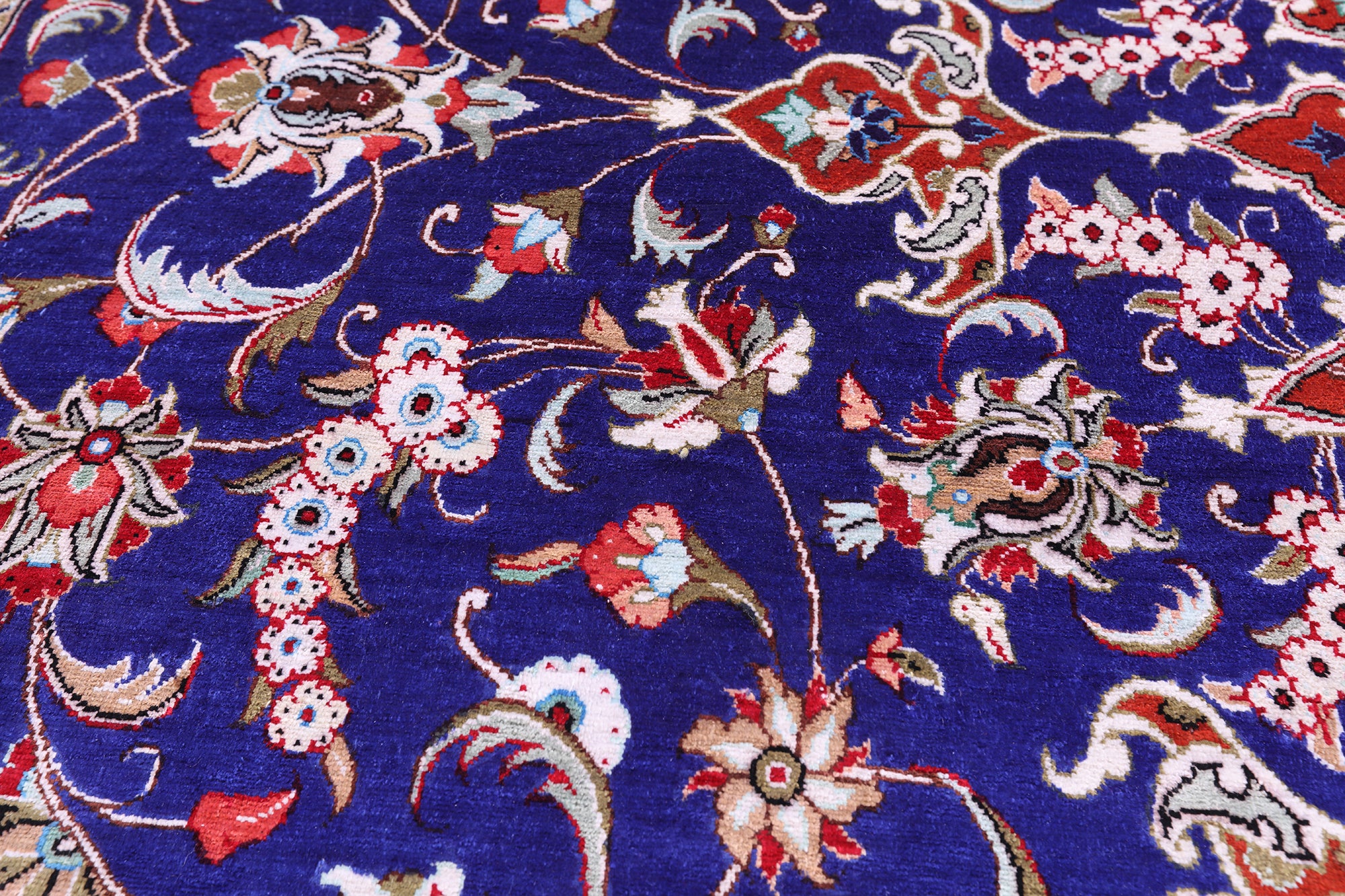Qum rugs are known for their fine craftsmanship, intricate patterns, and exceptional detail. Typically woven with high-quality wool, these rugs often feature graceful floral or medallion designs in shades of red, blue, ivory, and other soft tones. Their refined look and precise weaving make them a popular choice for adding elegance and character to any space.