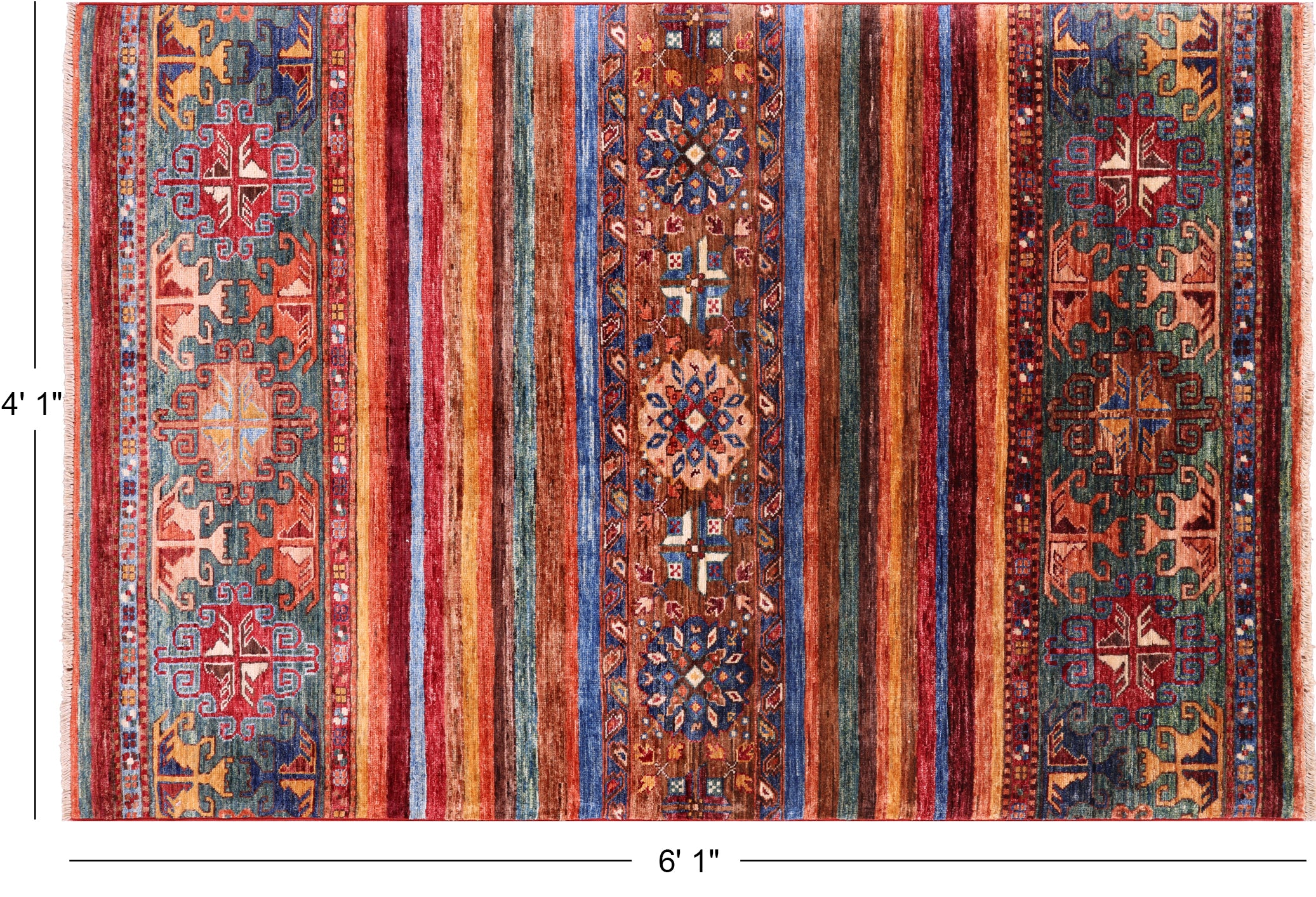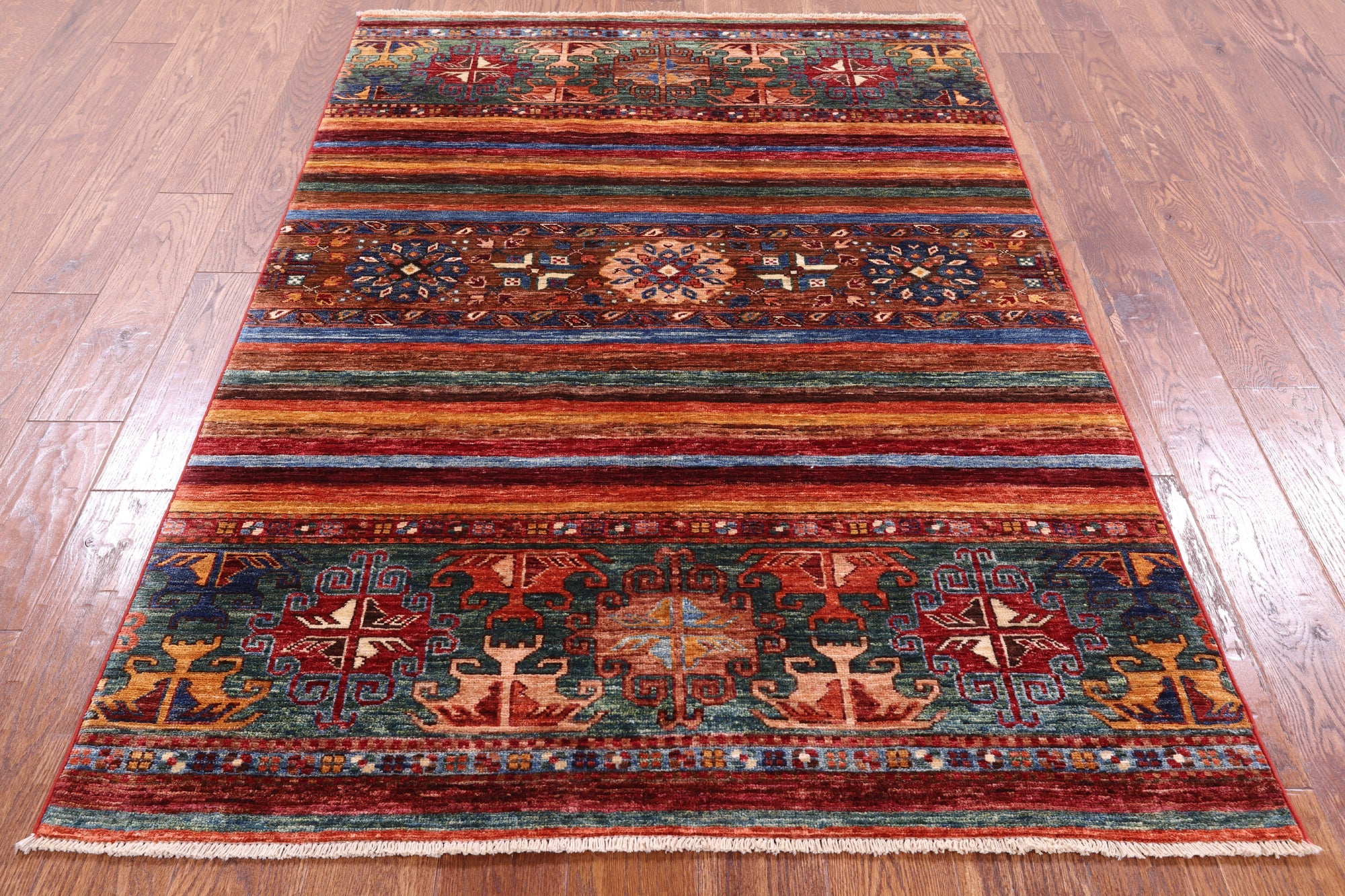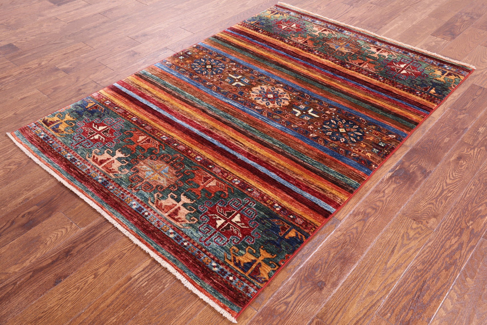 4' 1" X 6' 1" Super Kazak Khorjin Hand Knotted Rug - Q5248