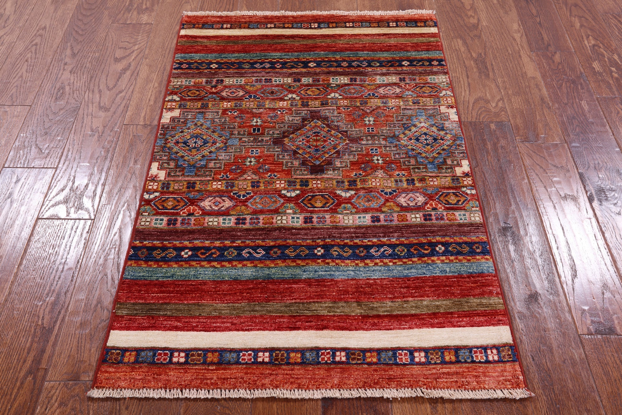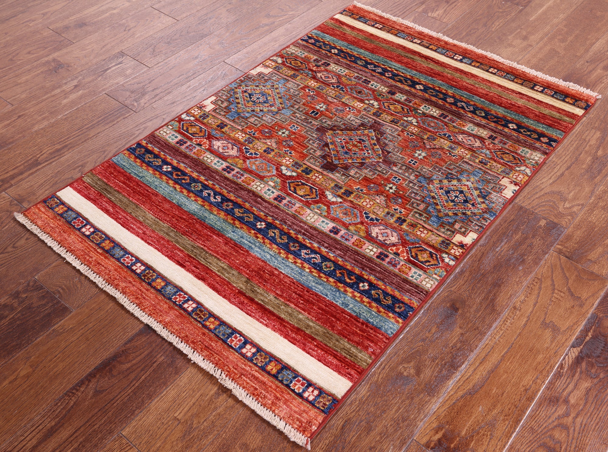 2' 7" X 4' 0" Super Kazak Khorjin Hand-Knotted Wool Rug - Q11037 is backordered and will ship as soon as it is back in stock.
