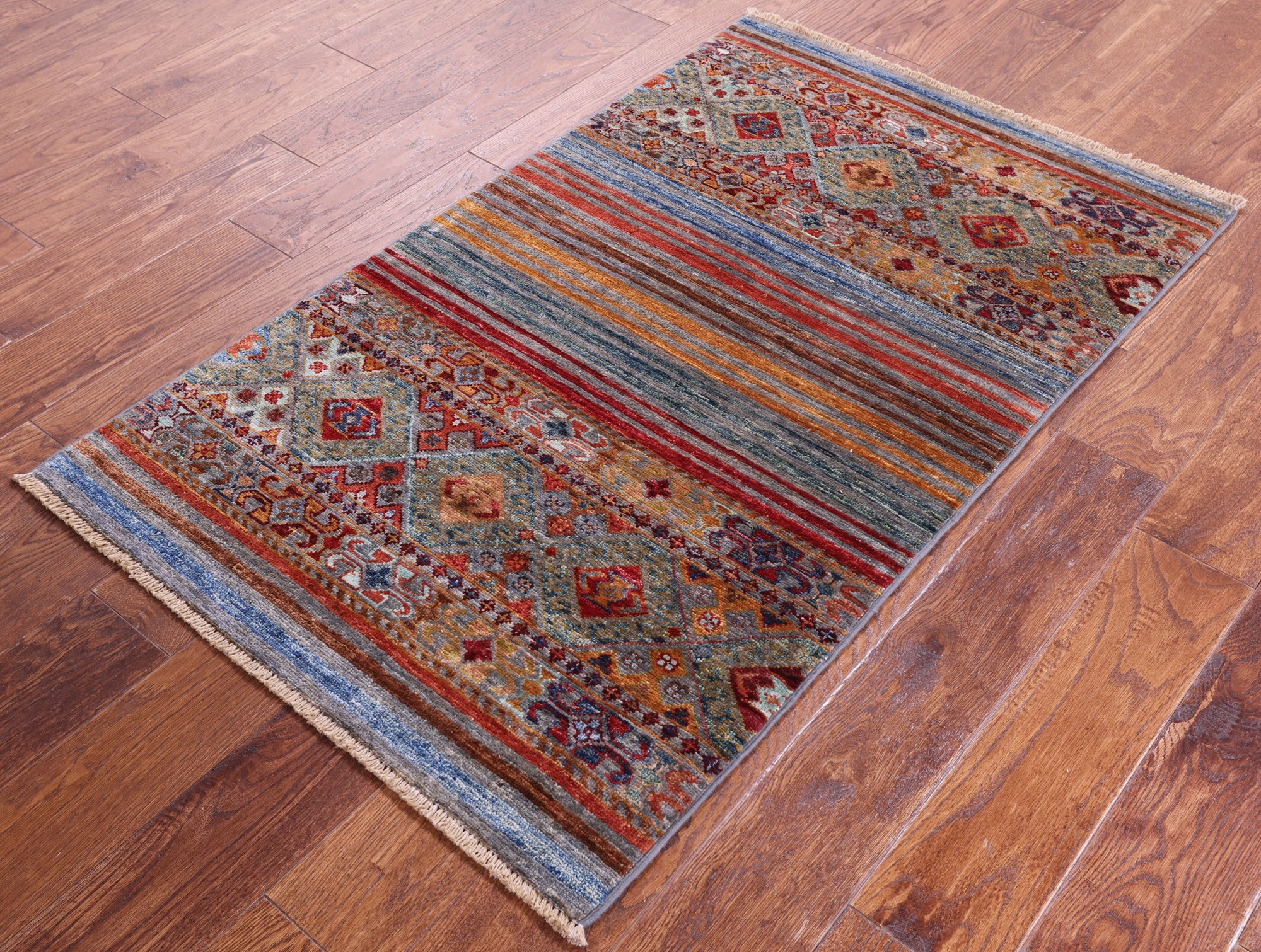 2' 7" X 4' 3" Super Kazak Khorjin Hand-Knotted Wool Rug - Q17726 is backordered and will ship as soon as it is back in stock.