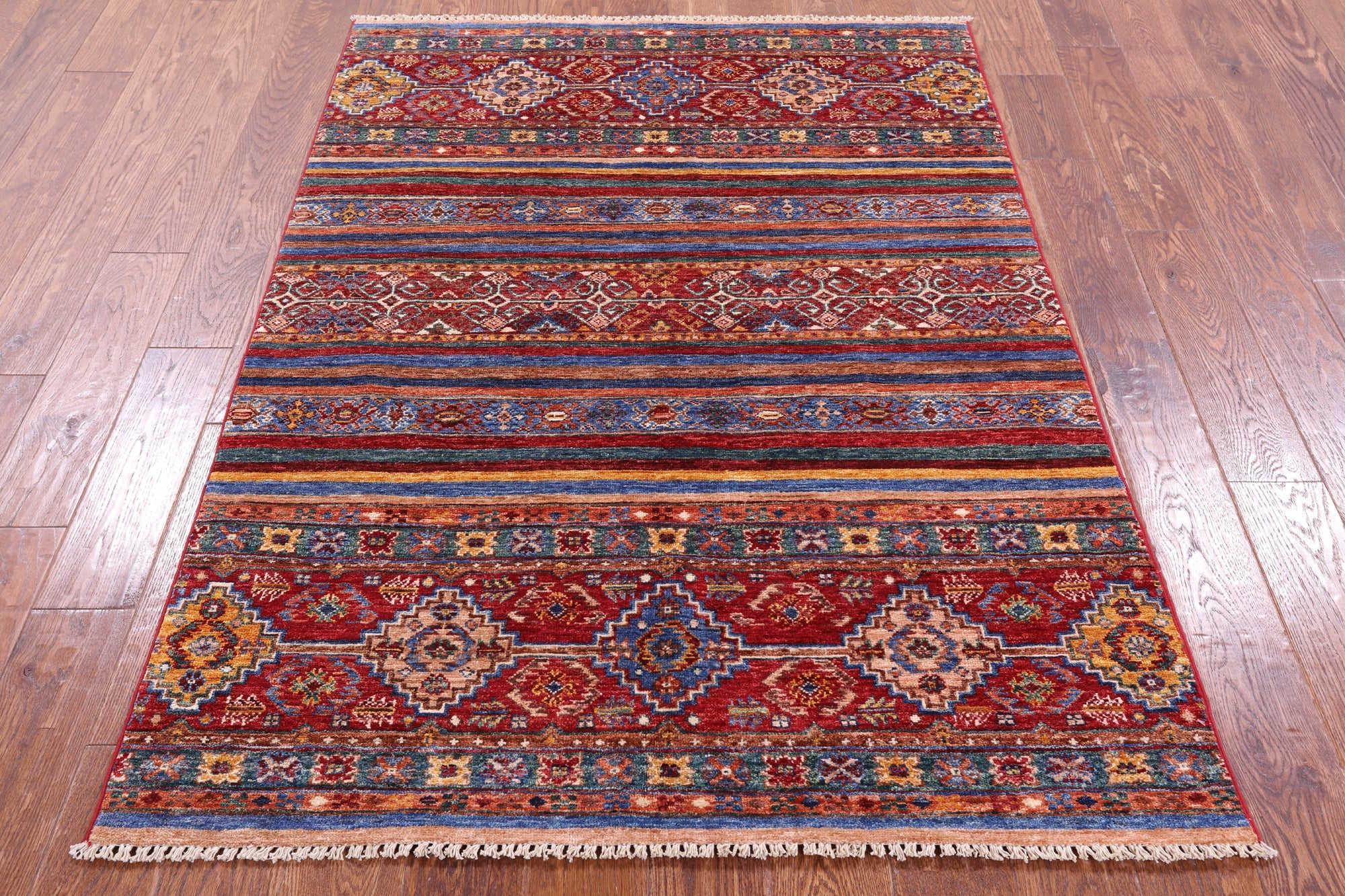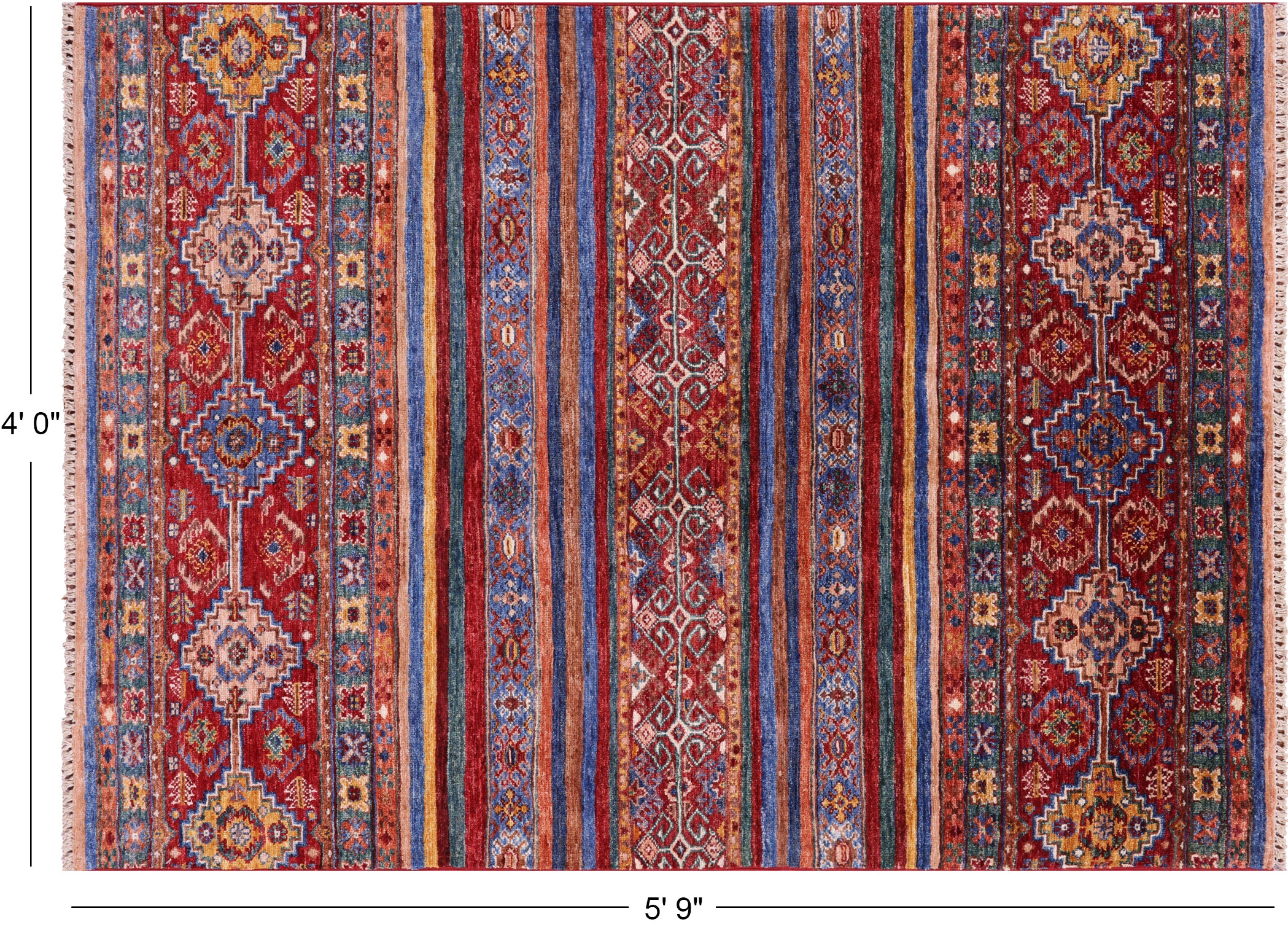 Super Kazak Khorjin Handmade Rug 4' 0" X 5' 9" - Q10786