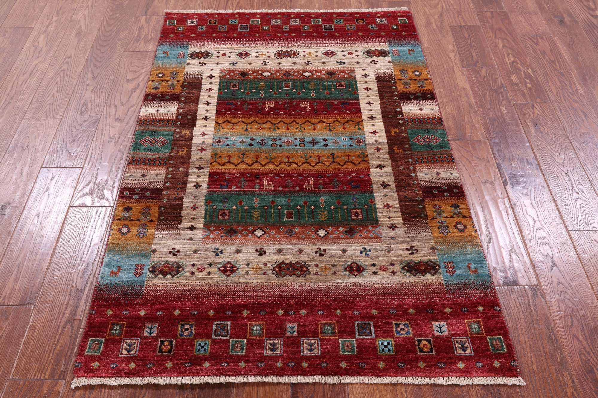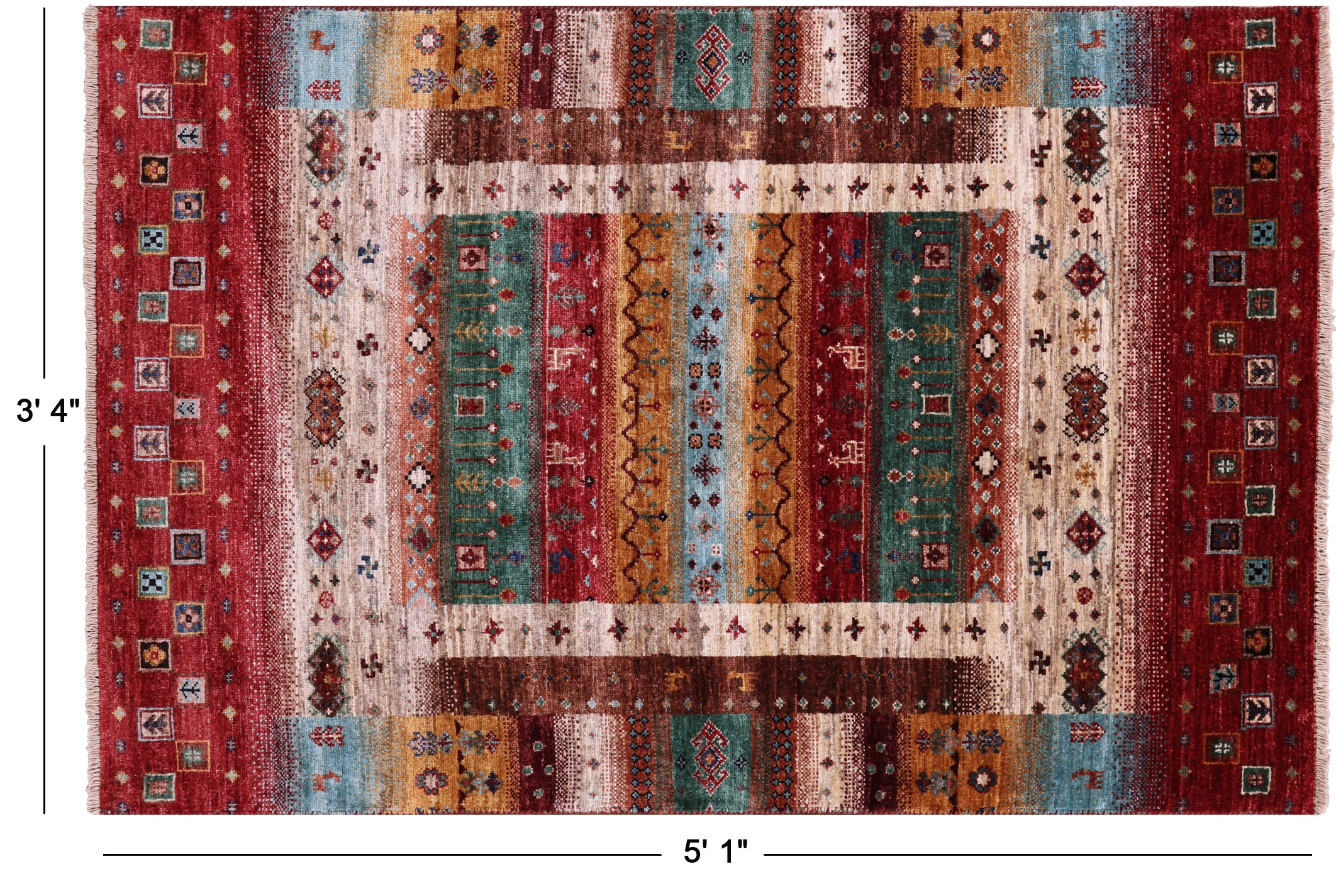 Tribal Persian Gabbeh Hand Knotted Wool Rug 3' 4" X 5' 1" - Q16523