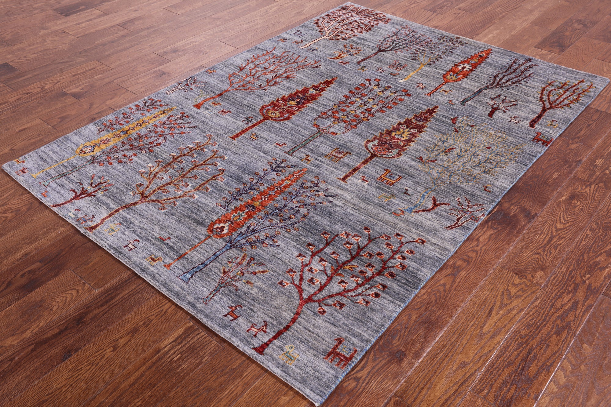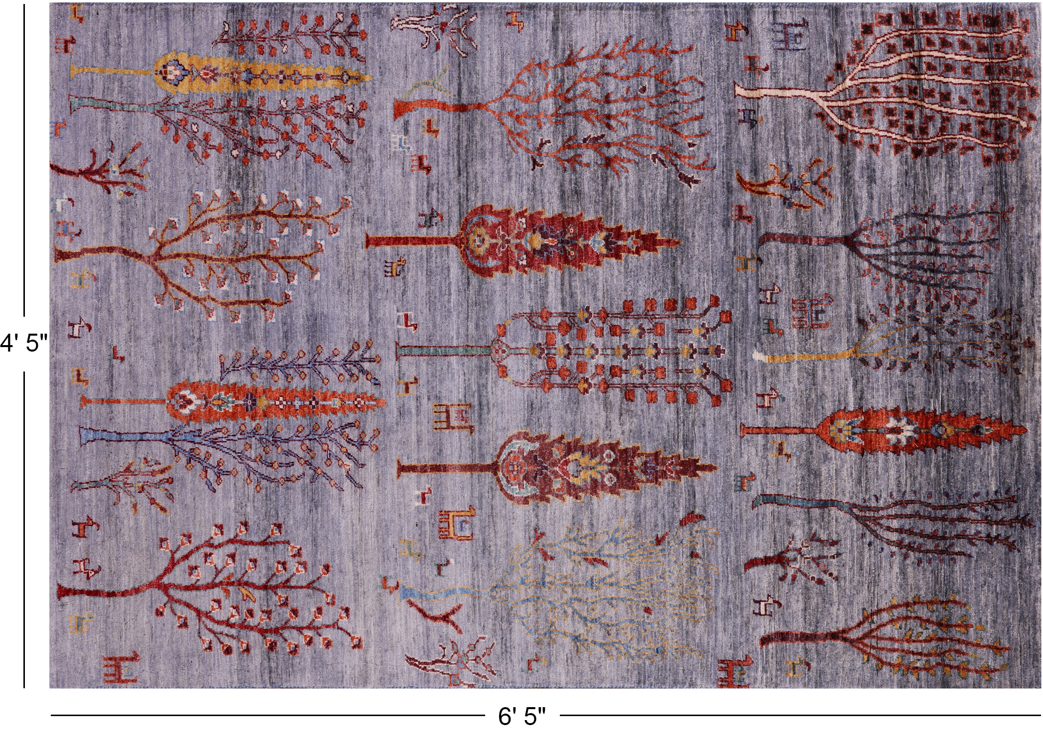 Tribal Persian Gabbeh Hand Knotted Wool Rug 4' 5" X 6' 5" - Q5280