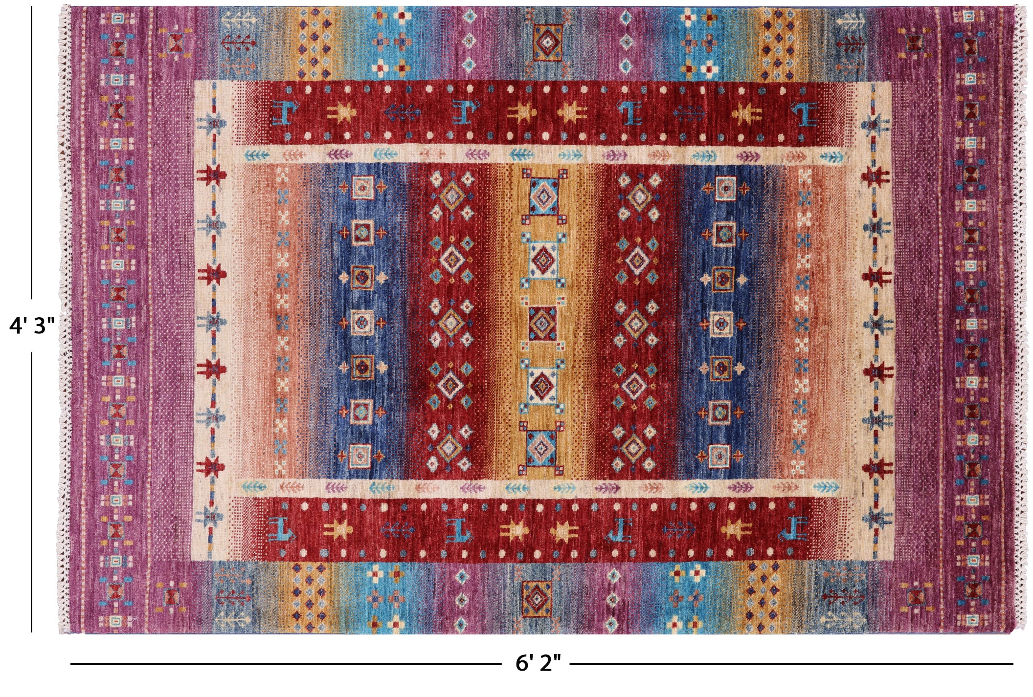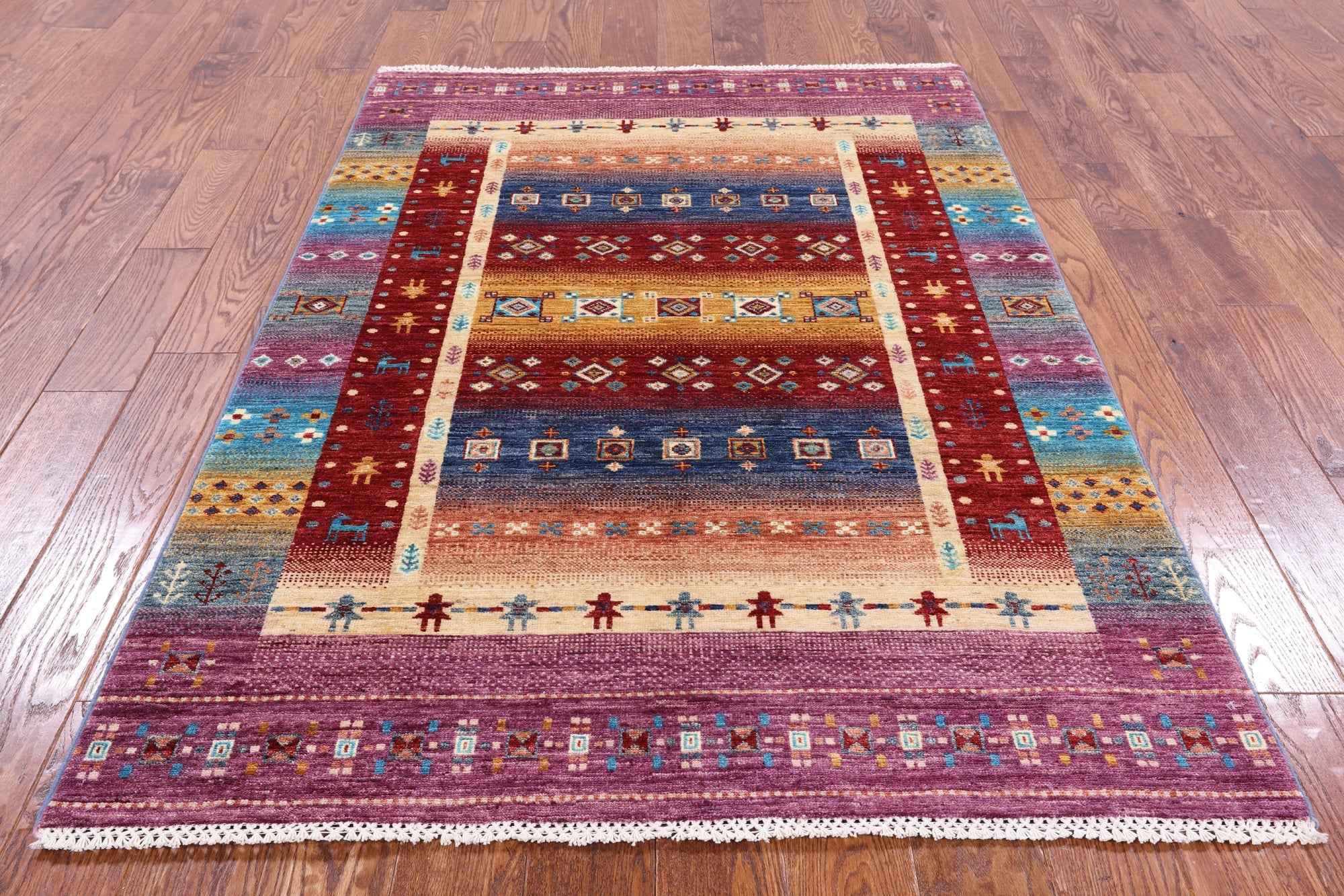 Tribal Persian Gabbeh Handmade Wool Area Rug 4' 3" X 6' 2" - Q3212