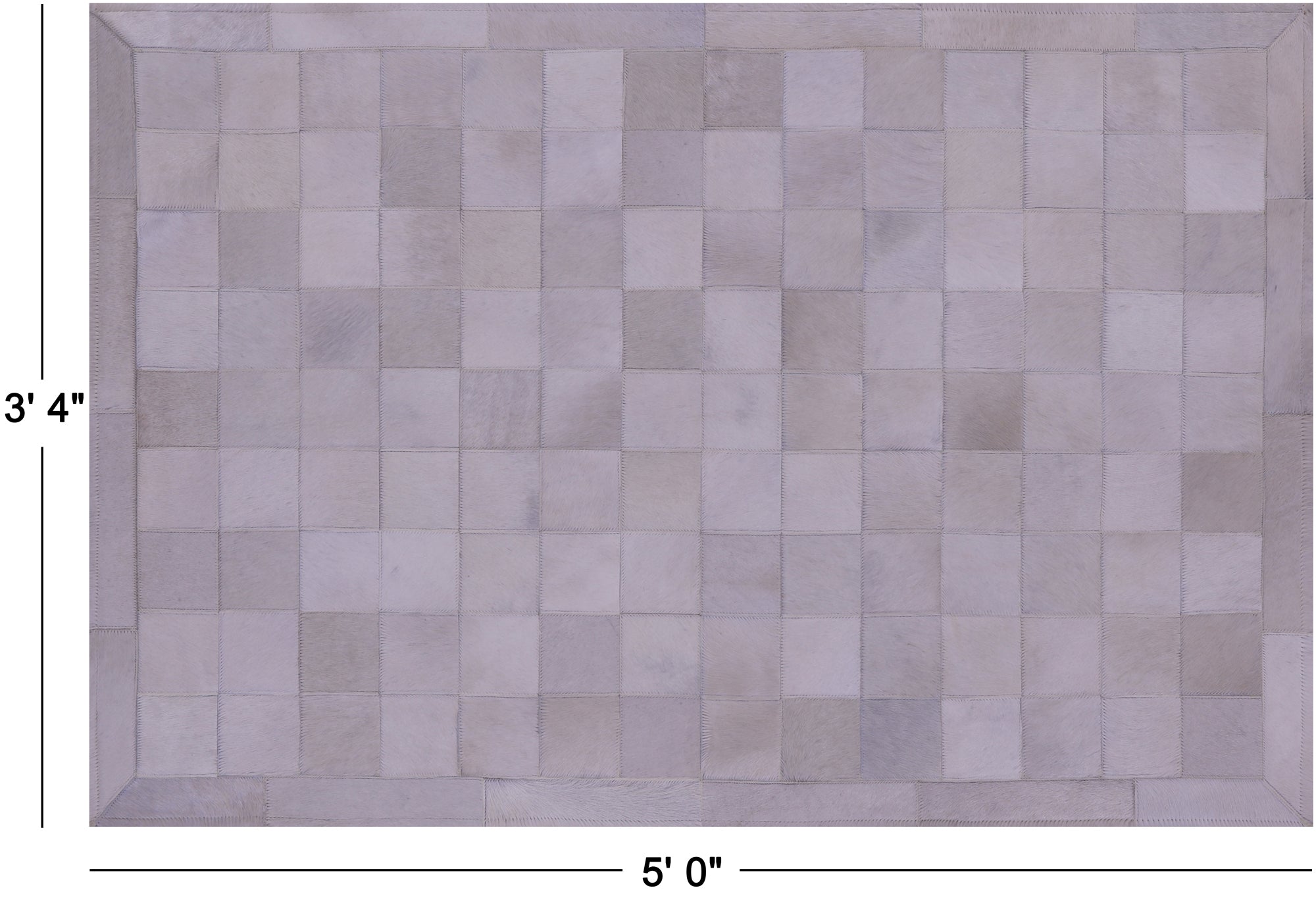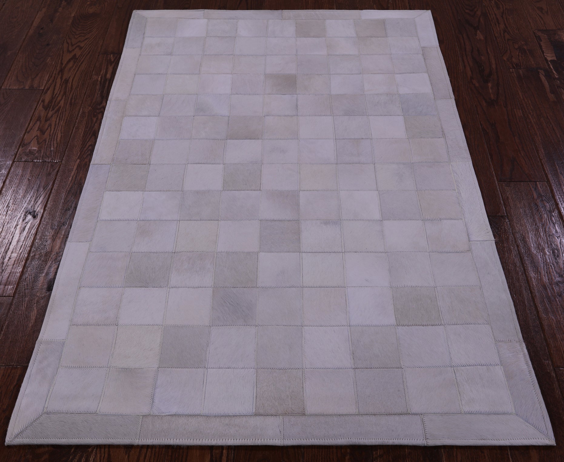 White Natural Cowhide Hand Stitched Rug 3' 4" X 5' 0" - C3404