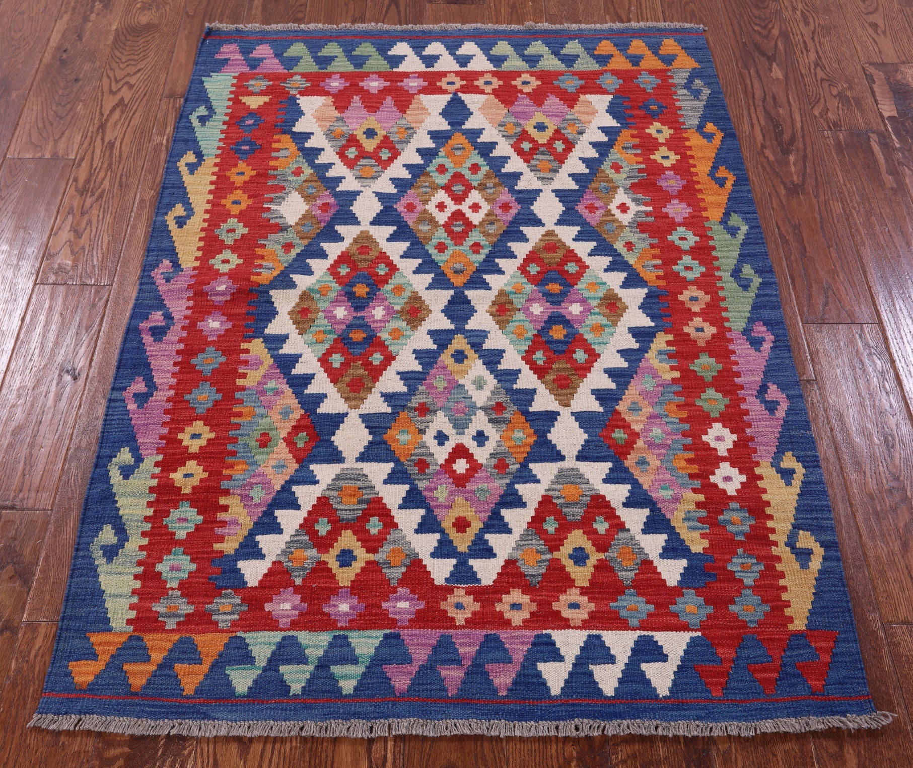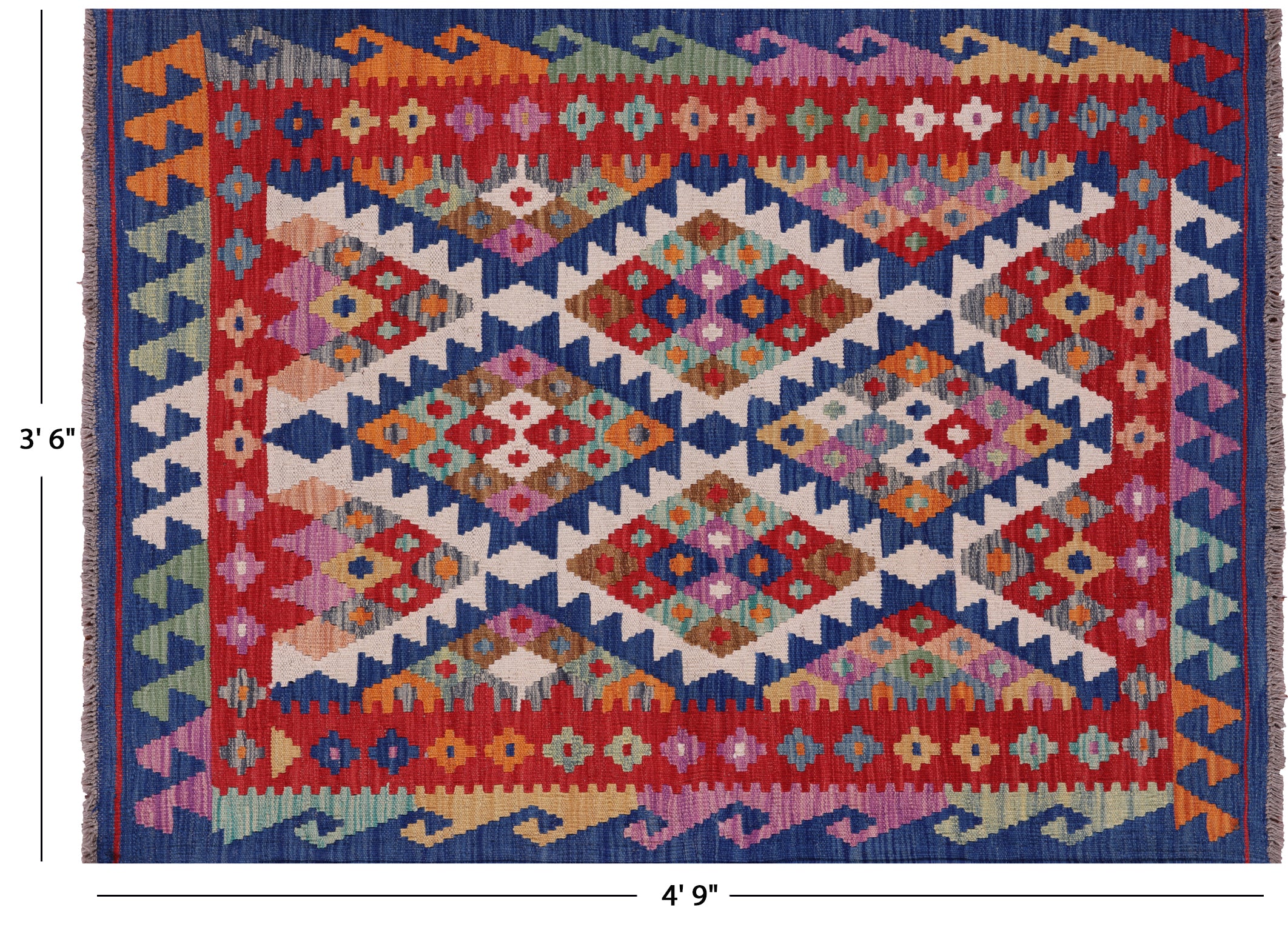 Wool On Wool Flat Weave Kilim Reversible Rug 3' 6" X 4' 9" - Q17911