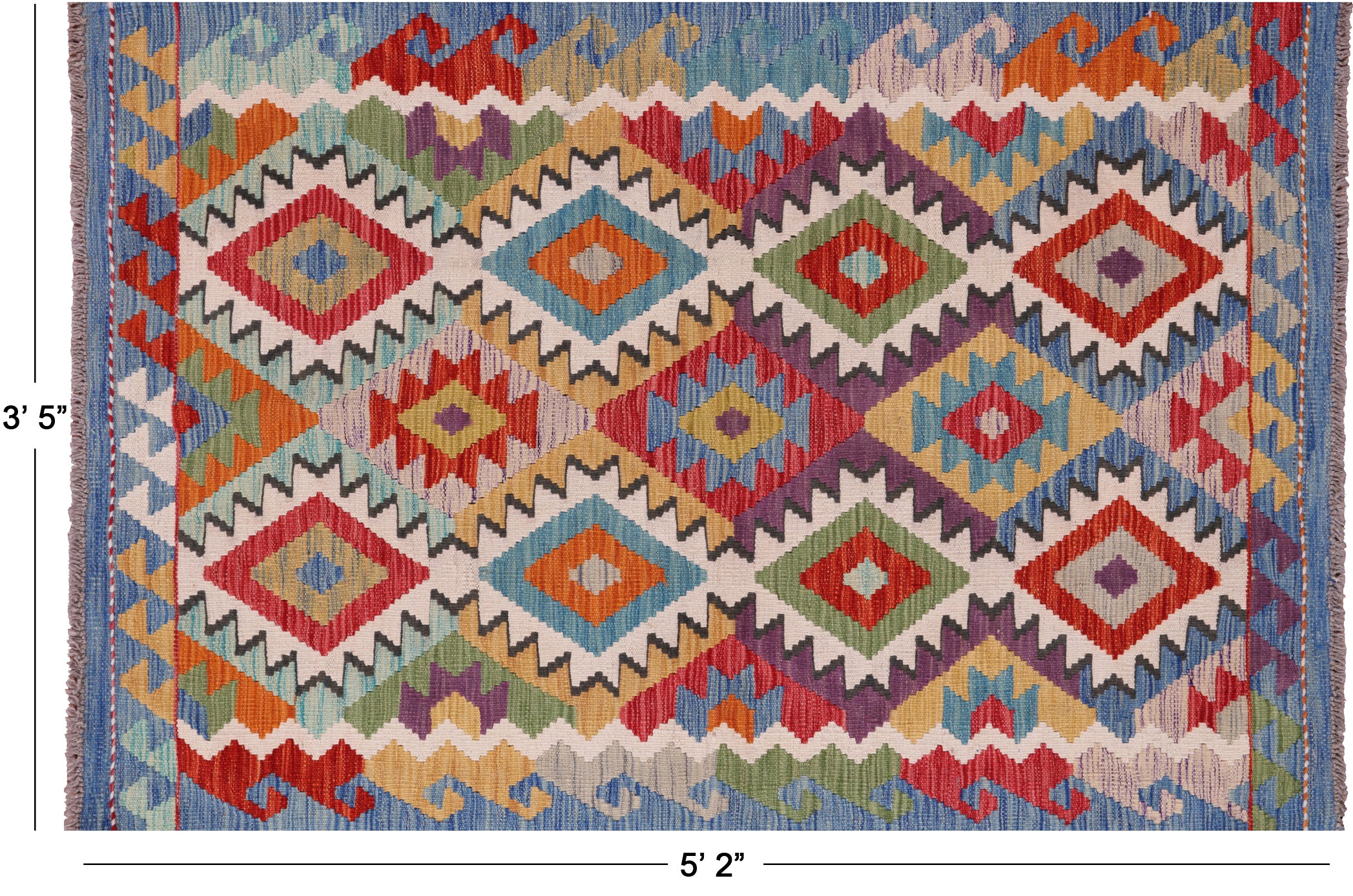 Wool On Wool Flat Weave Kilim Reversible Rug 3' 5" X 5' 2" - Q17936