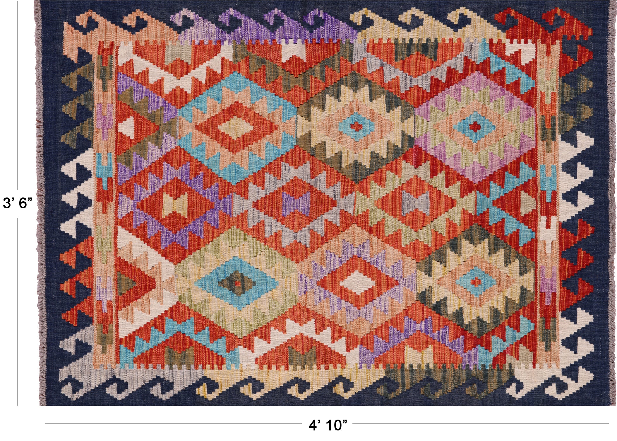 3' 6" X 4' 10" Wool On Wool Flat Weave Kilim Reversible Rug - Q17956