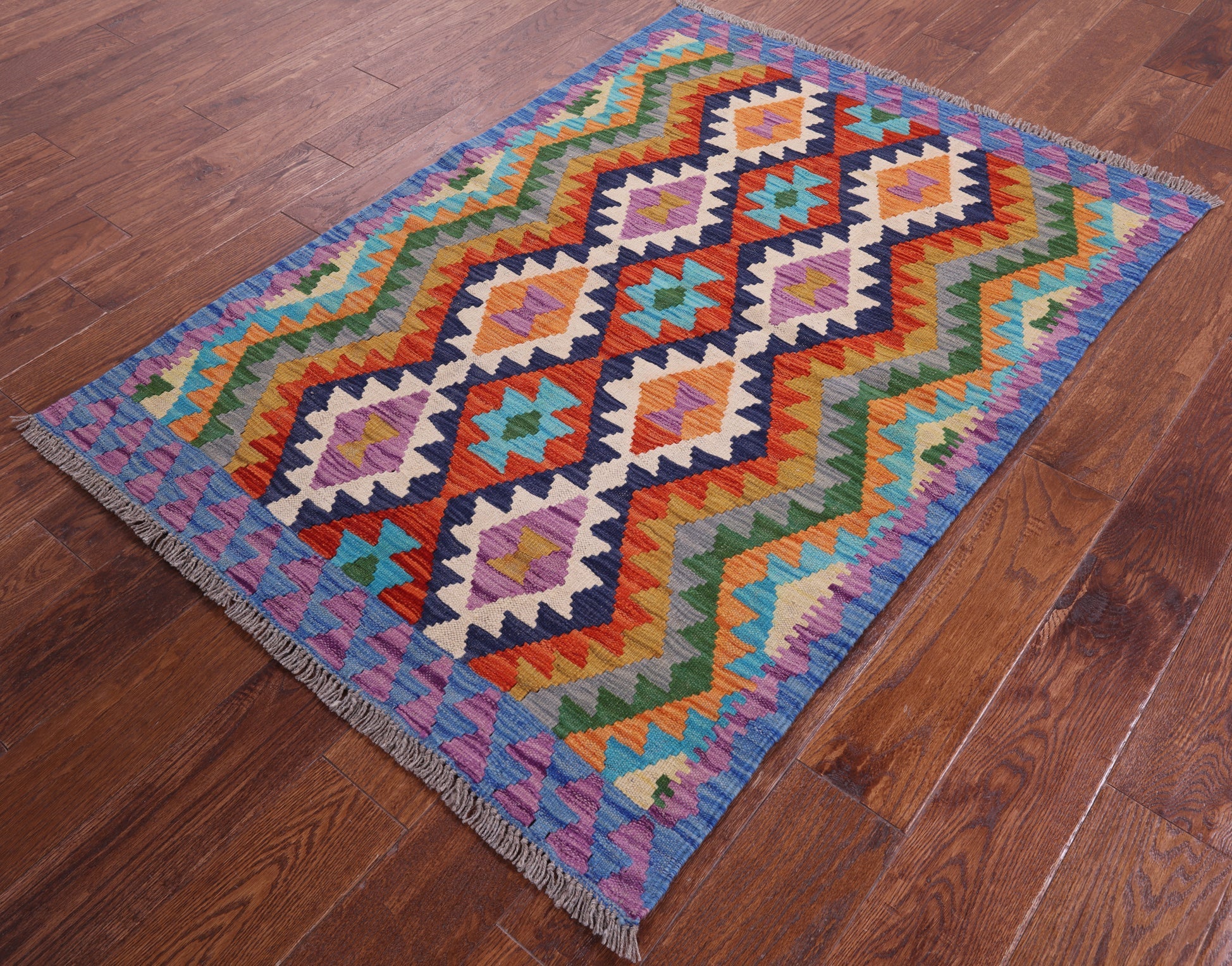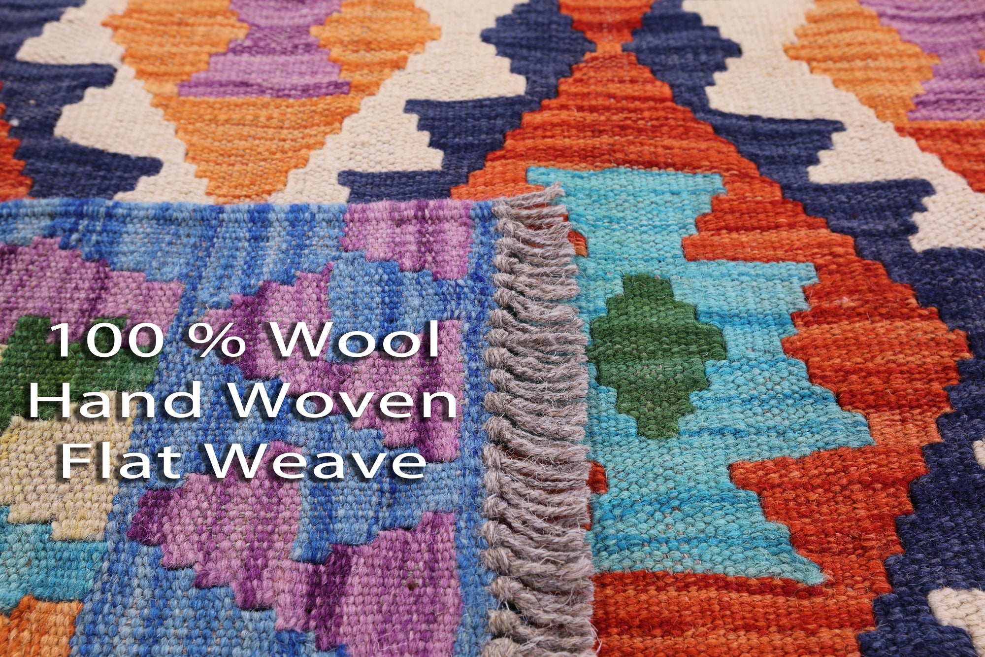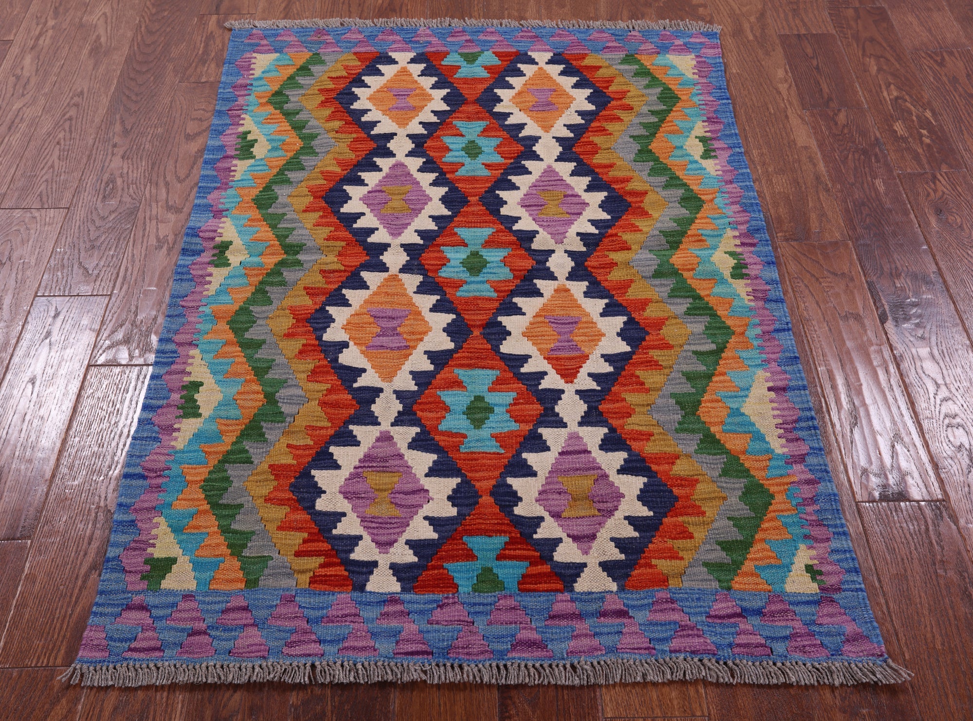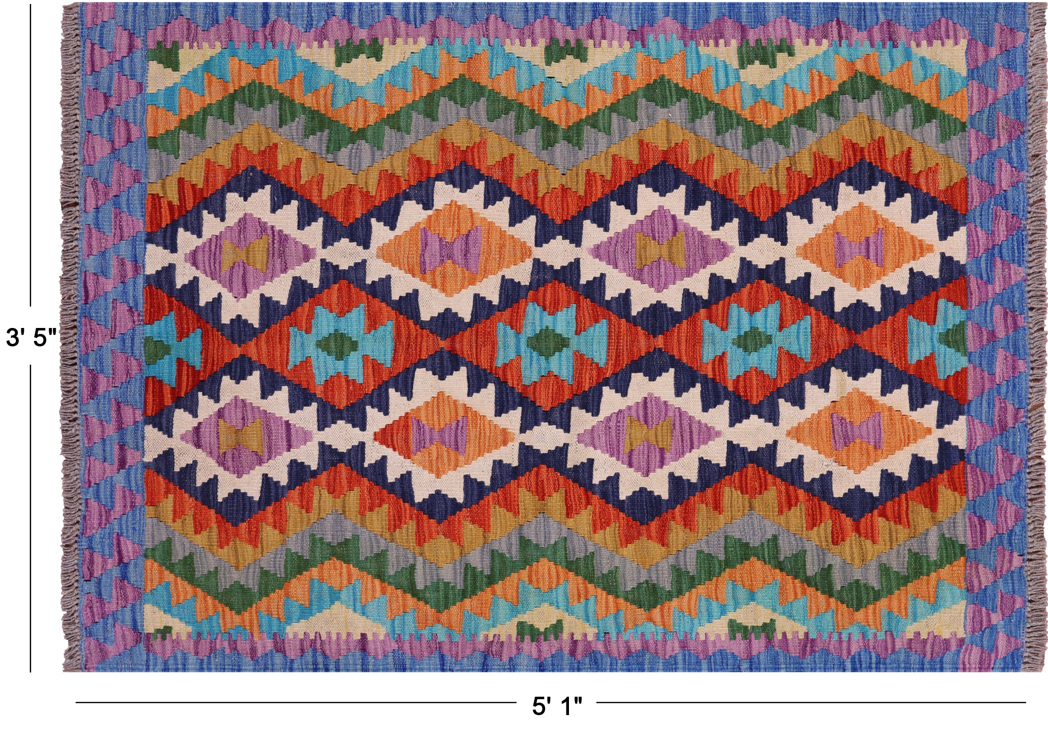 3' 5" X 5' 1" Wool On Wool Reversible Kilim Flat Weave Rug - Q17594