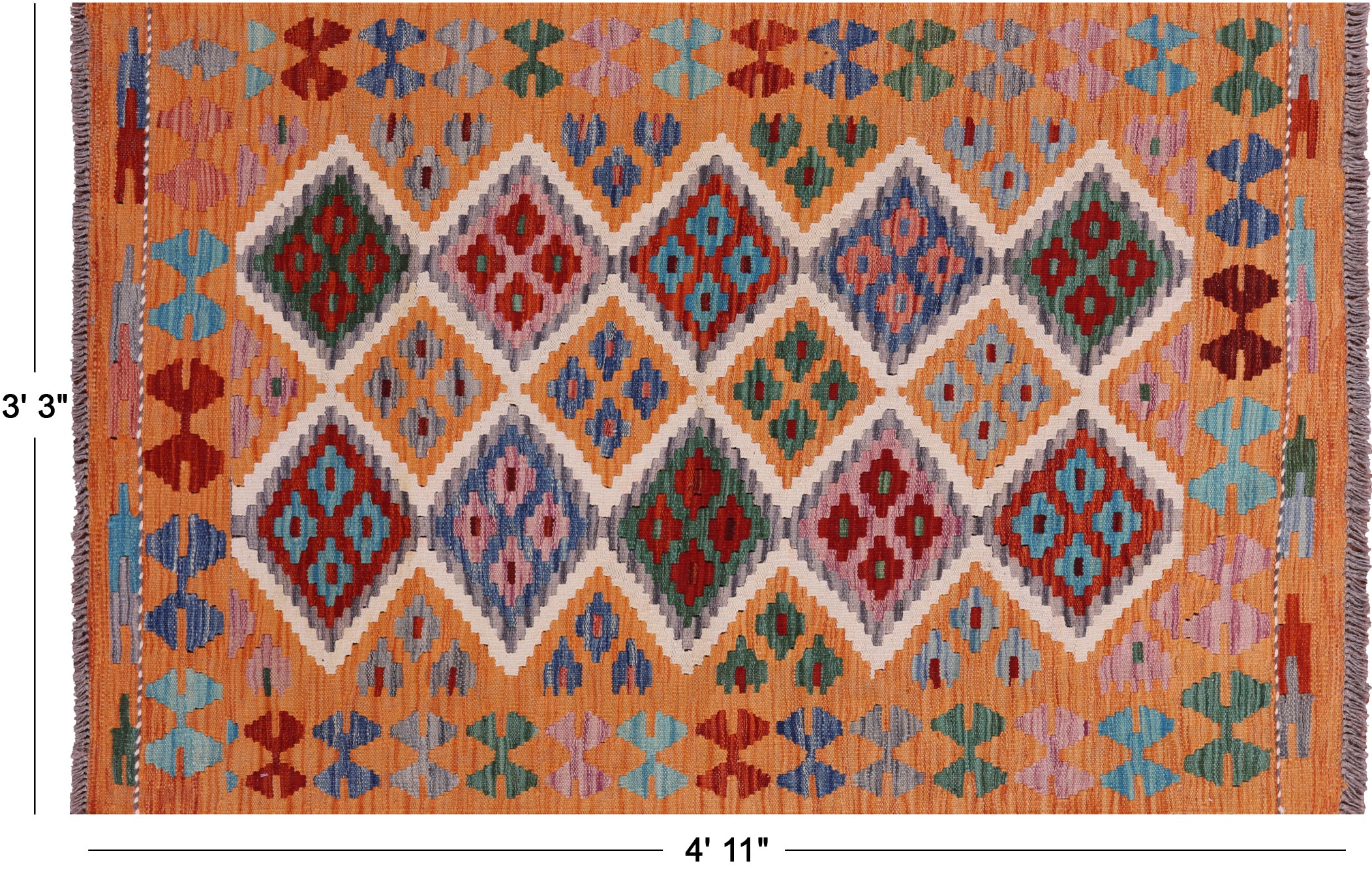 Wool On Wool Reversible Kilim Flat Weave Rug 3' 3" X 4' 11" - Q17604