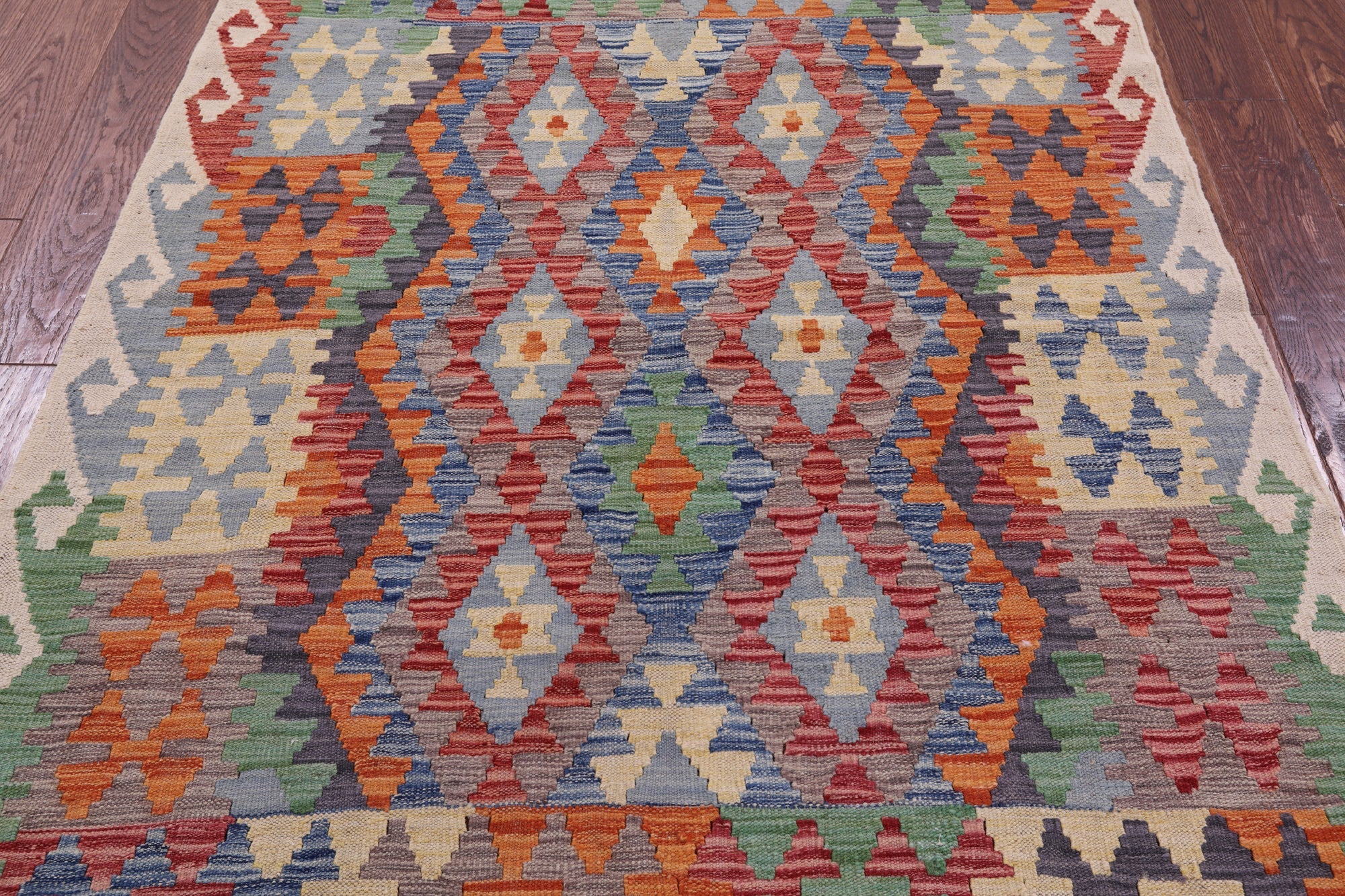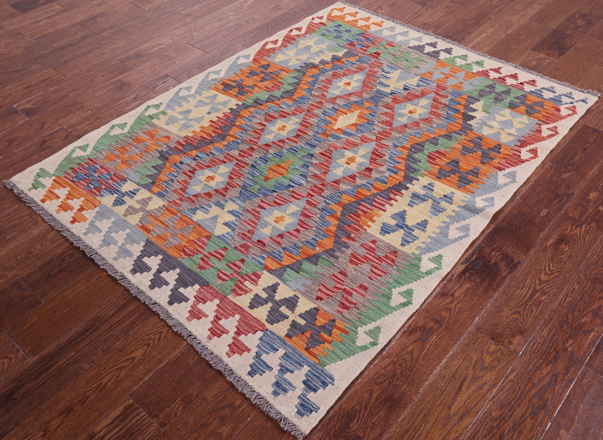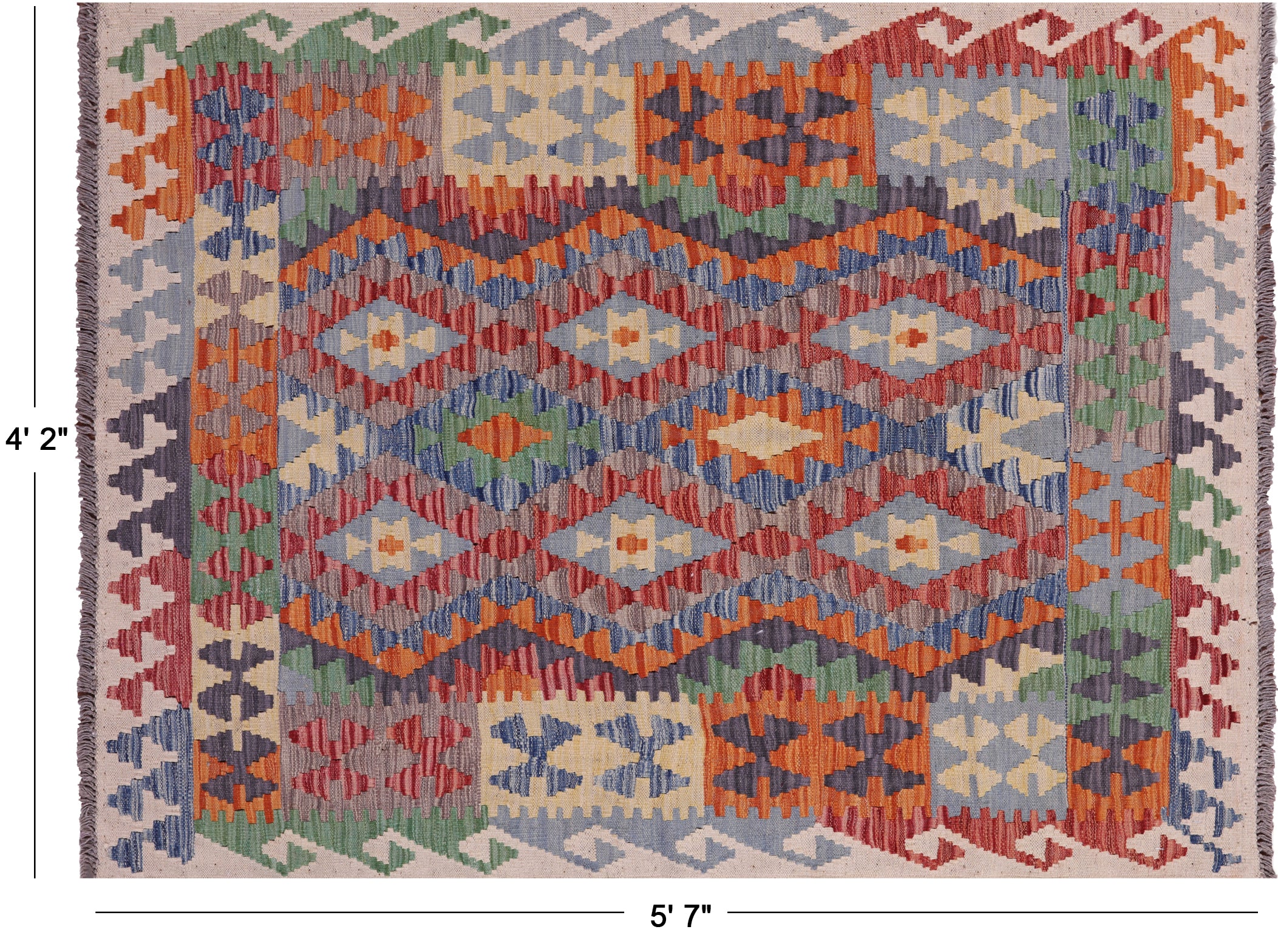 4' 2" X 5' 7" Wool On Wool Reversible Kilim Flat Weave Rug - Q17666