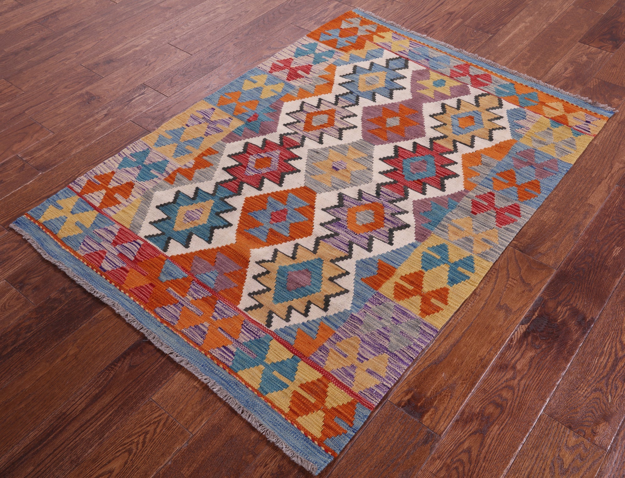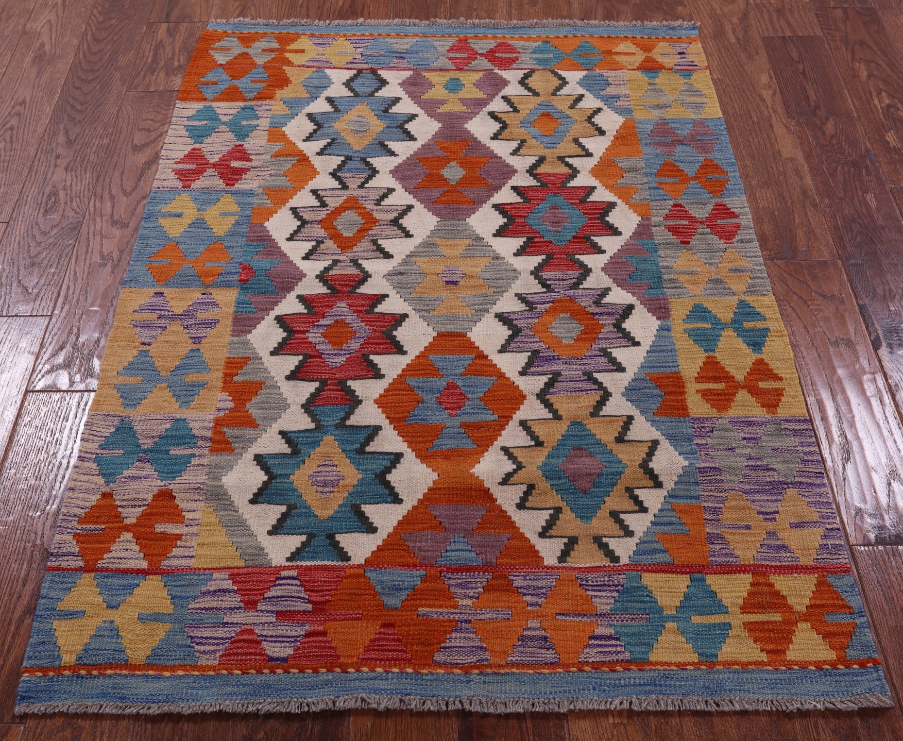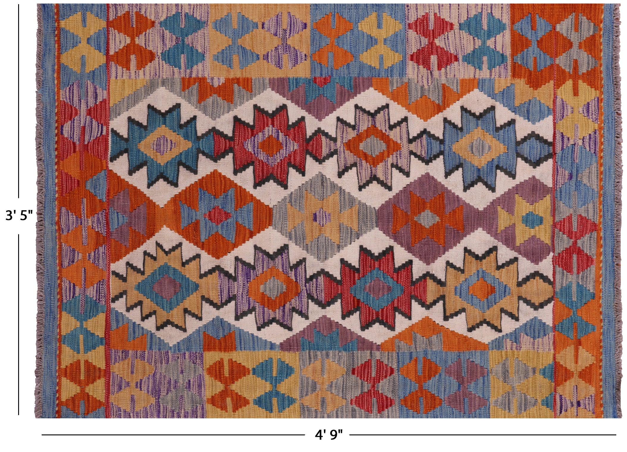 Wool On Wool Reversible Kilim Flat Weave Rug 3' 5" X 4' 9" - Q17913