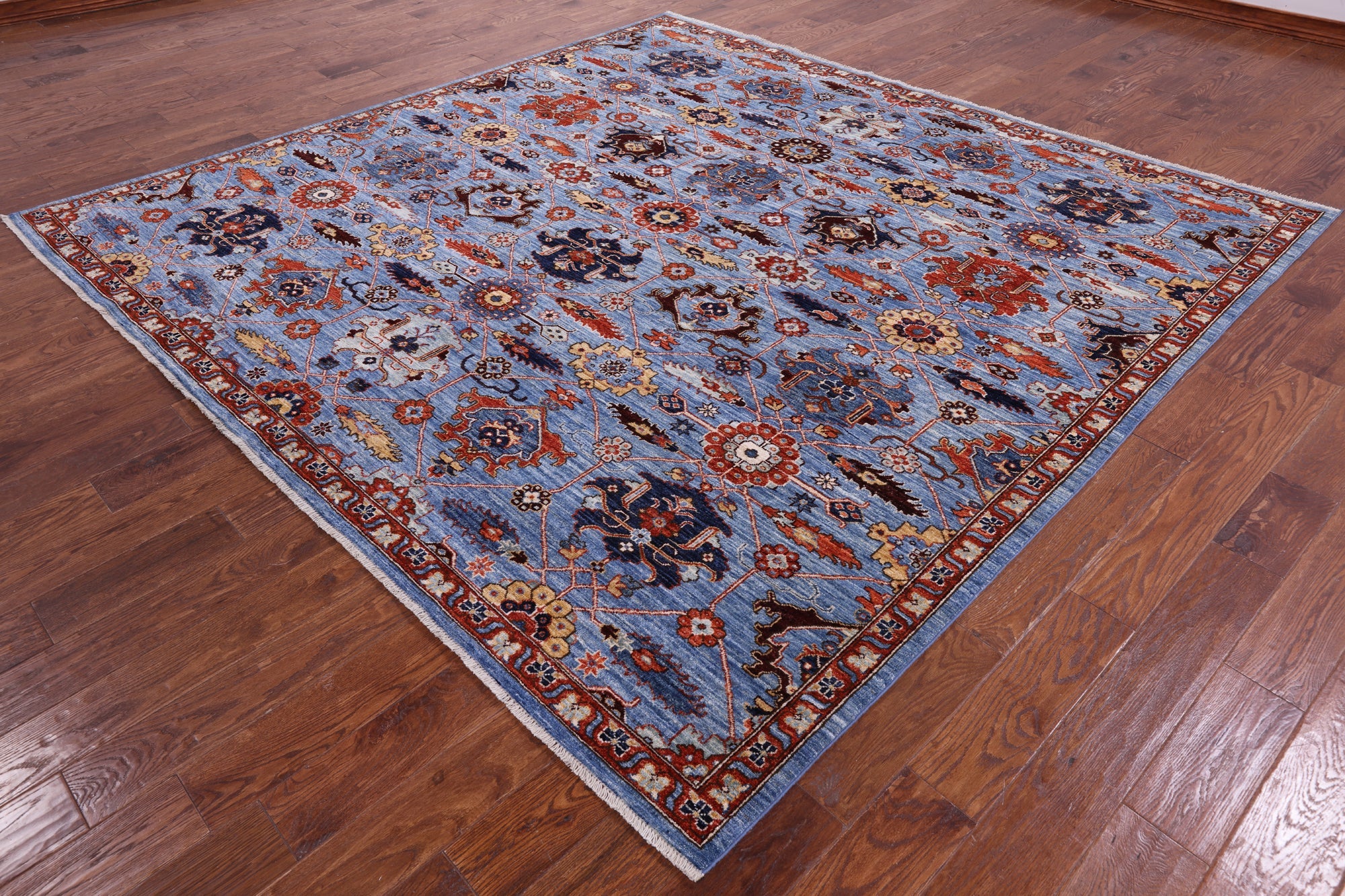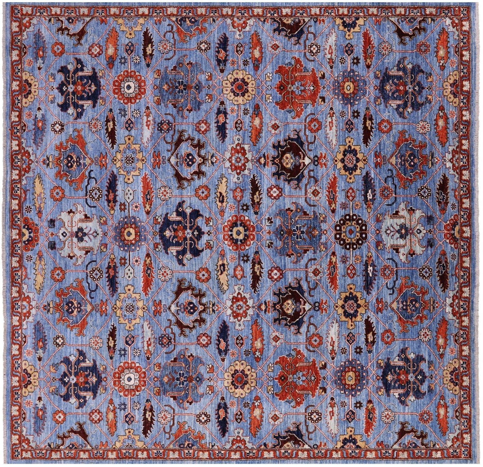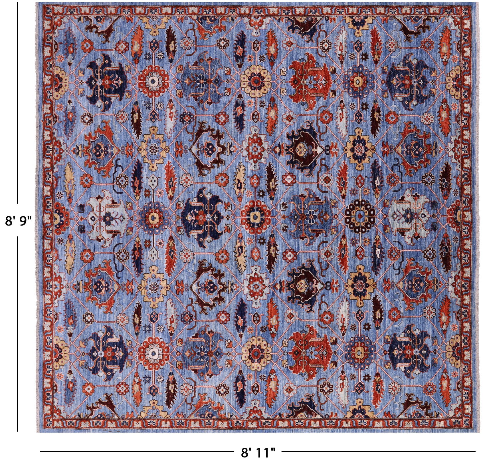 Blue 9' Square Hand Knotted Persian Fine Serapi Wool Rug - Q10391