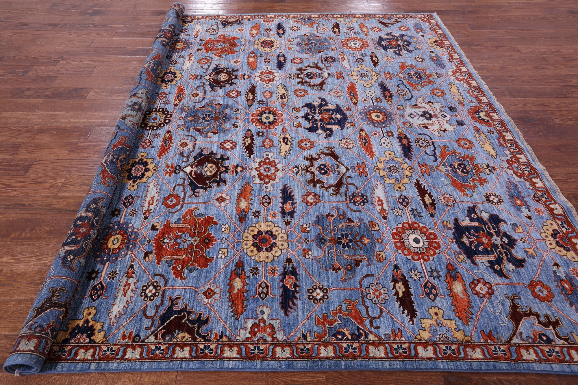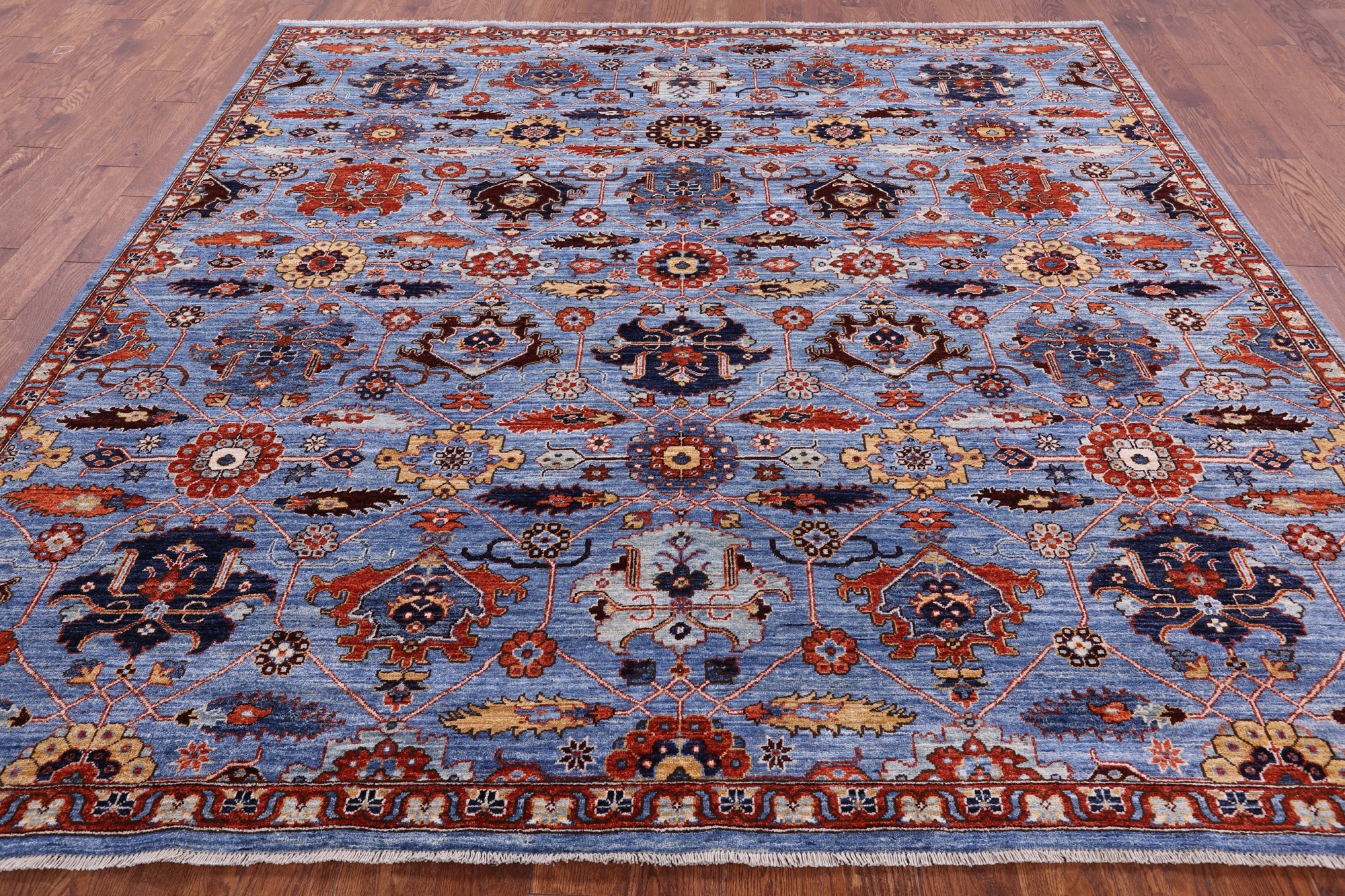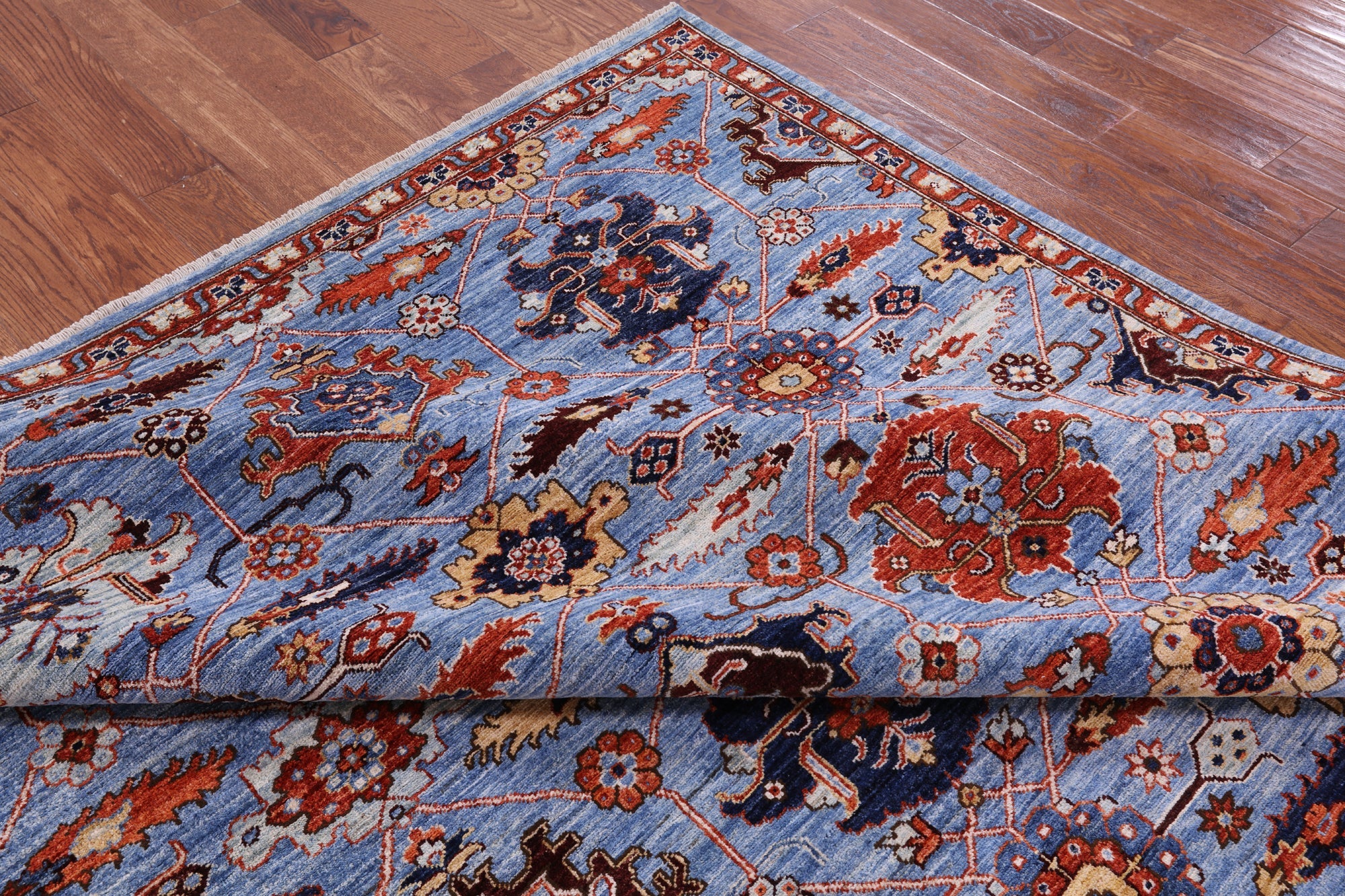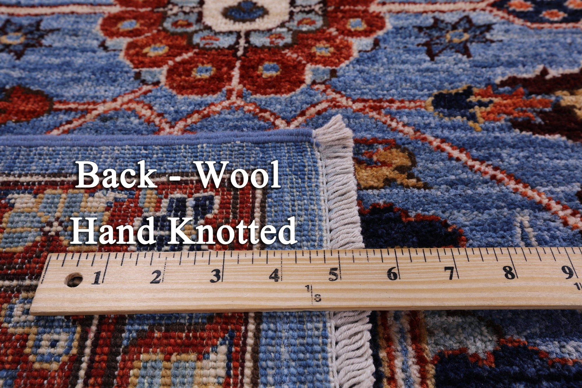 Blue 9' Square Hand Knotted Persian Fine Serapi Wool Rug - Q10391
