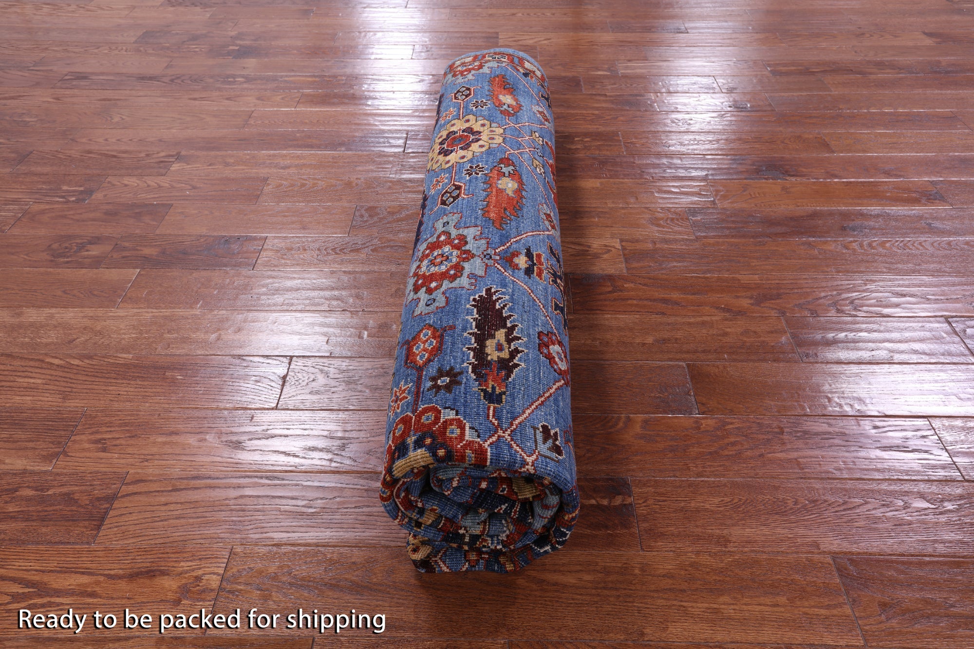 Blue 9' Square Hand Knotted Persian Fine Serapi Wool Rug - Q10391 is backordered and will ship as soon as it is back in stock.