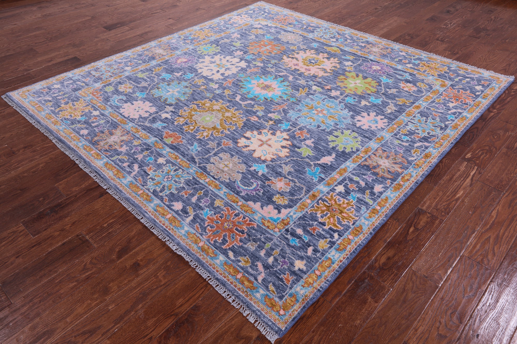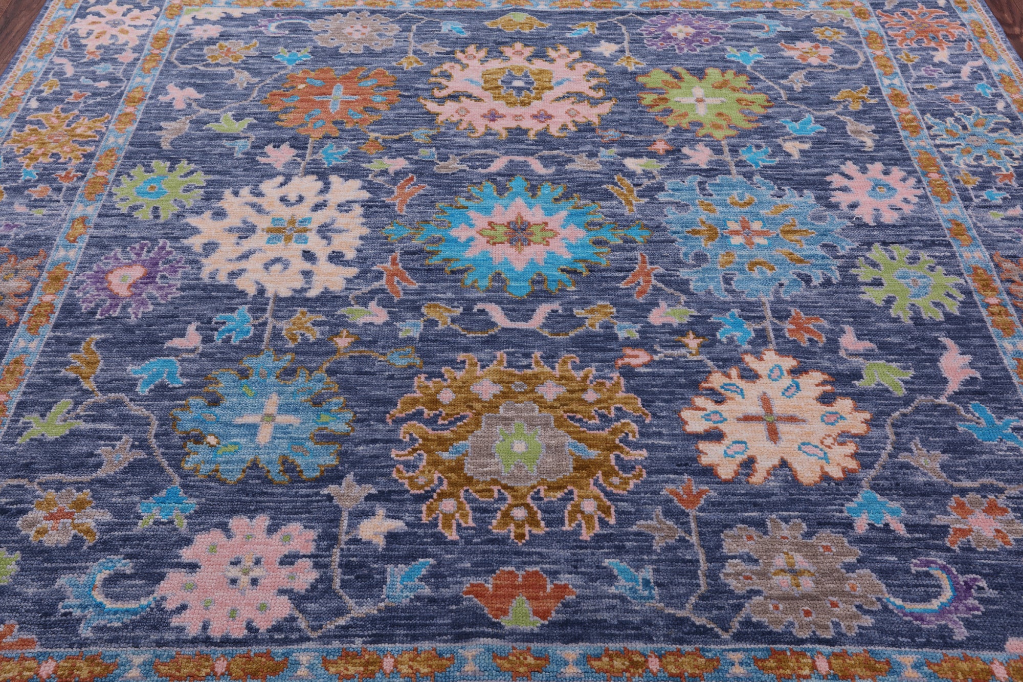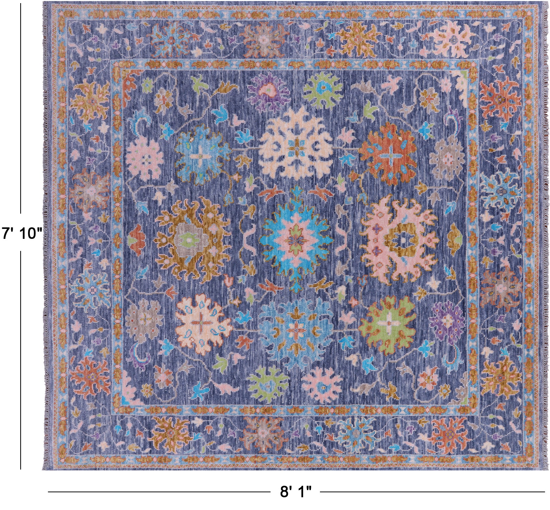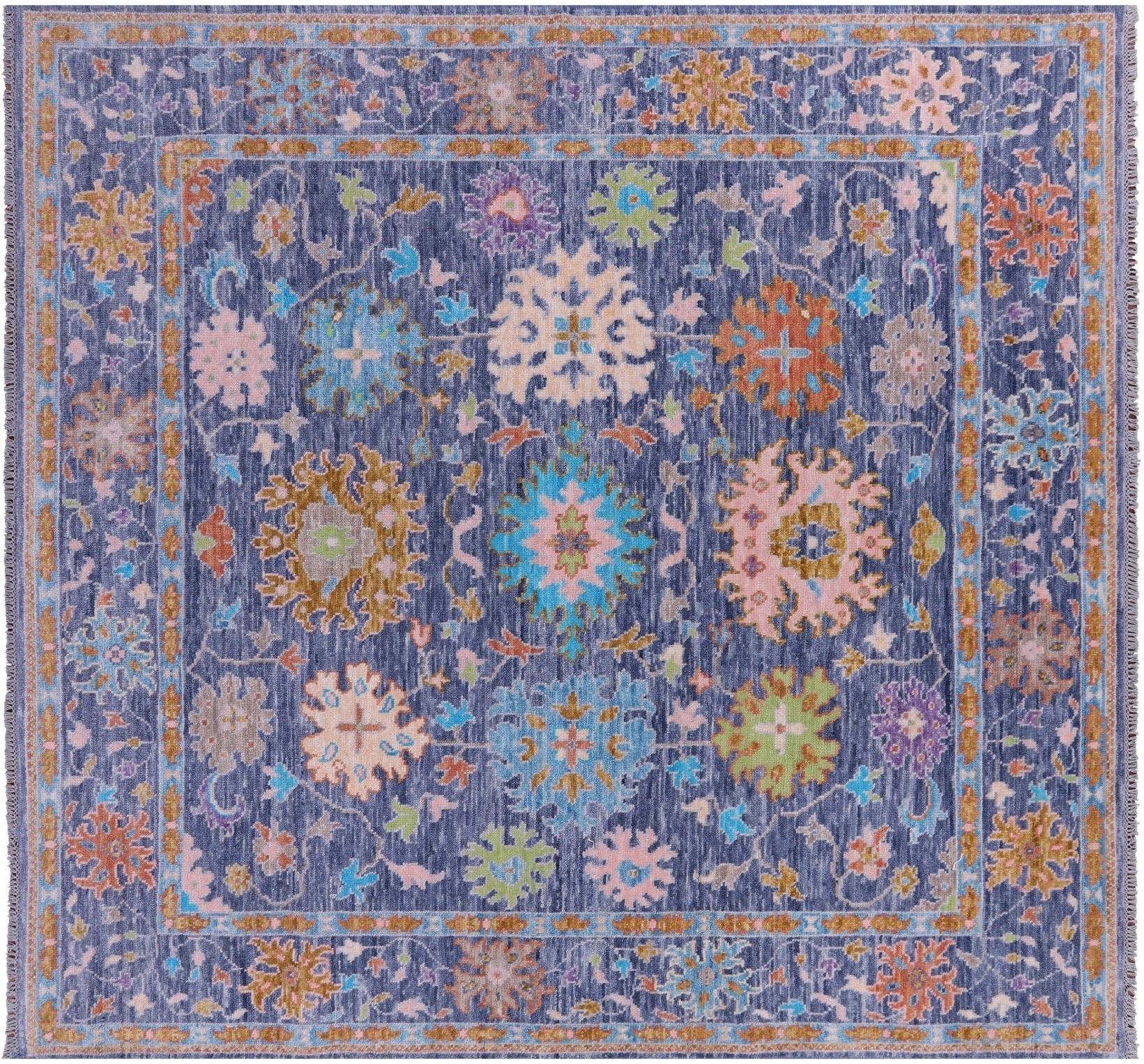 Blue 8' Square Hand-Knotted Turkish Angora Oushak Wool Rug - Q15668