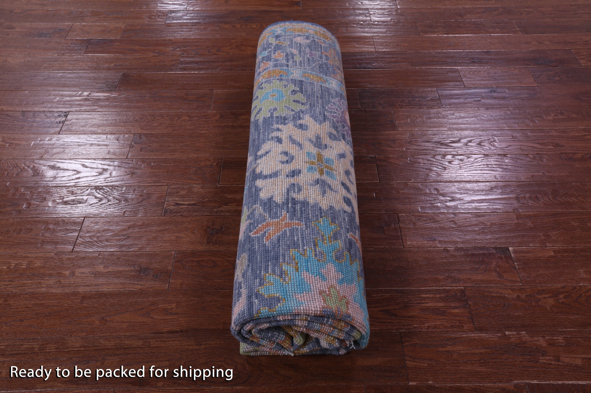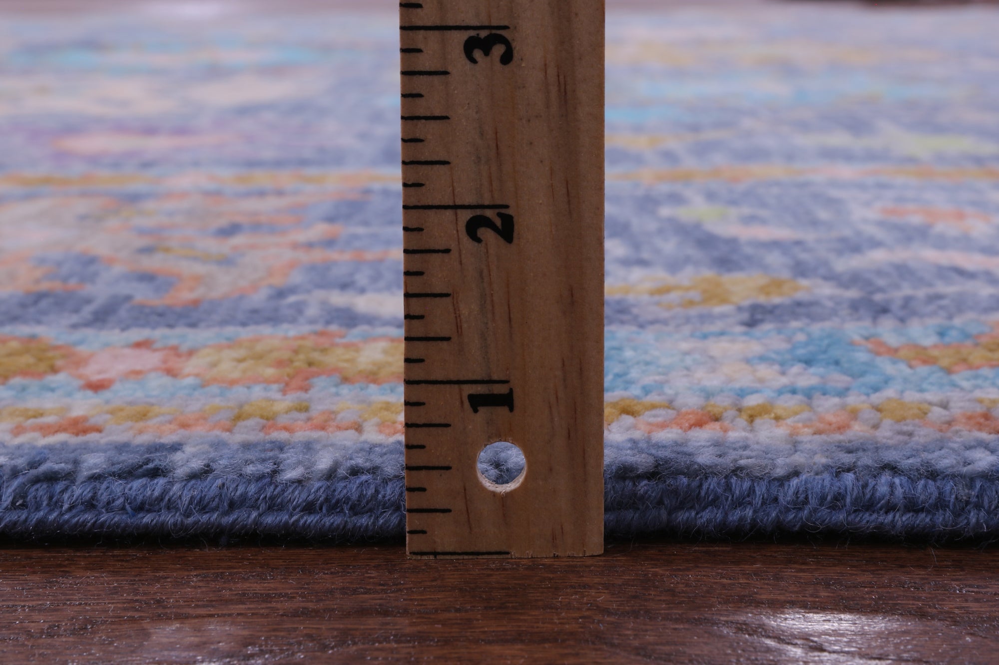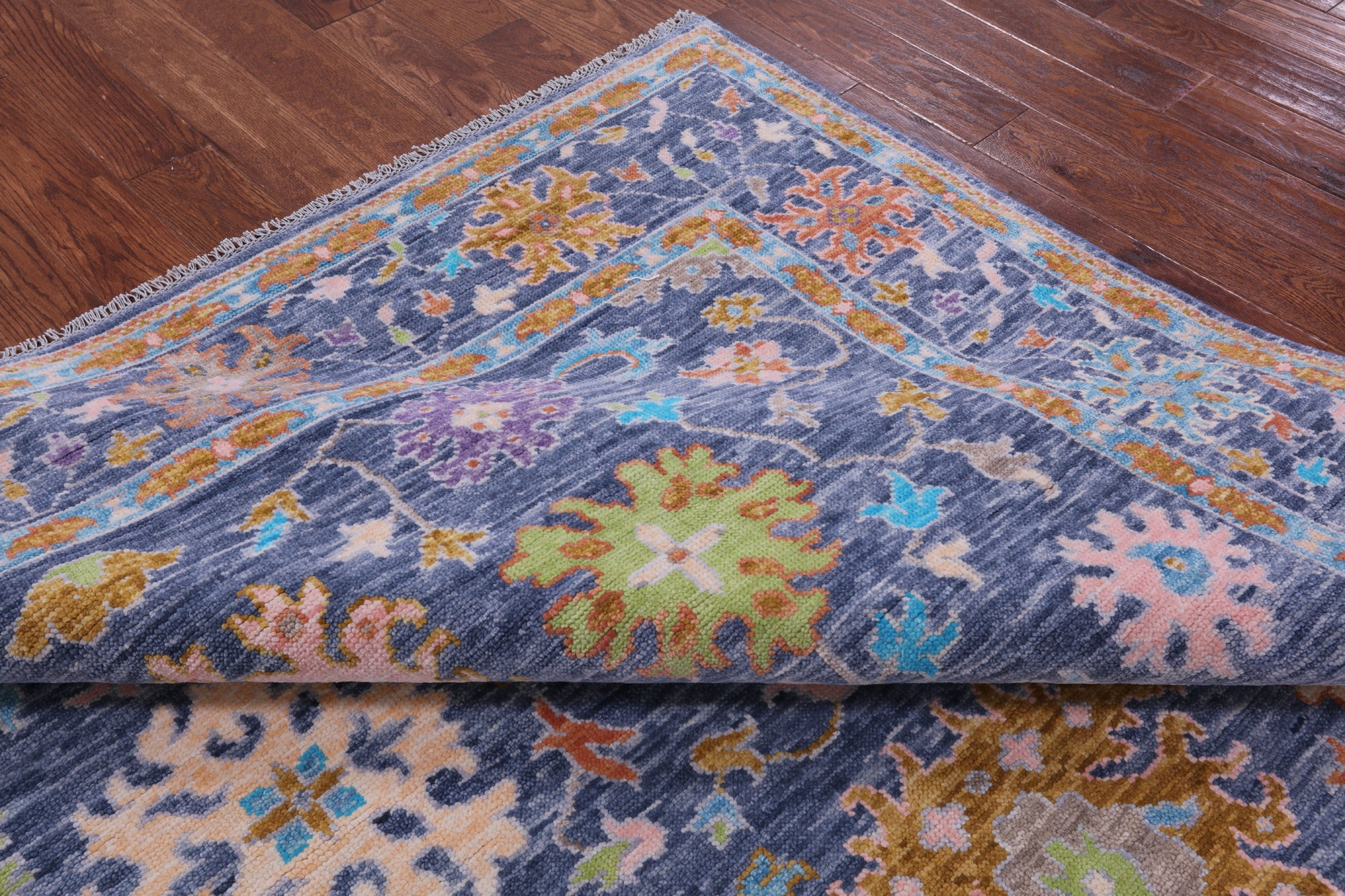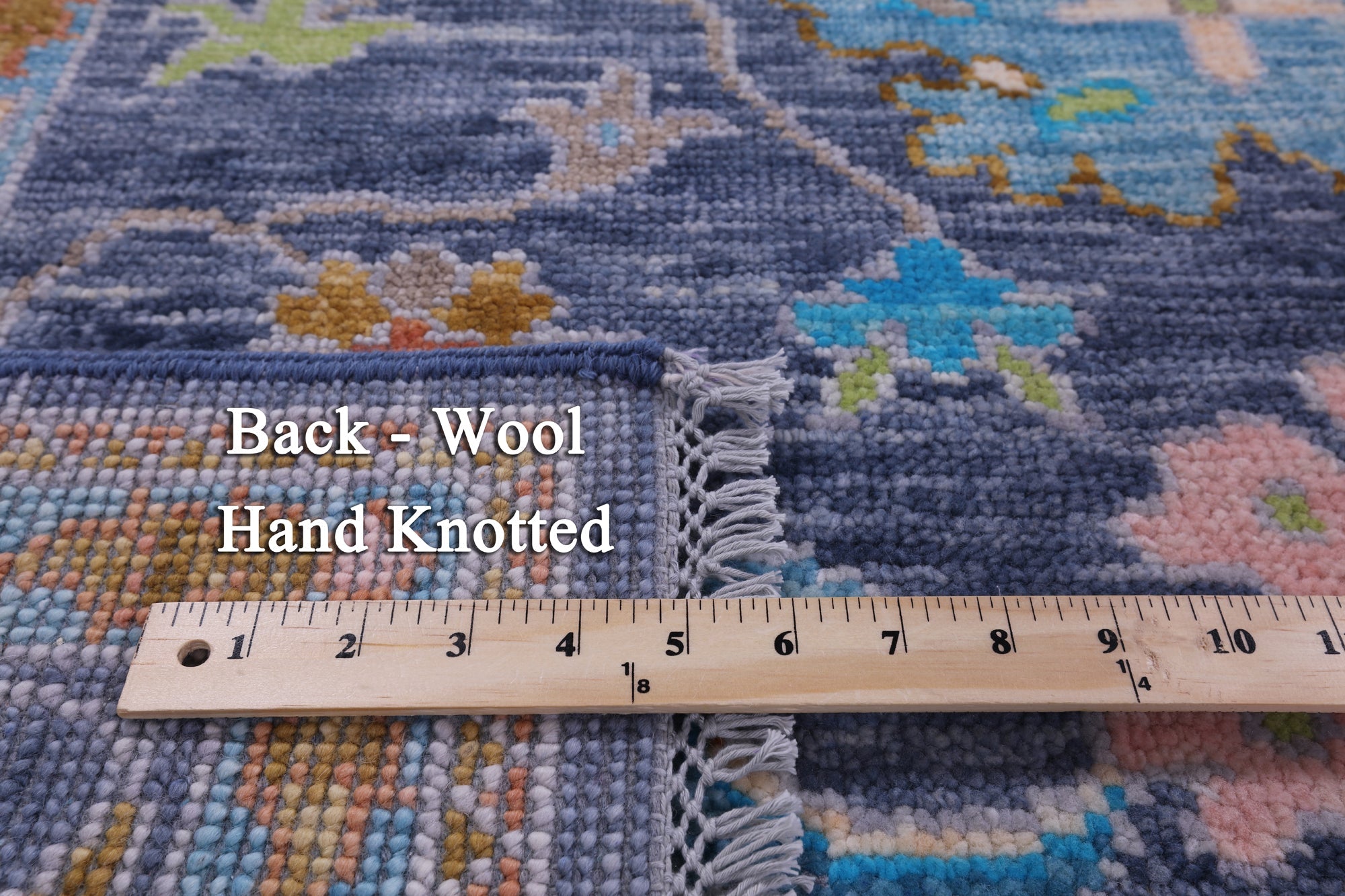 Blue 8' Square Hand-Knotted Turkish Angora Oushak Wool Rug - Q15668