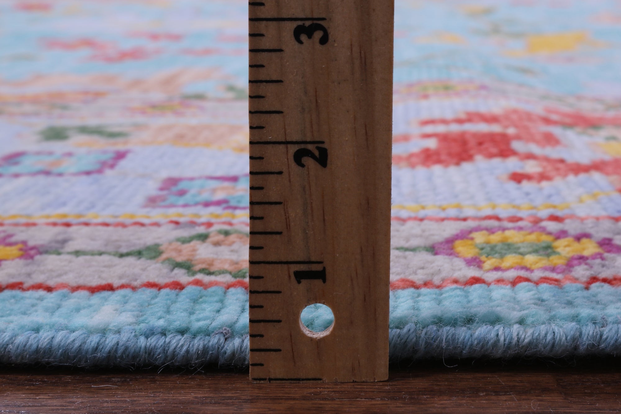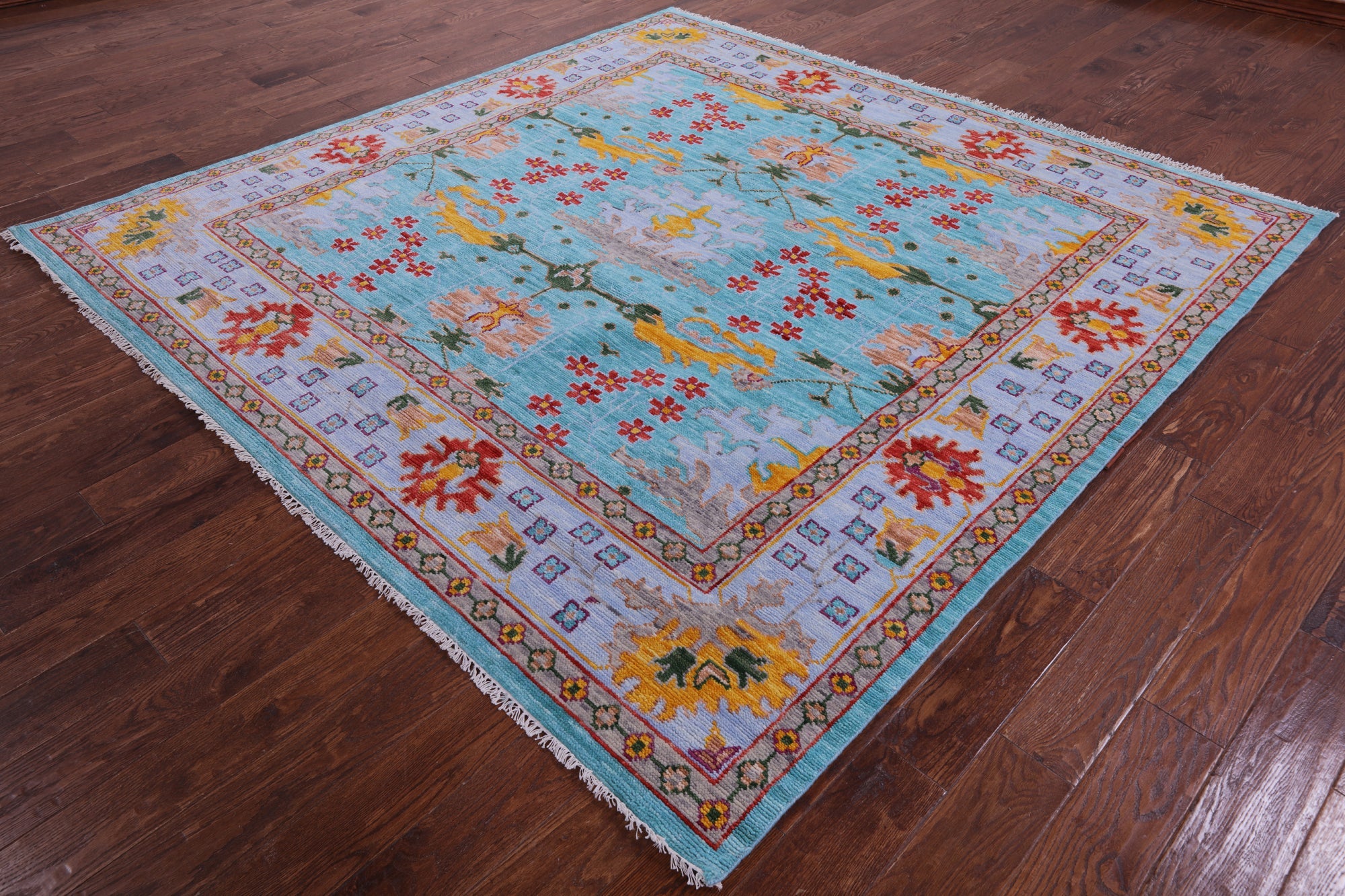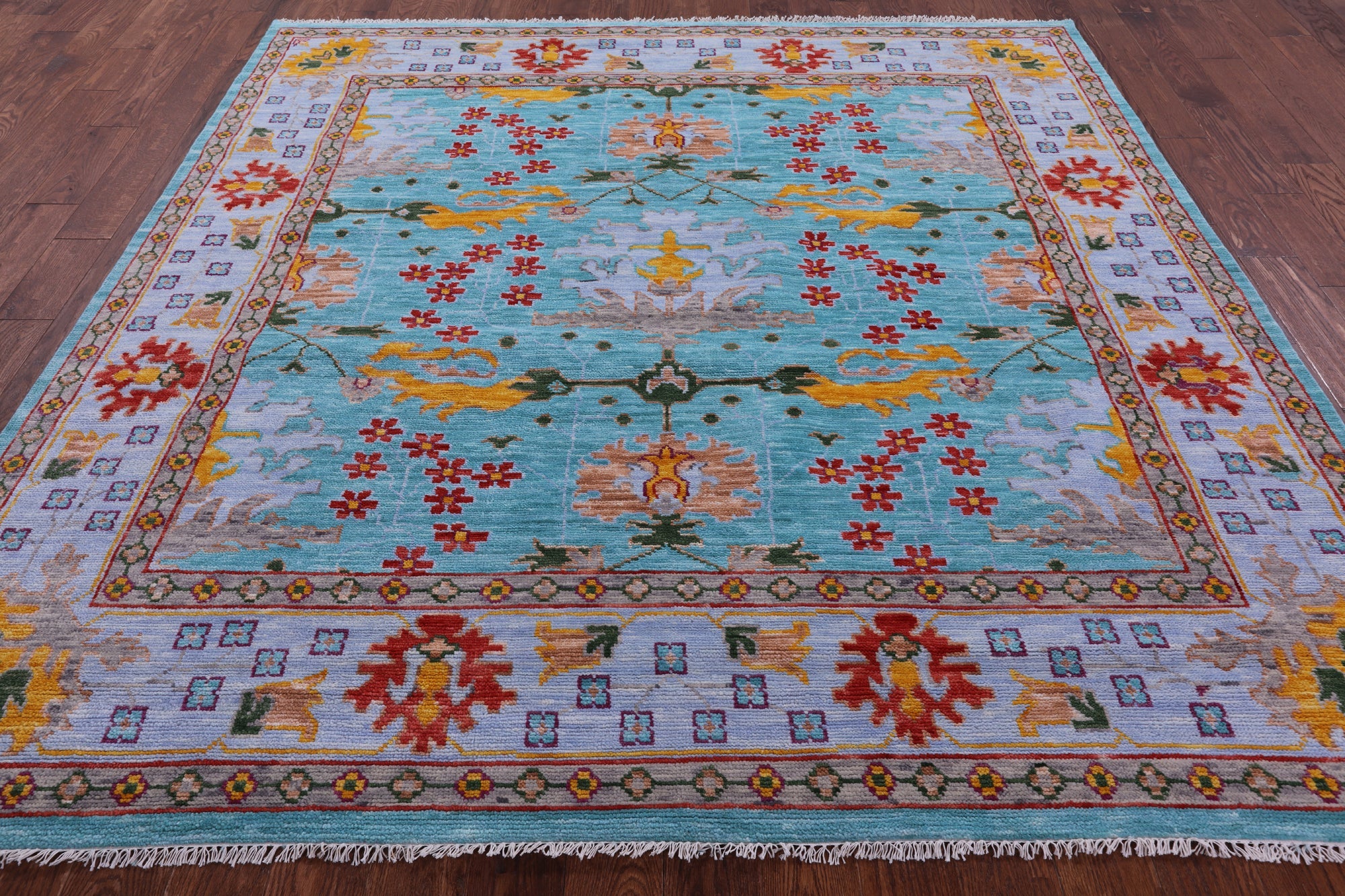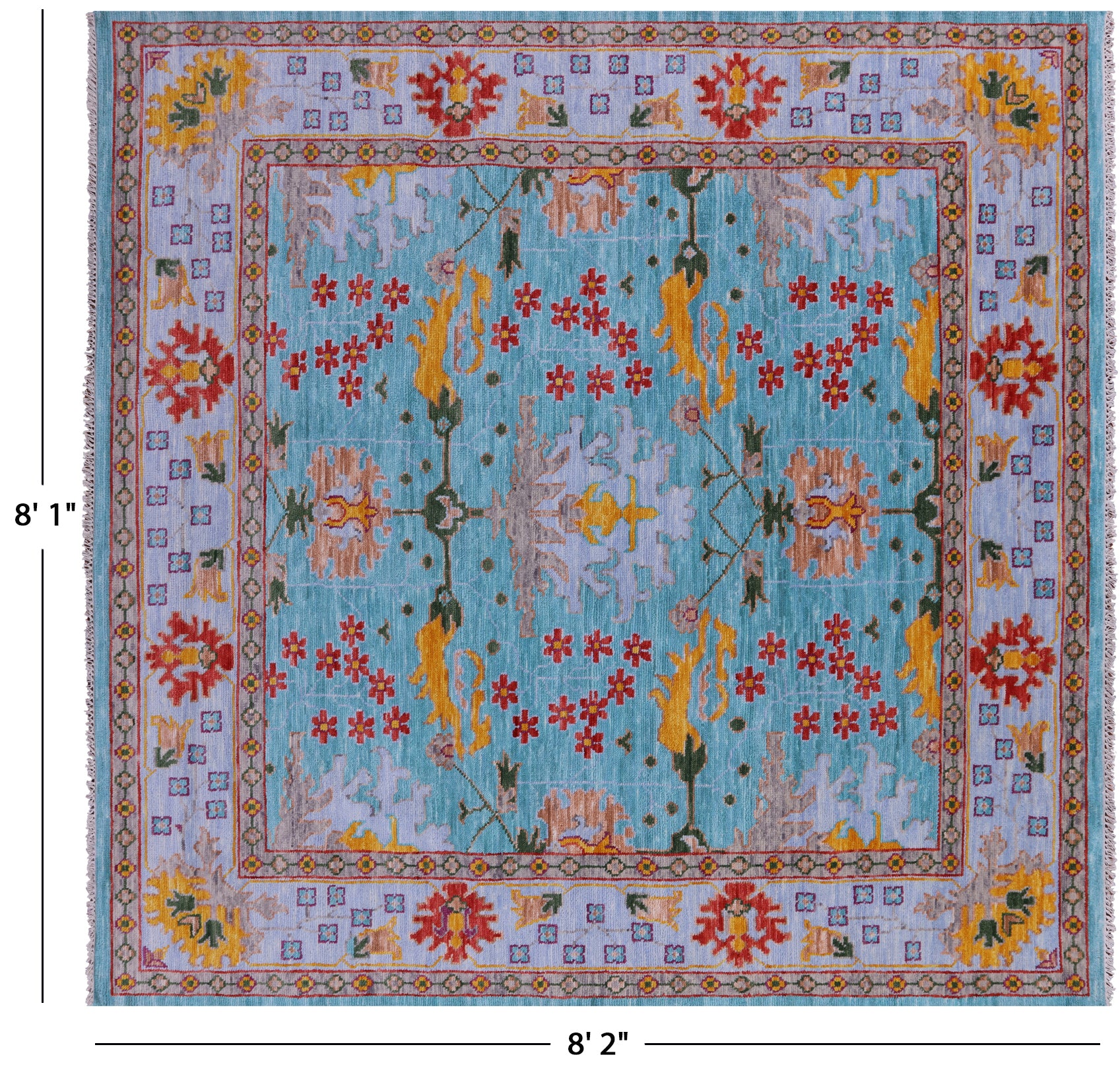 Blue 8' Square Hand Knotted William Morris Wool Rug - Q19241