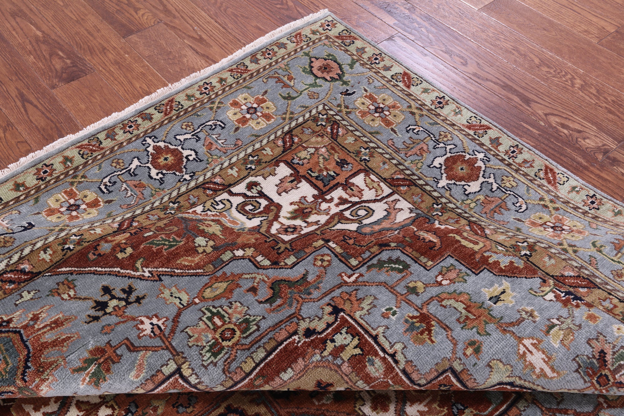 Blue 8' Square Handmade Heriz Serapi Wool Rug - Q19682 is backordered and will ship as soon as it is back in stock.