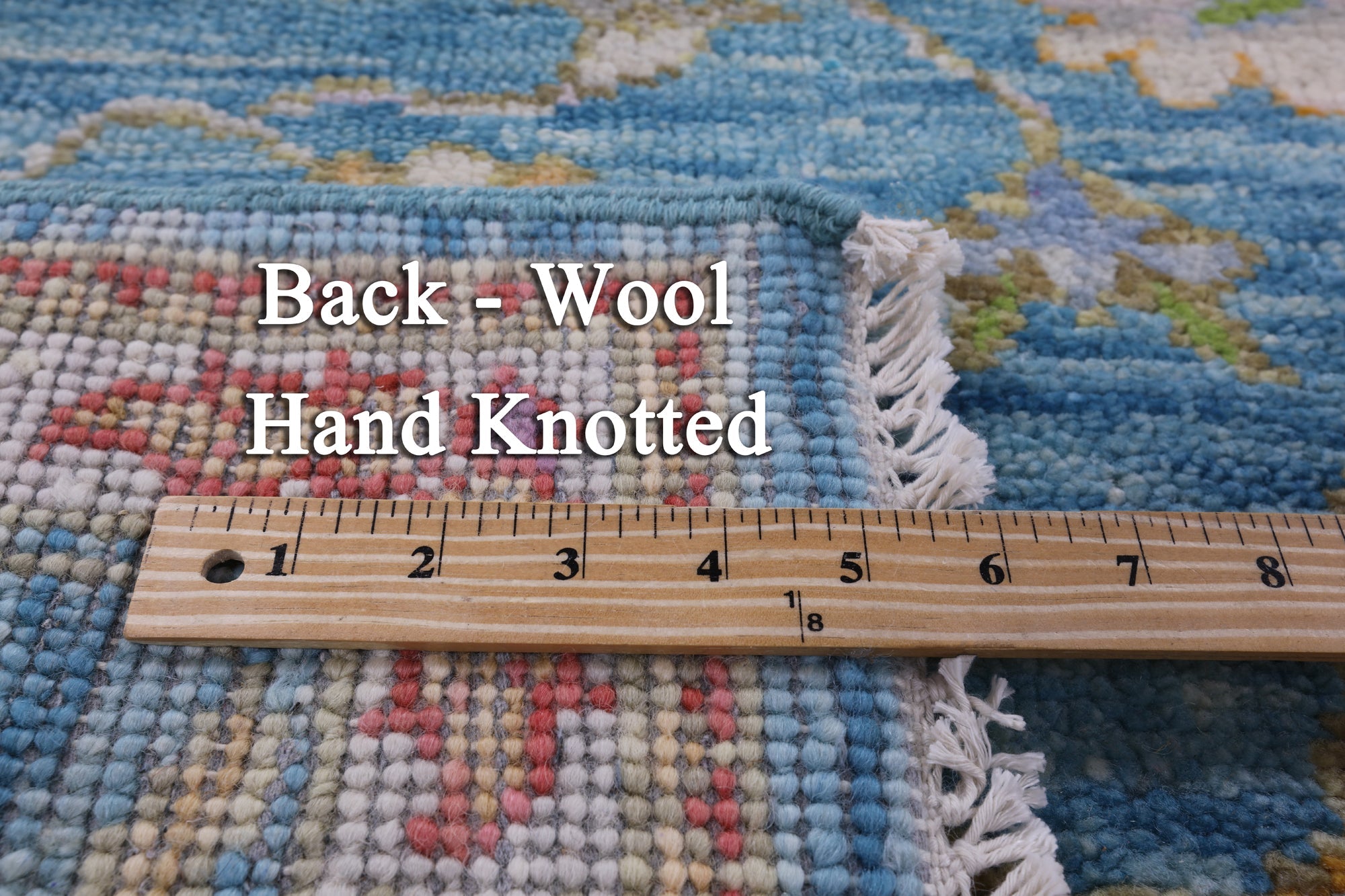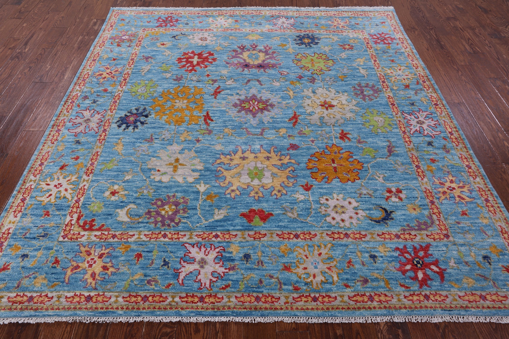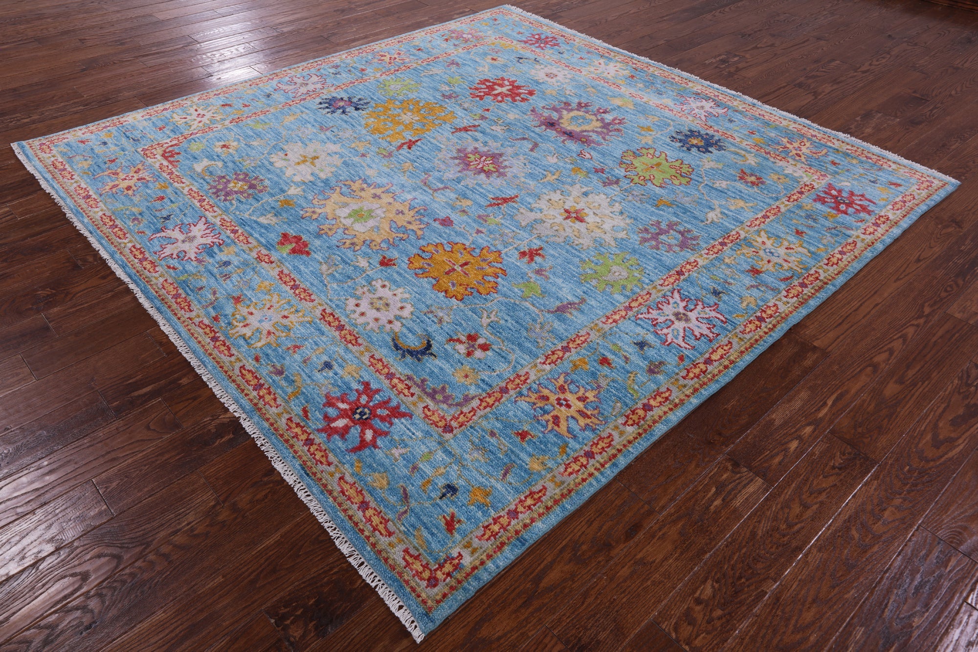 Blue 8' Square Handmade Turkish Angora Oushak Wool Rug - Q13392 is backordered and will ship as soon as it is back in stock.