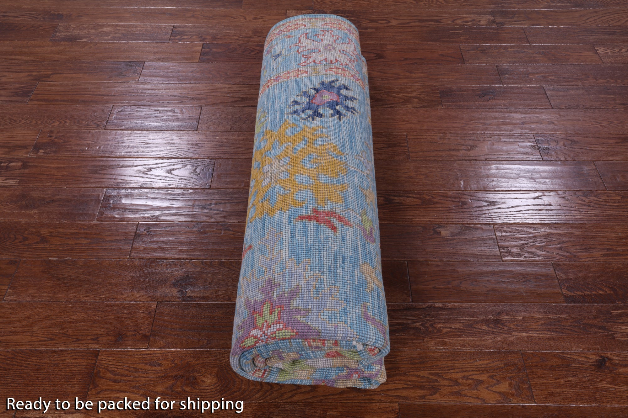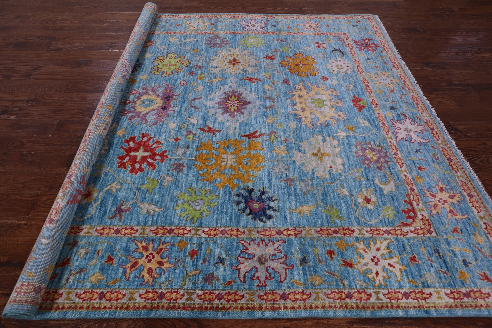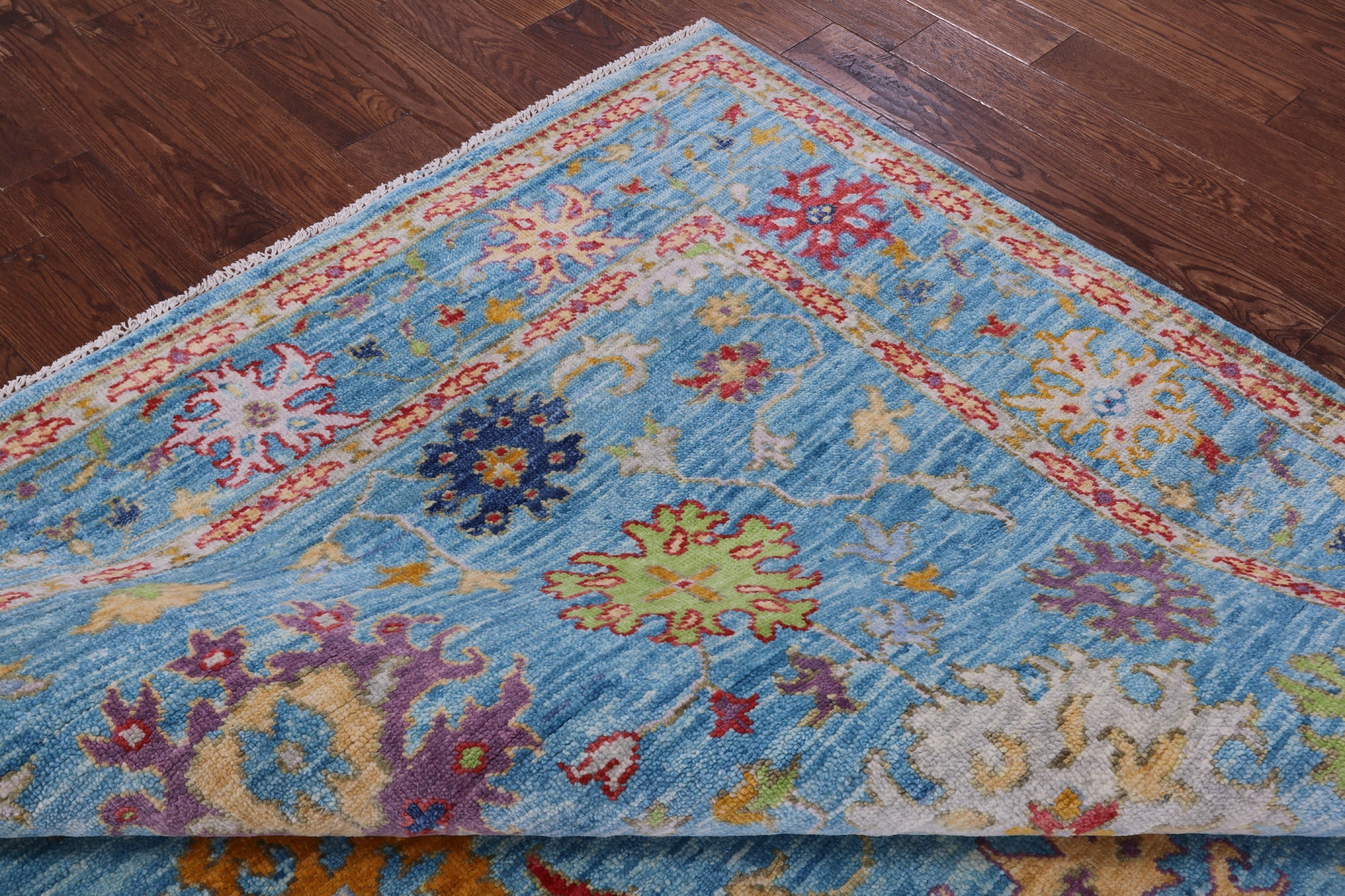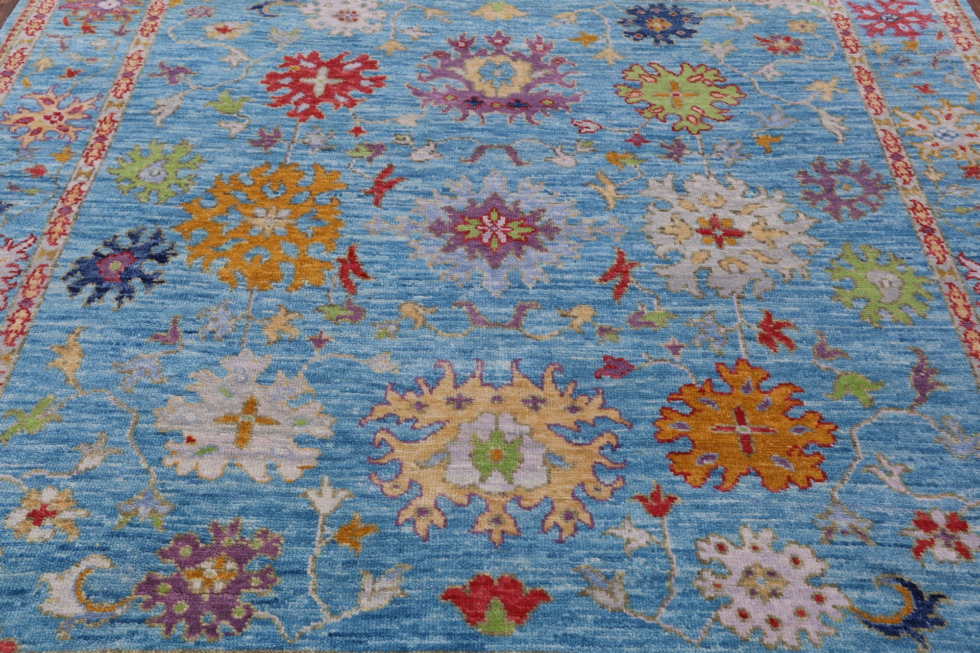 Blue 8' Square Handmade Turkish Angora Oushak Wool Rug - Q13392 is backordered and will ship as soon as it is back in stock.