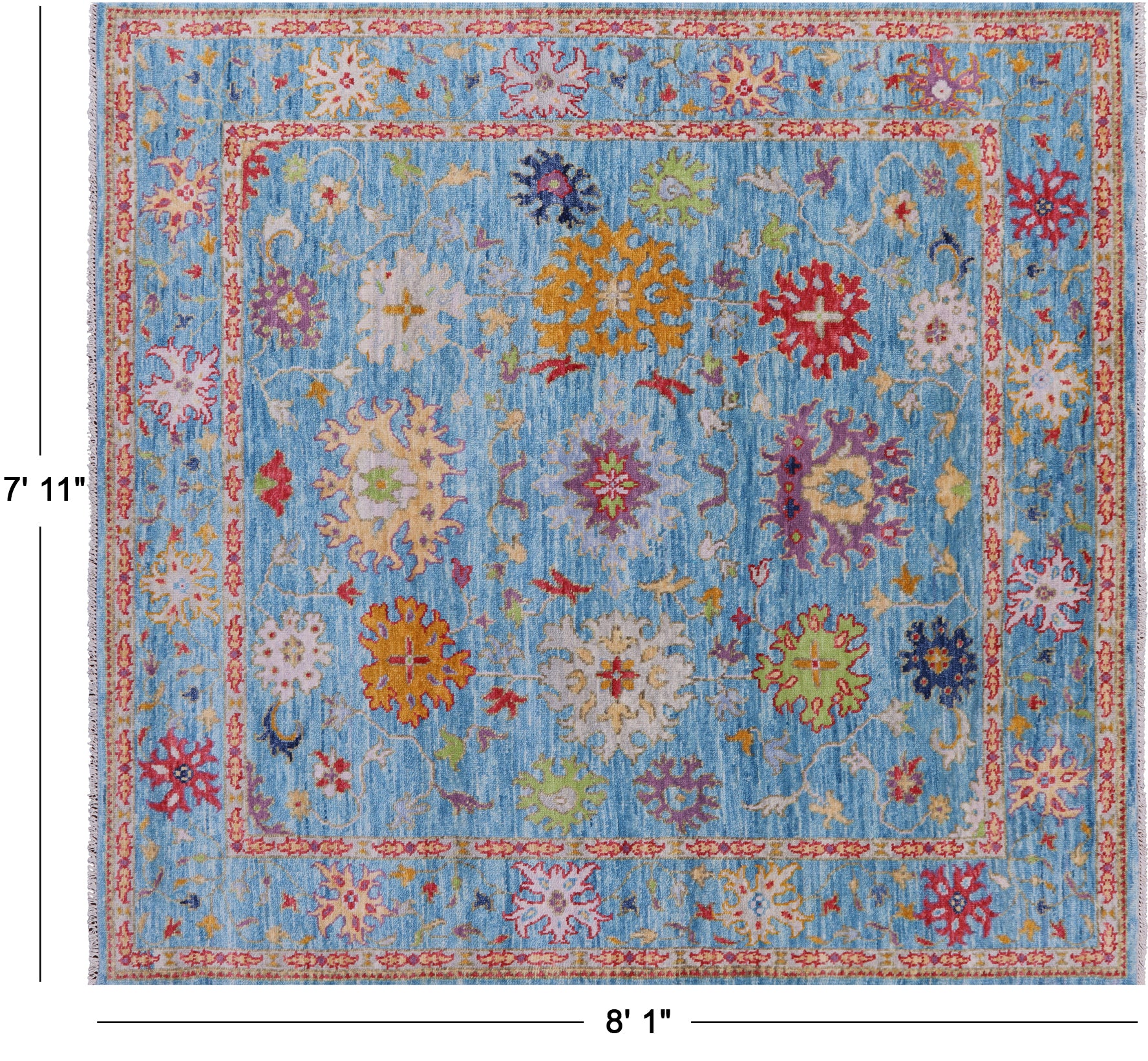 Blue 8' Square Handmade Turkish Angora Oushak Wool Rug - Q13392