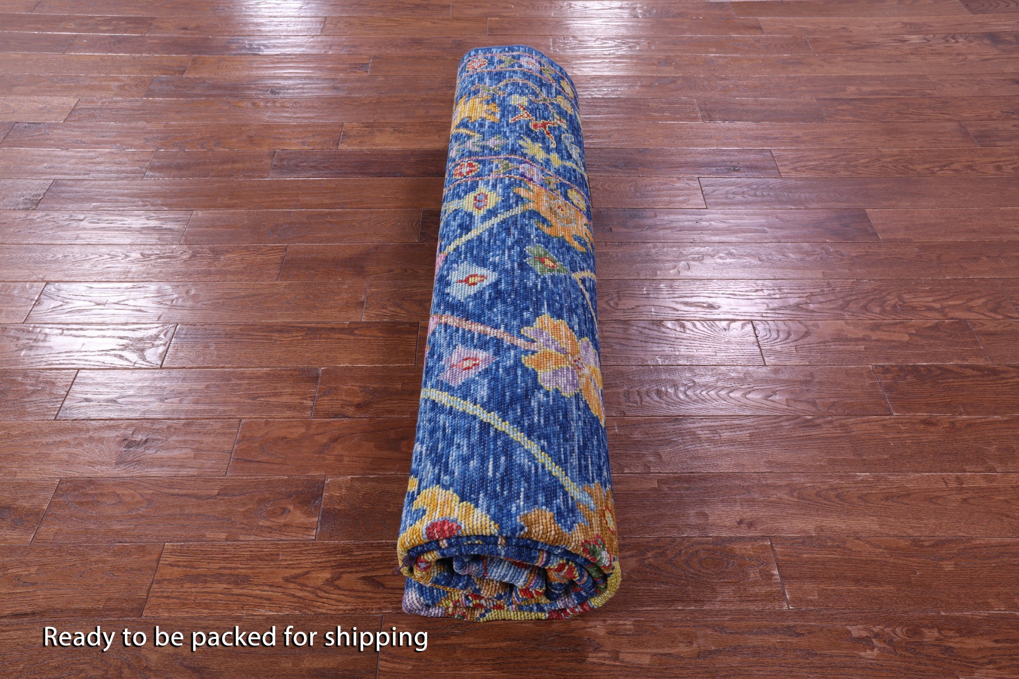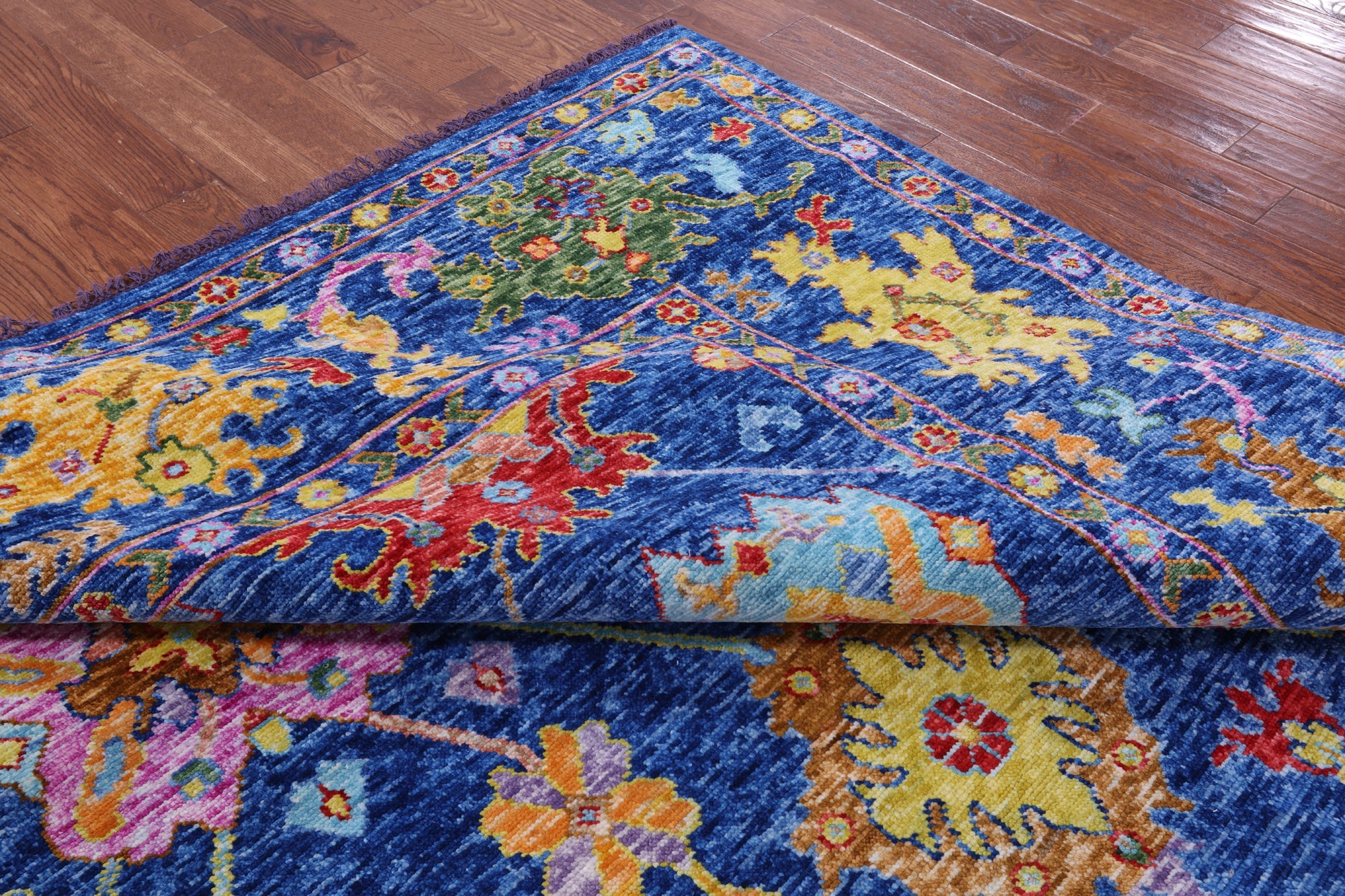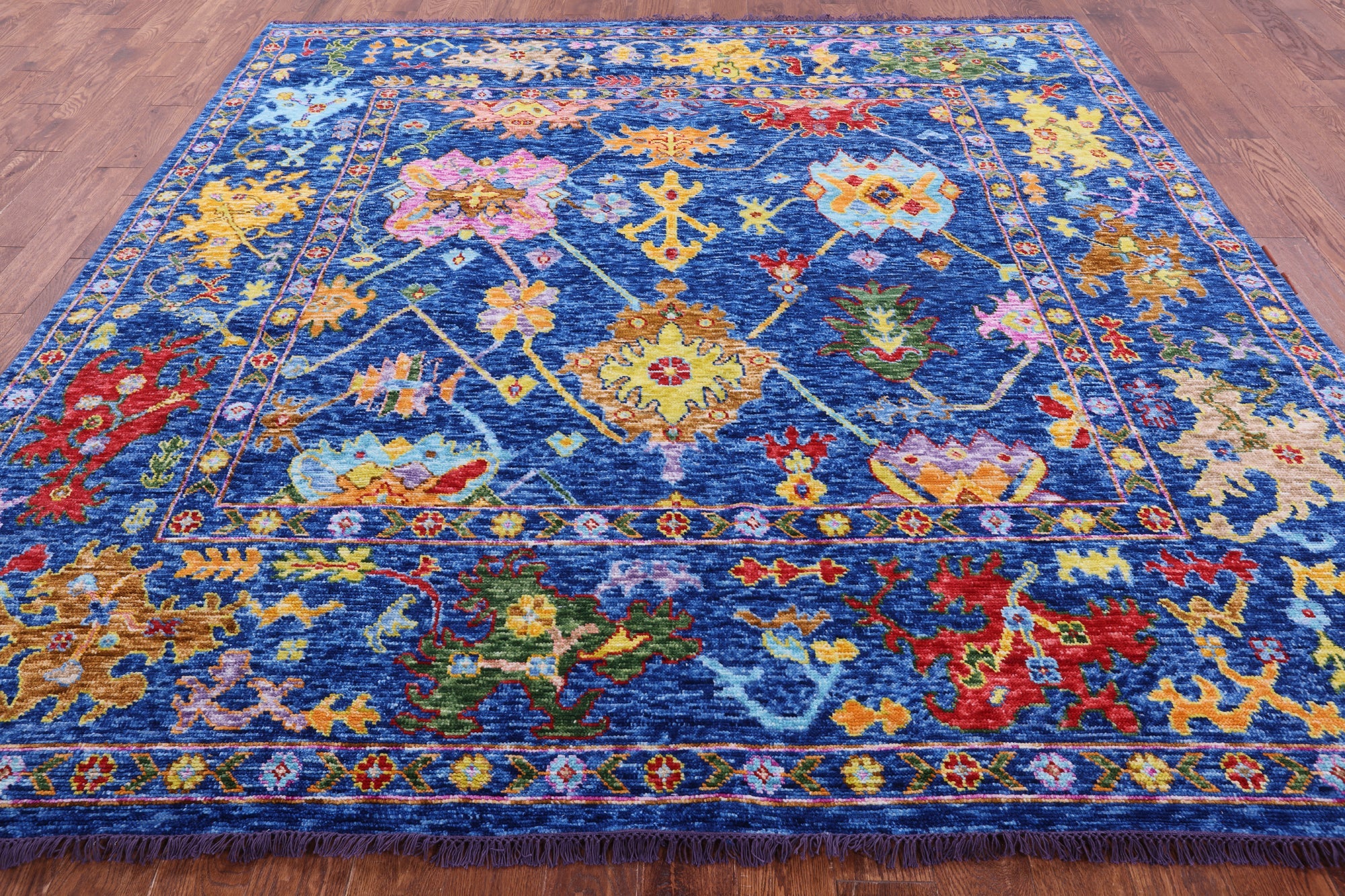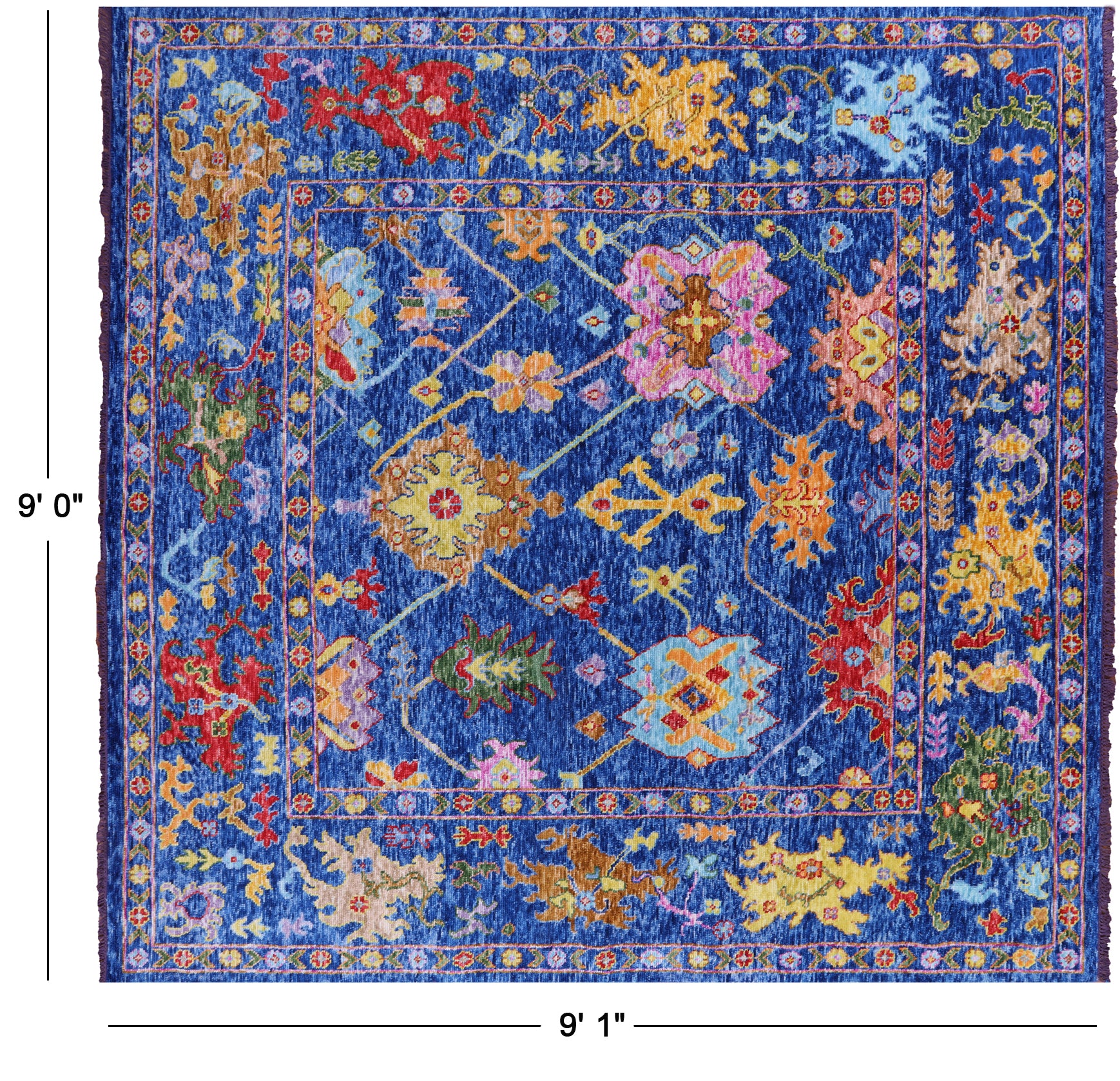 Blue 9' Square Handmade Turkish Angora Oushak Wool Rug - Q16071 is backordered and will ship as soon as it is back in stock.