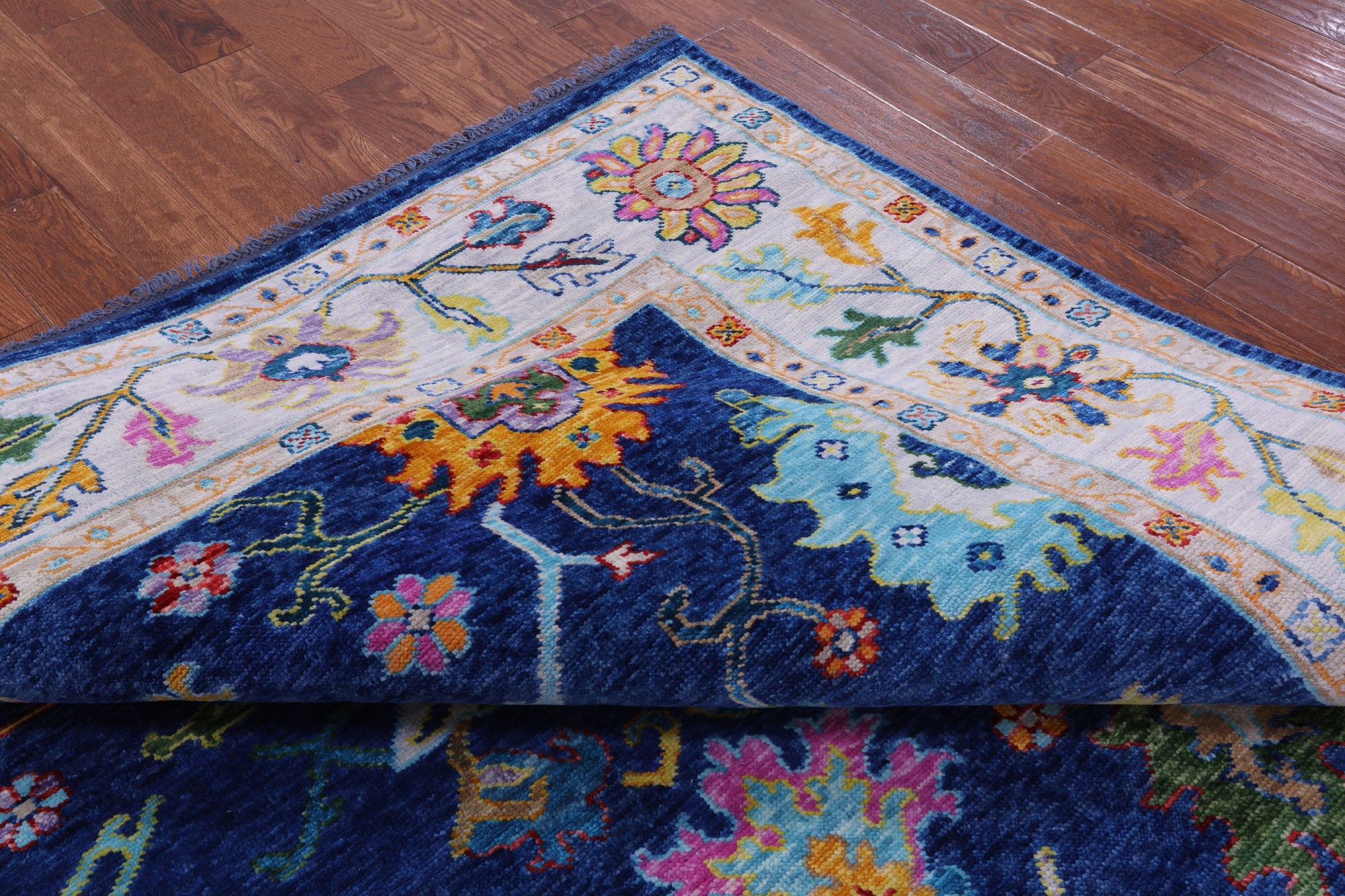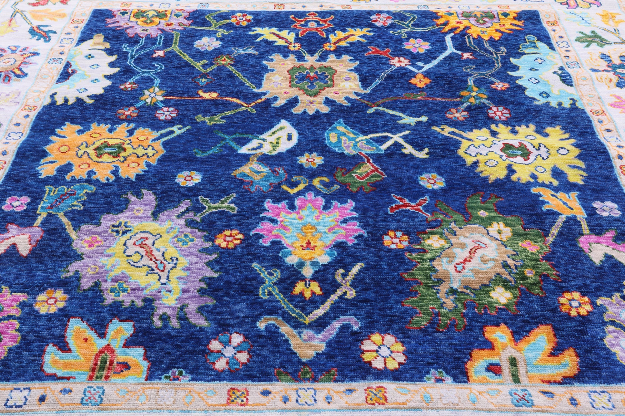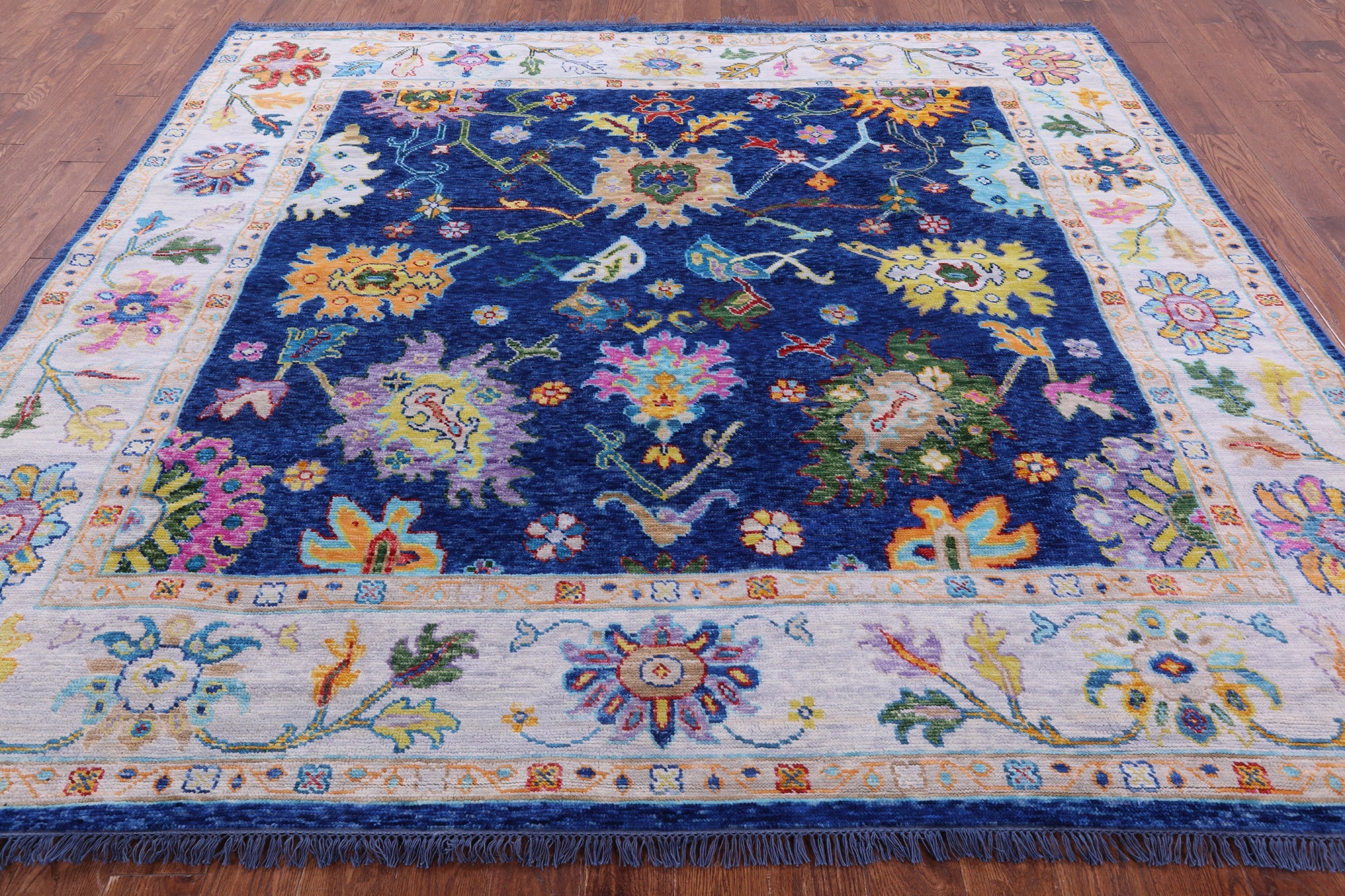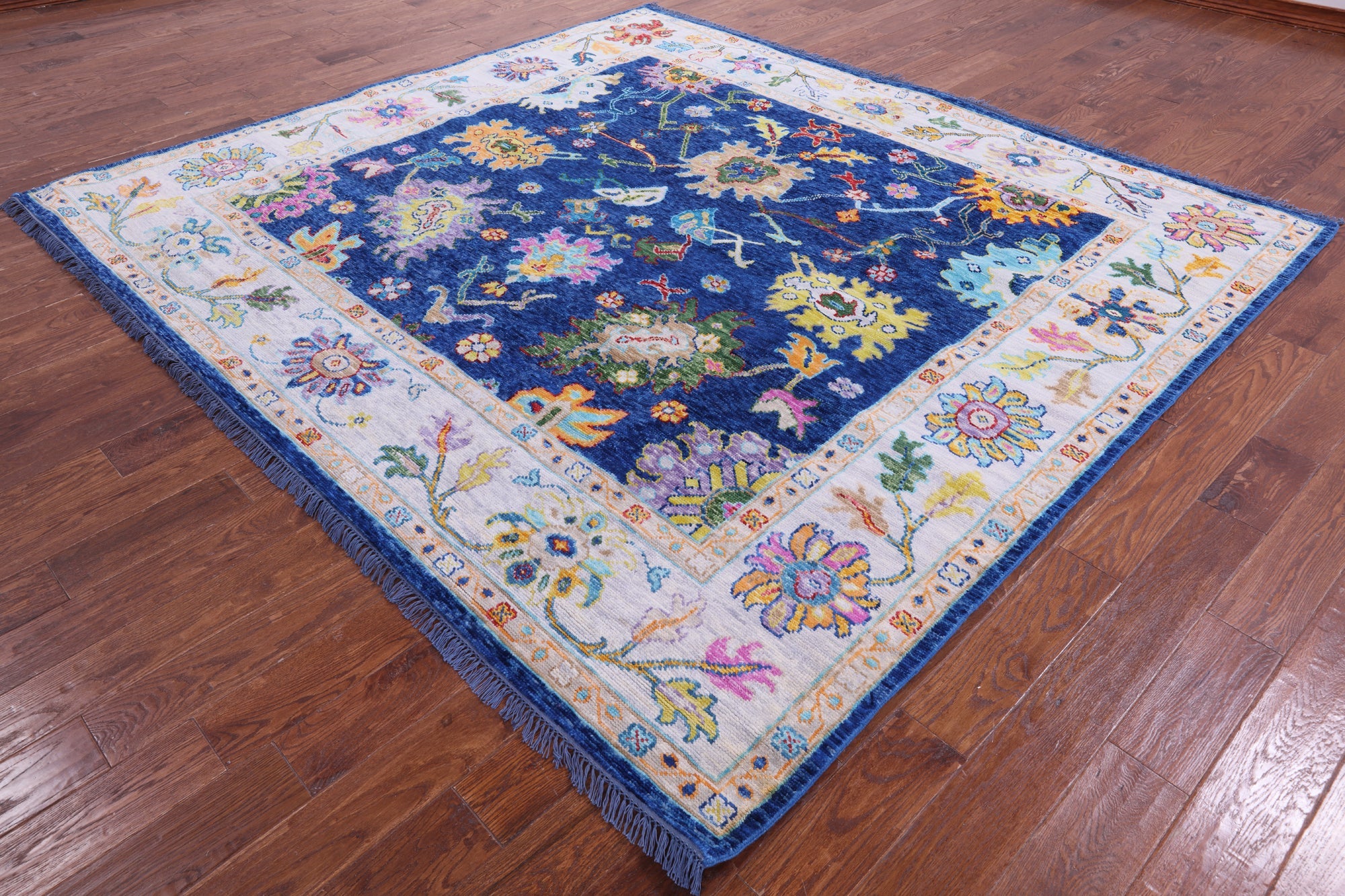 Blue 8' 5" X 9' 3" Square Handmade Turkish Angora Oushak Wool Rug - Q19874 is backordered and will ship as soon as it is back in stock.
