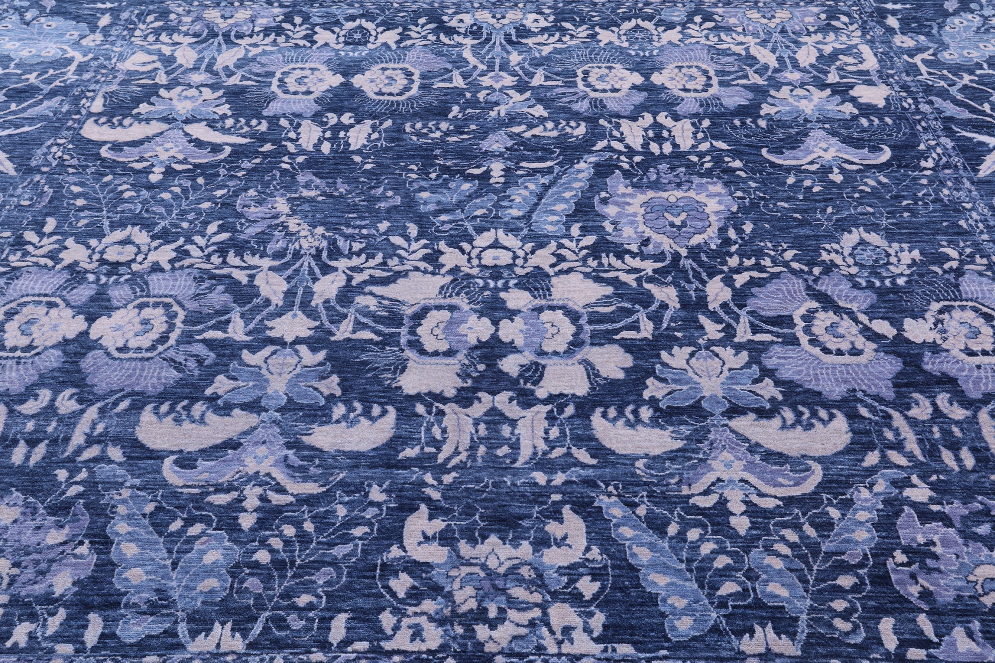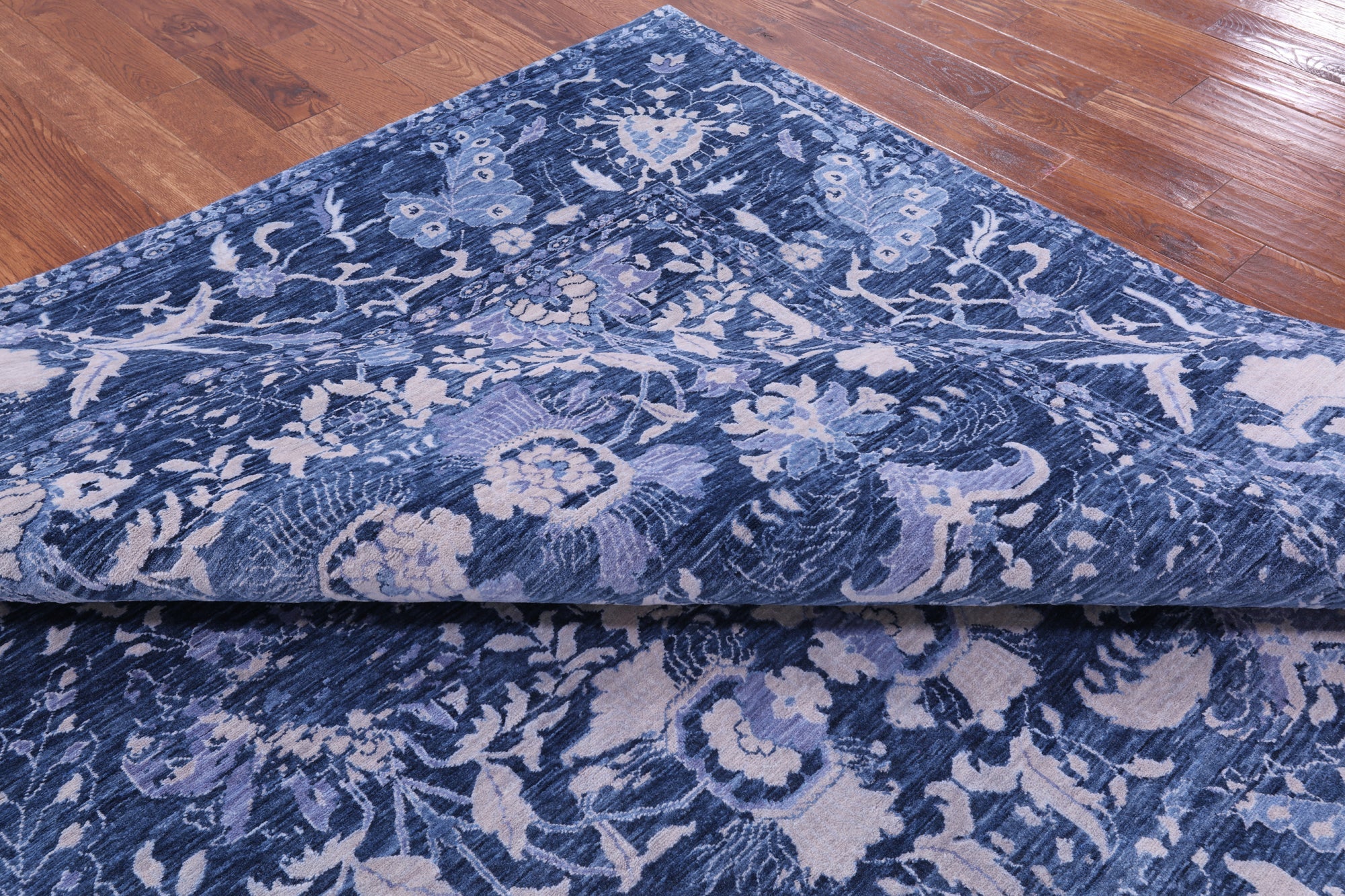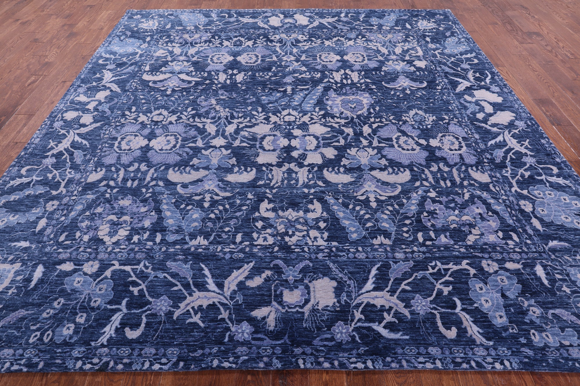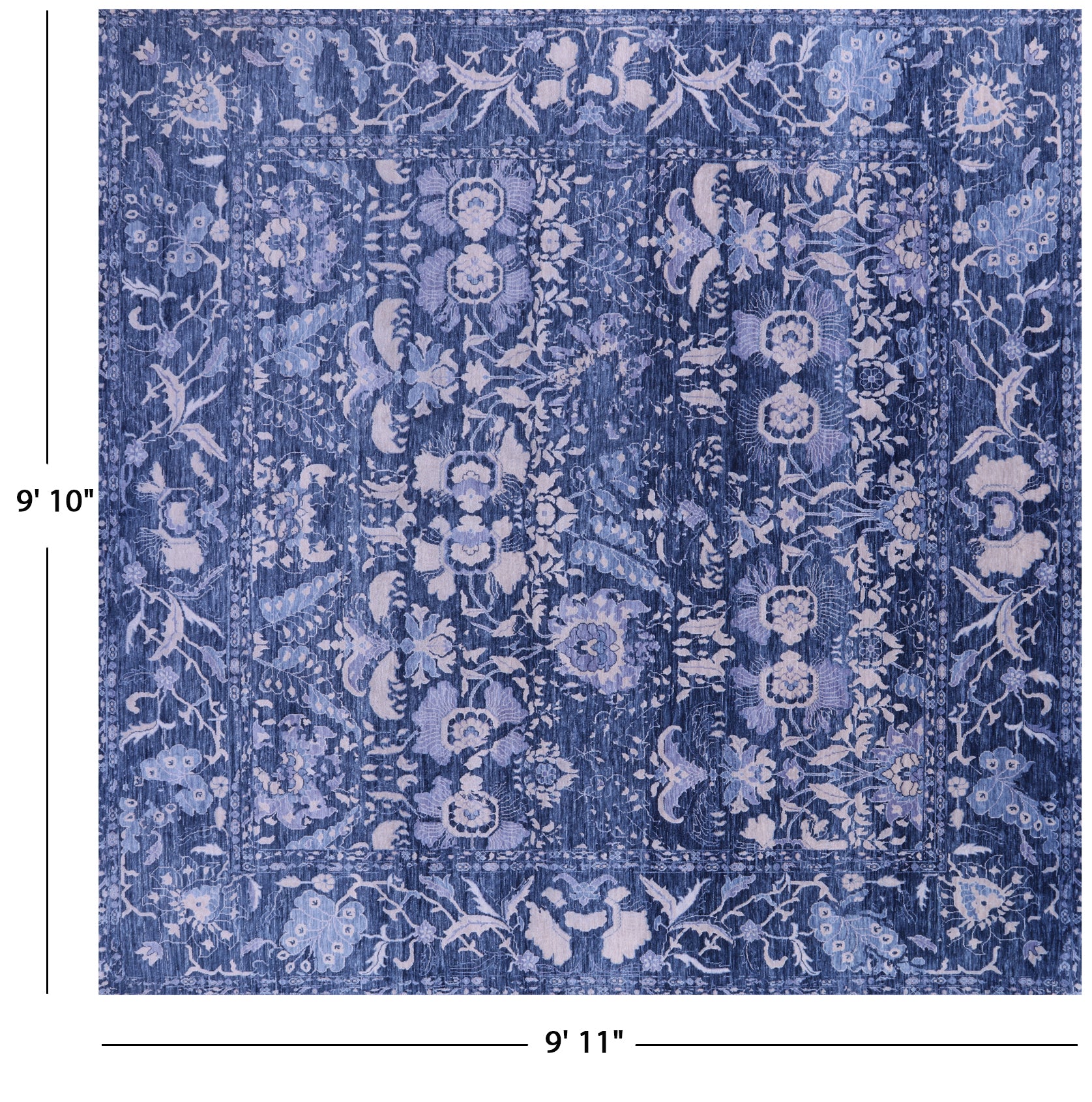 Blue 10' Square Modern Hand-Knotted Wool Rug - Q11897