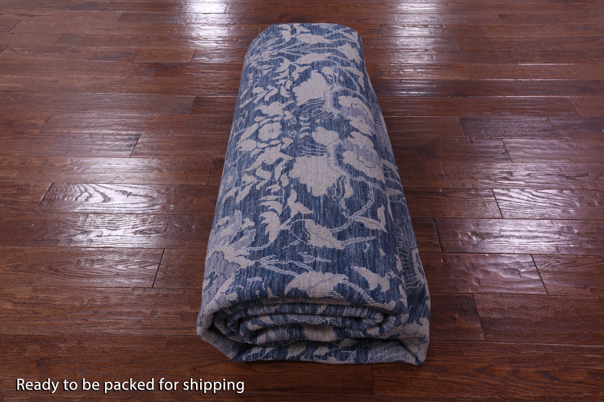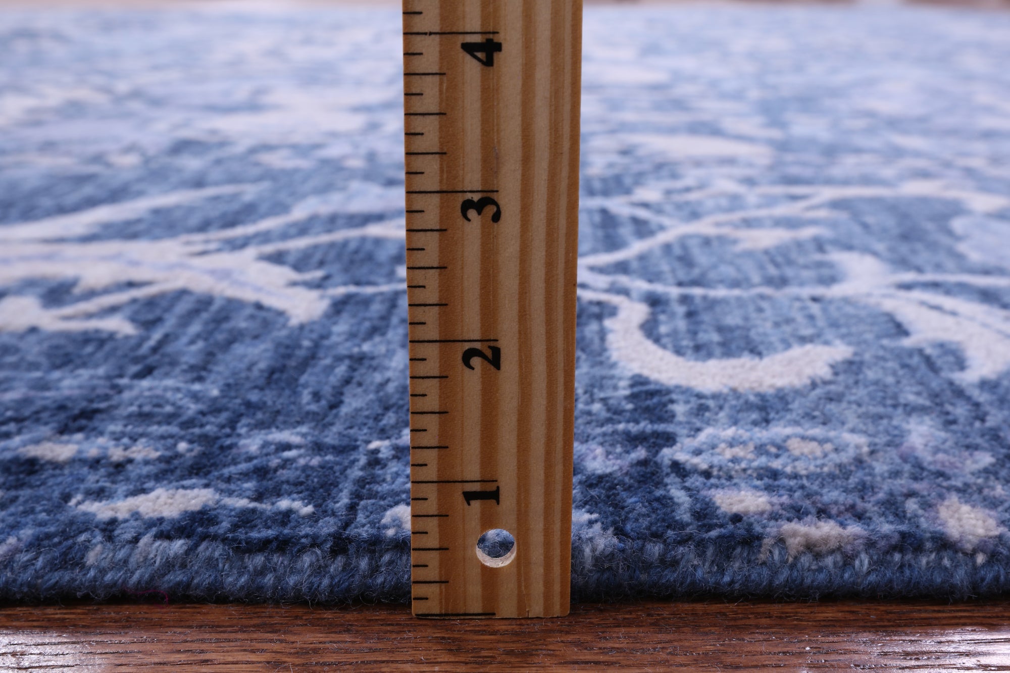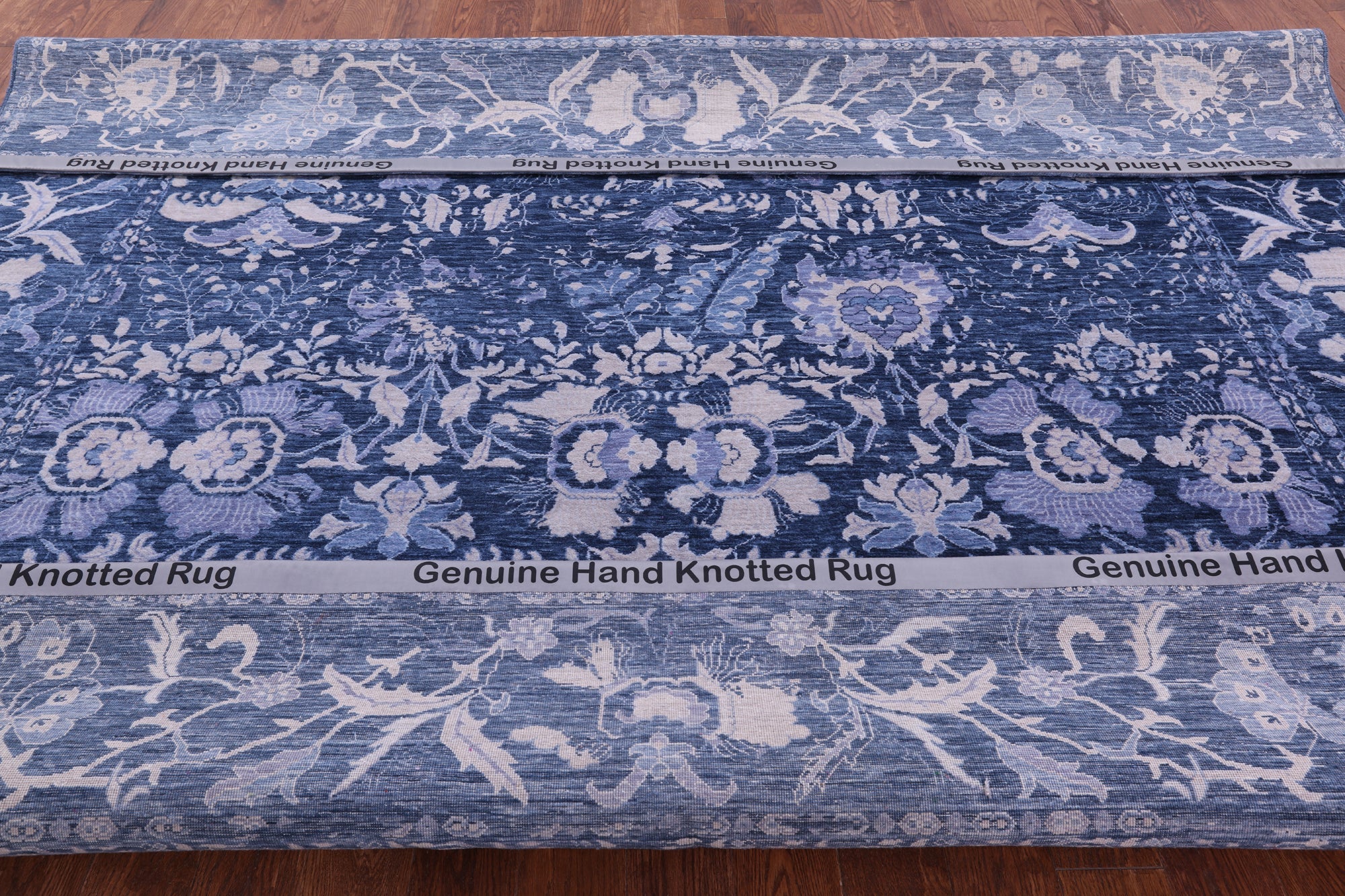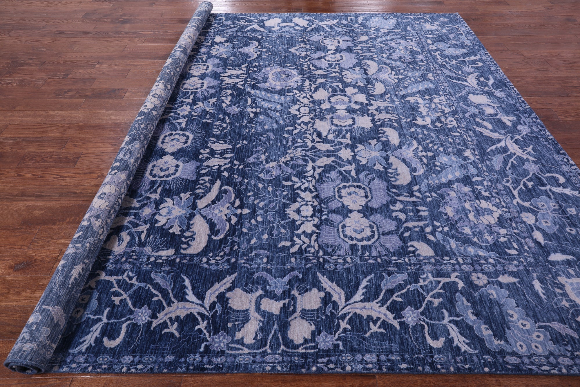 Blue 10' Square Modern Hand-Knotted Wool Rug - Q11897