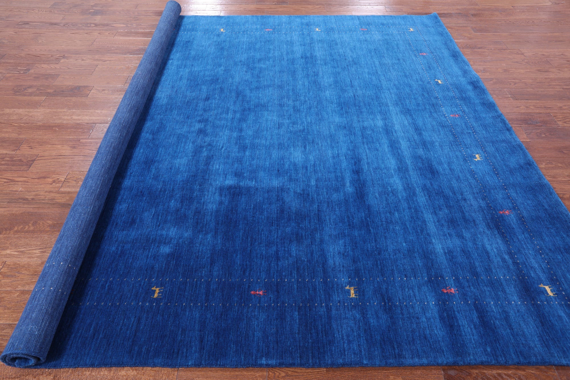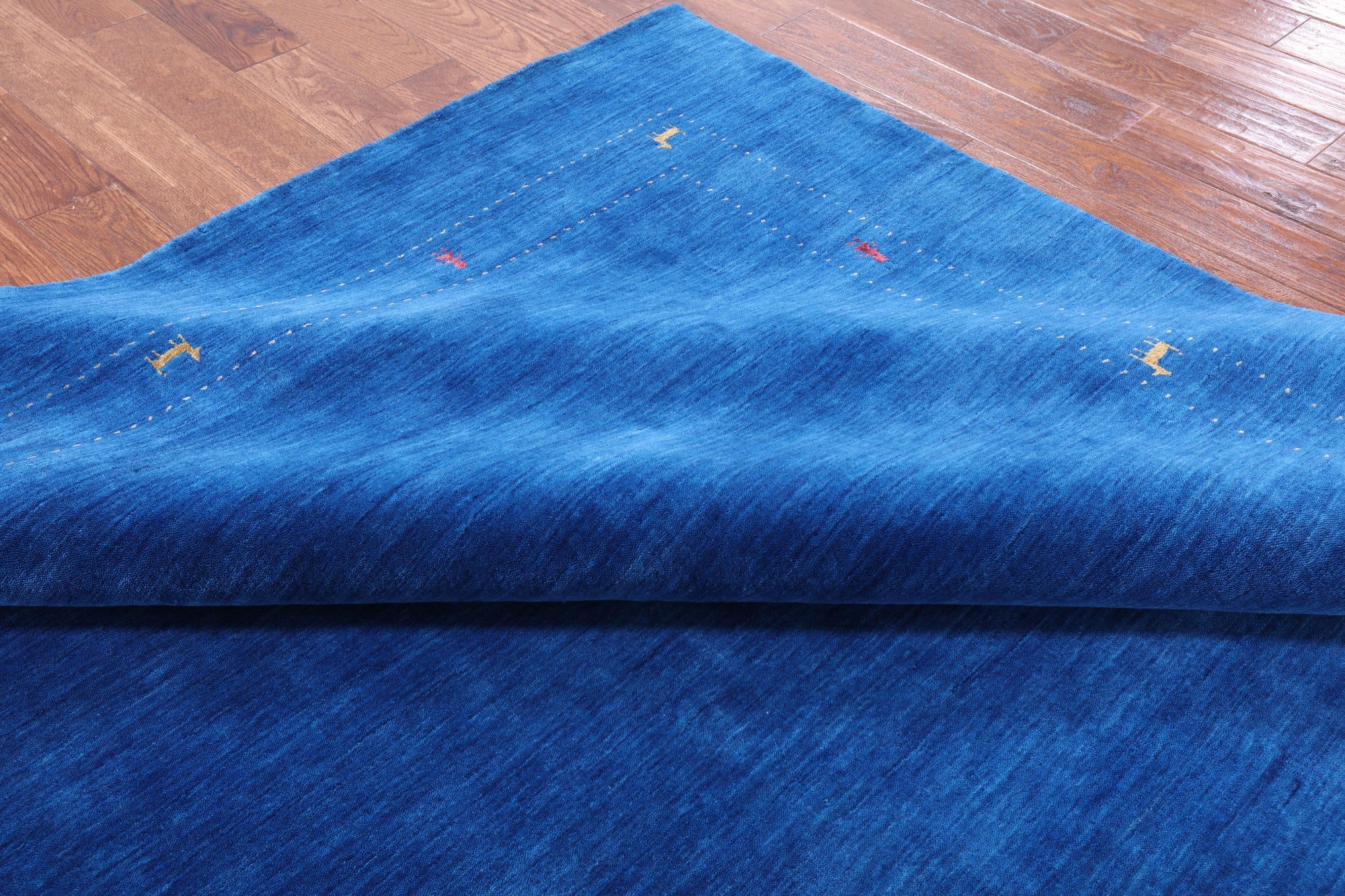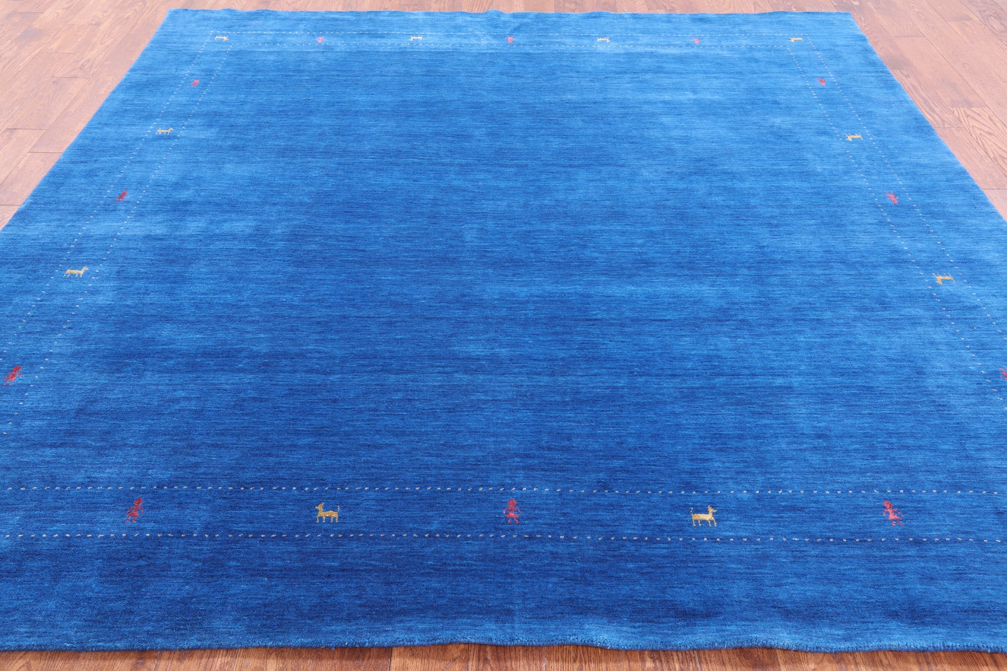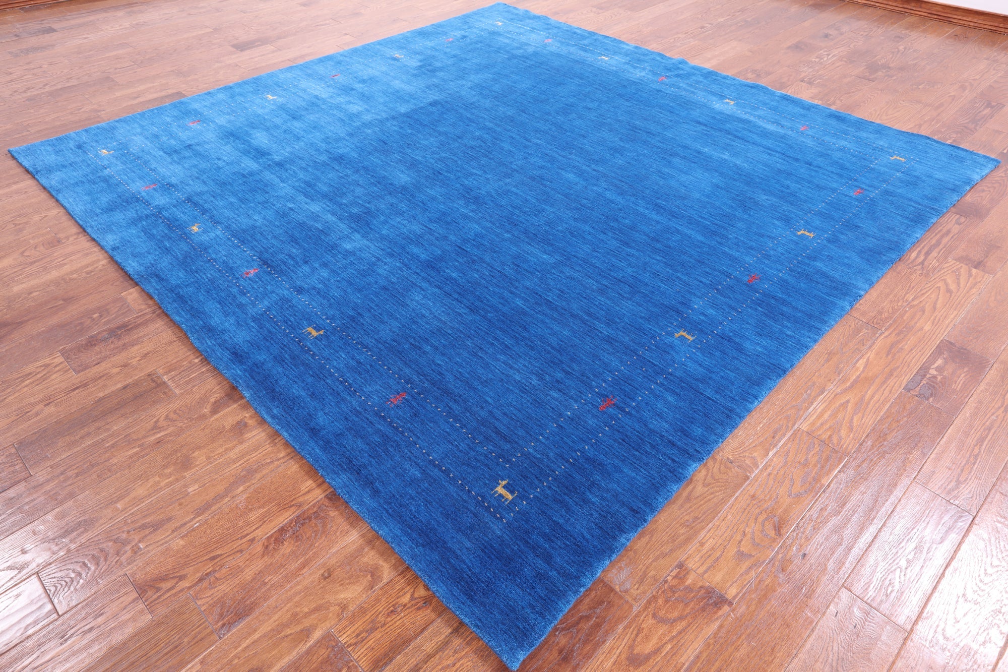 Blue 9' Square Persian Gabbeh Handmade Rug - Q6990 is backordered and will ship as soon as it is back in stock.