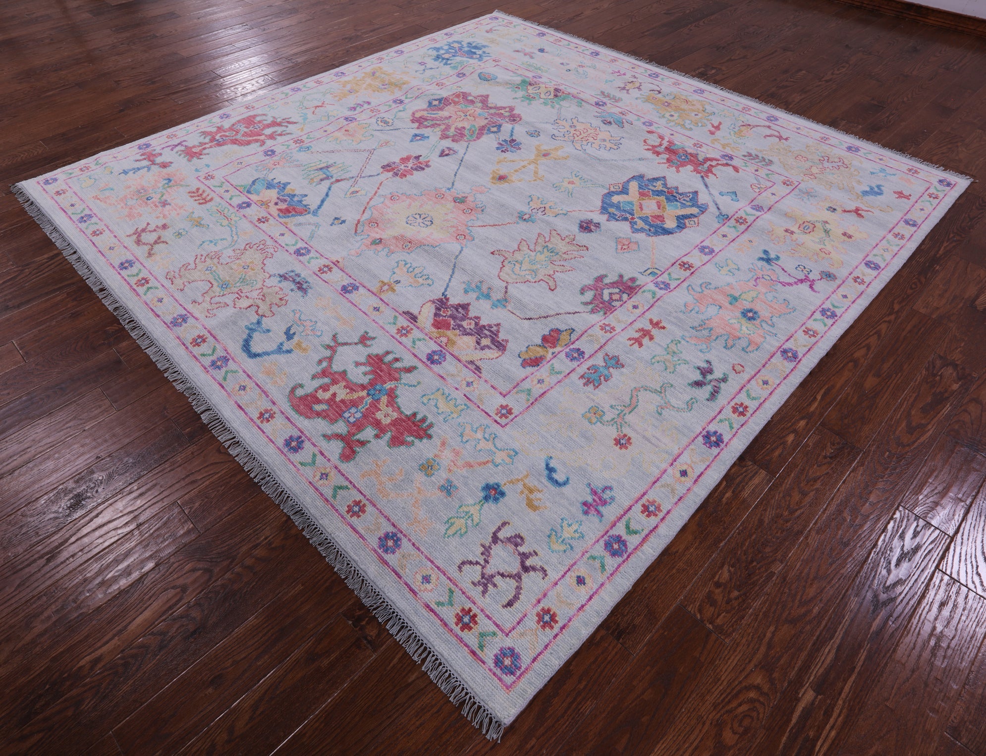 Blue 9' Square Turkish Angora Oushak Handmade Wool Rug - Q21310 is backordered and will ship as soon as it is back in stock.