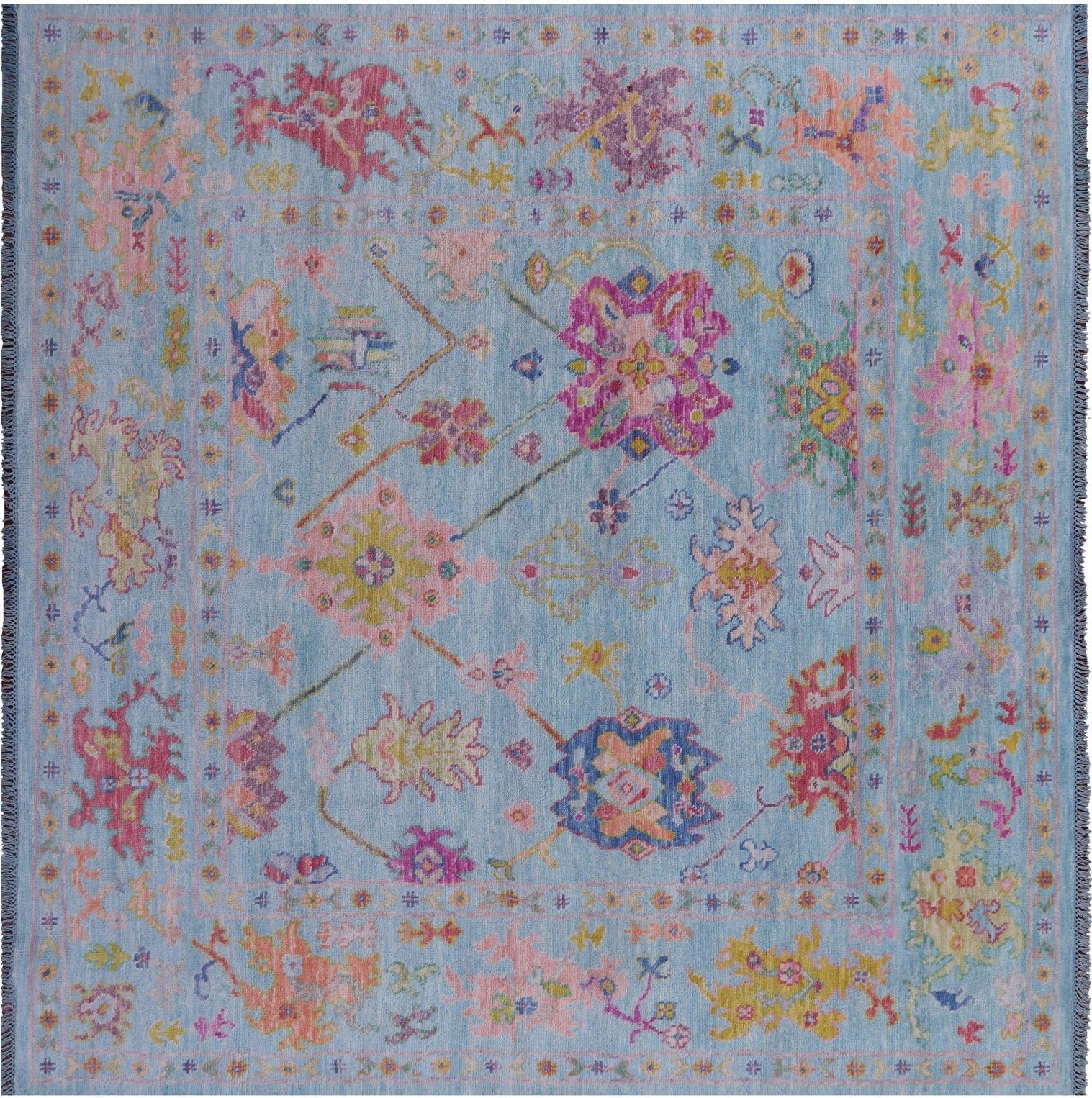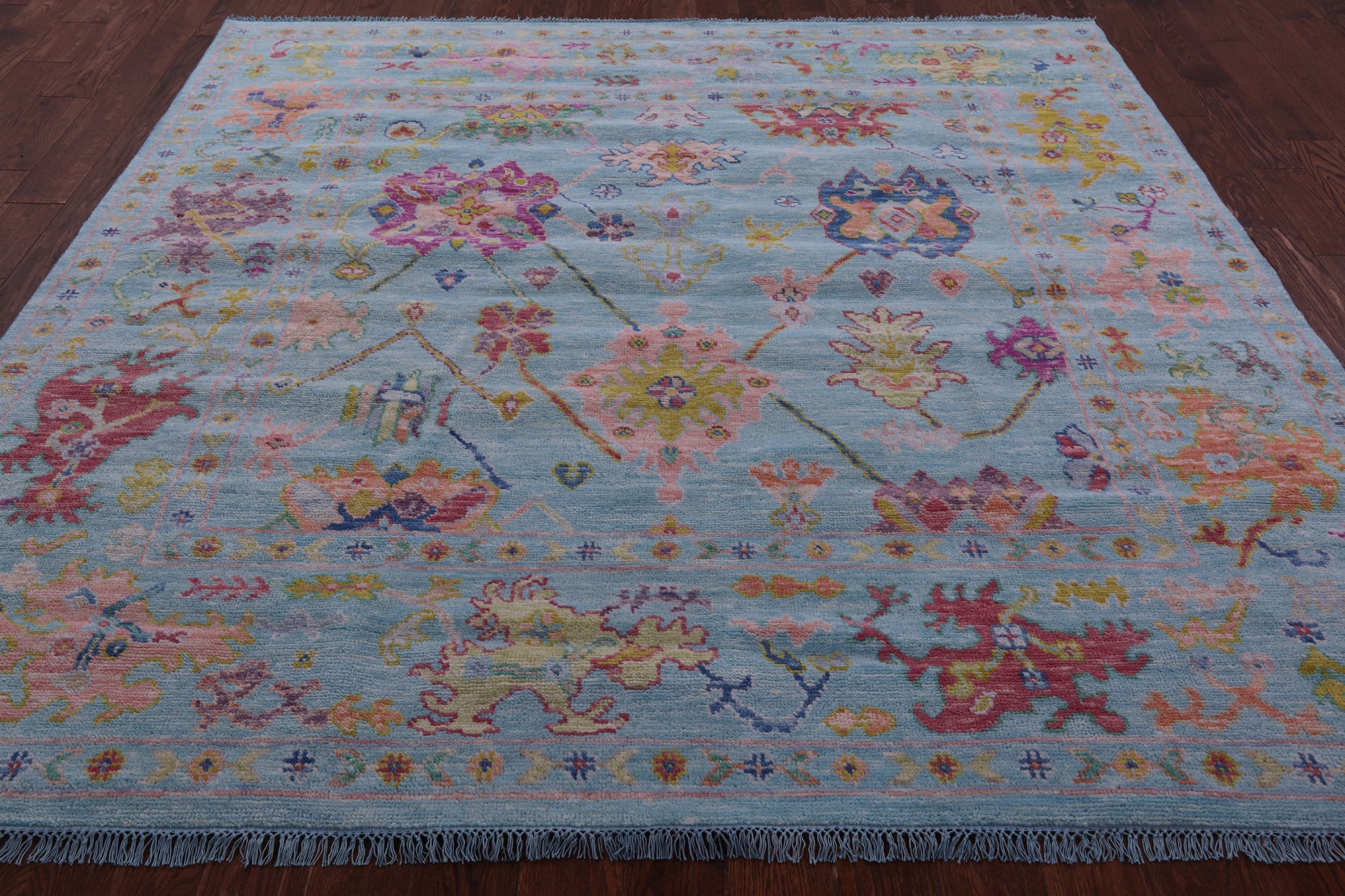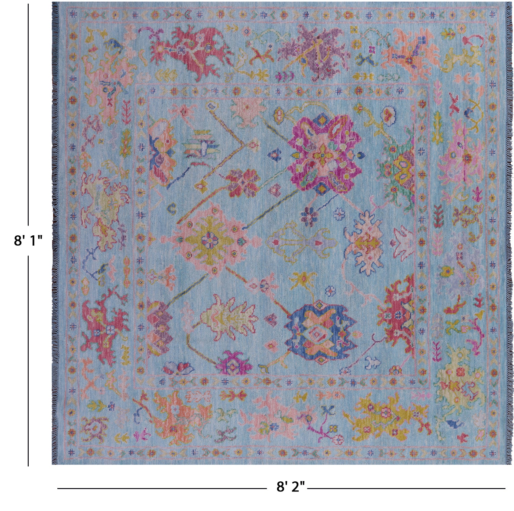 Blue 8' Square Turkish Angora Oushak Handmade Wool Rug - Q21335 is backordered and will ship as soon as it is back in stock.