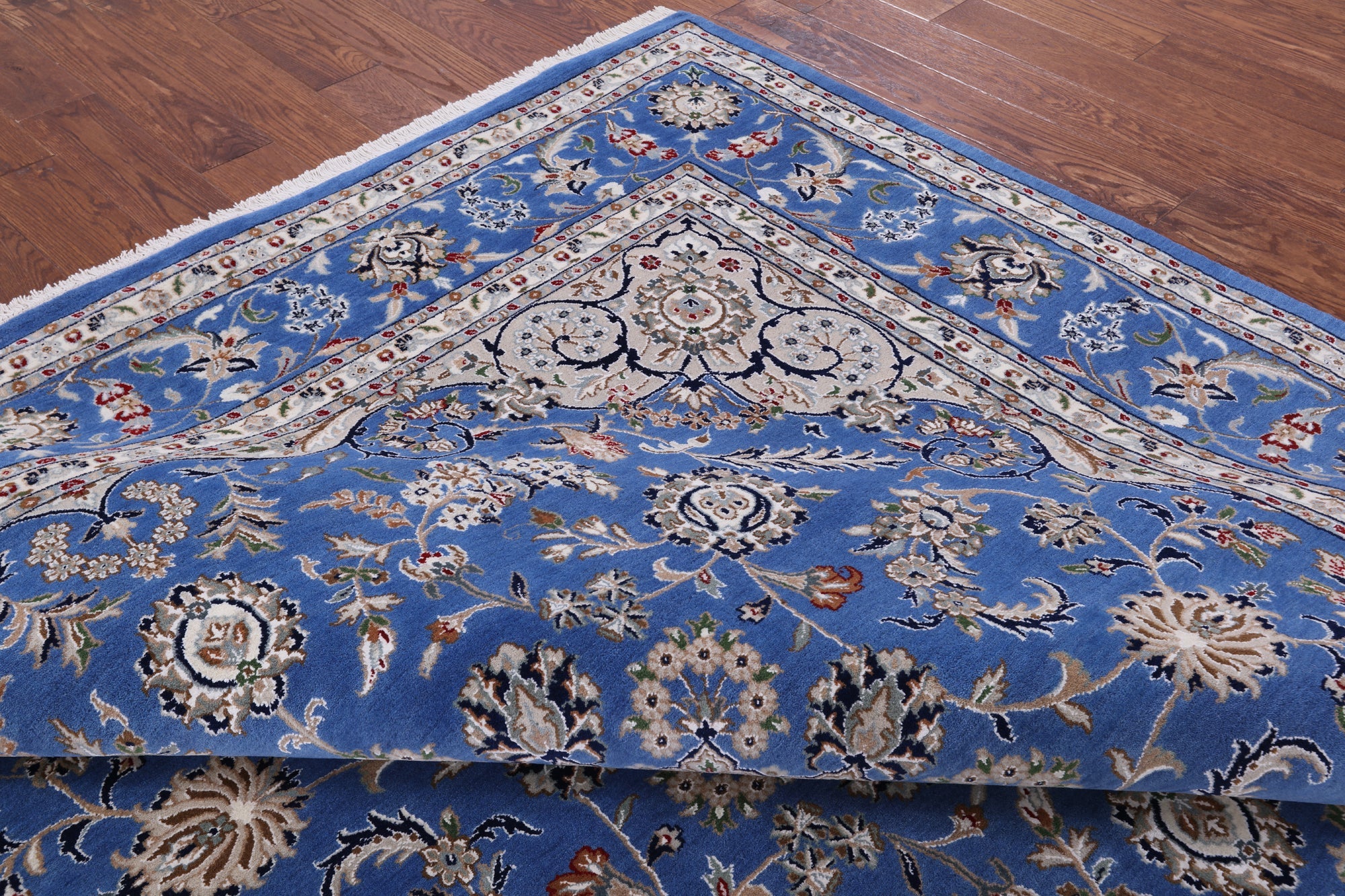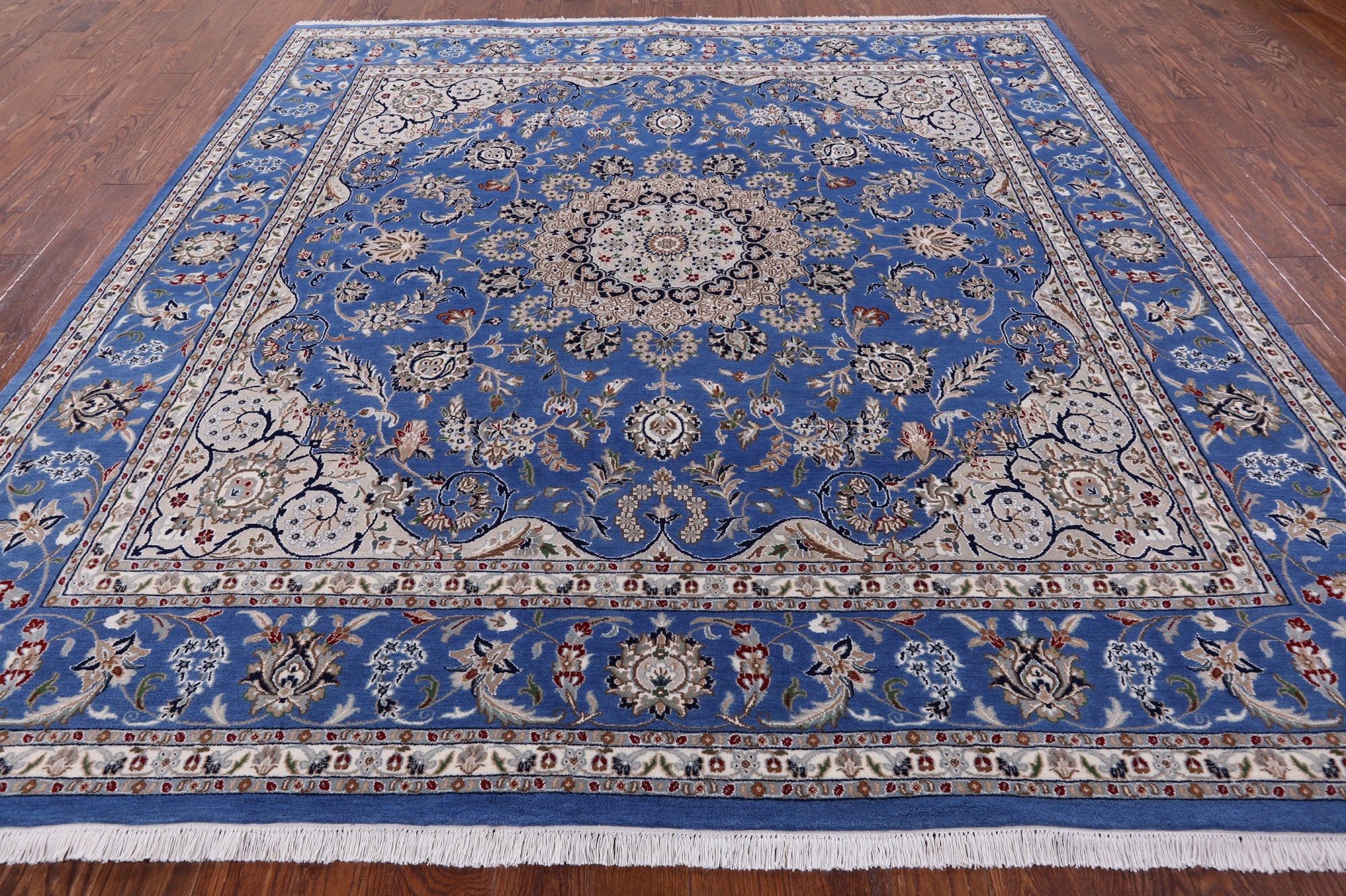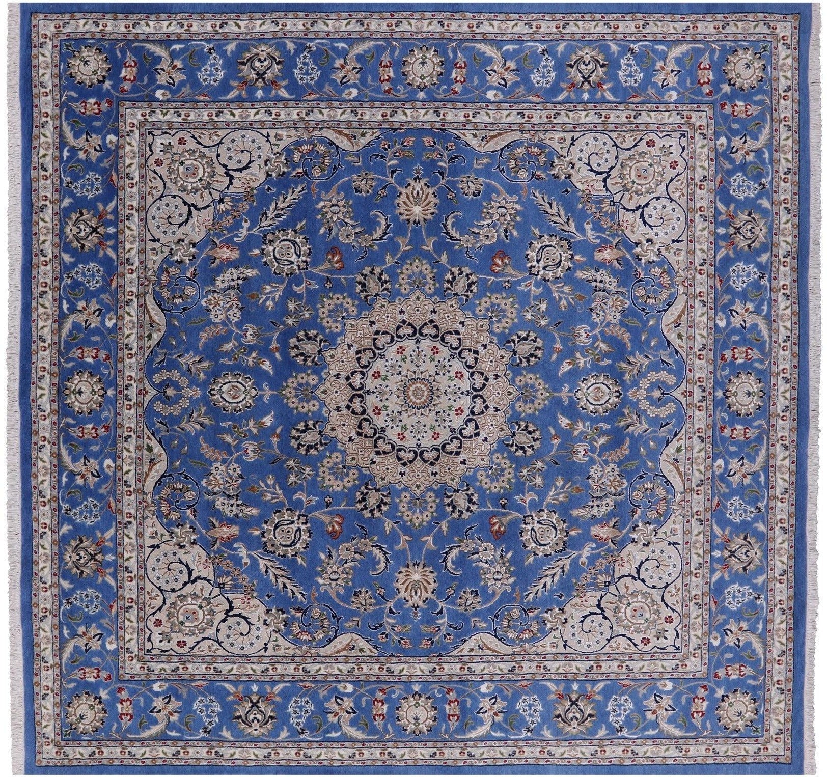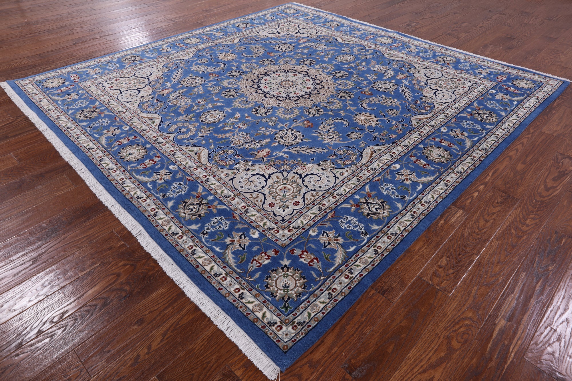 Blue 9' Square Wool & Silk Persian Nain Hand-Knotted Rug - Q6140 is backordered and will ship as soon as it is back in stock.