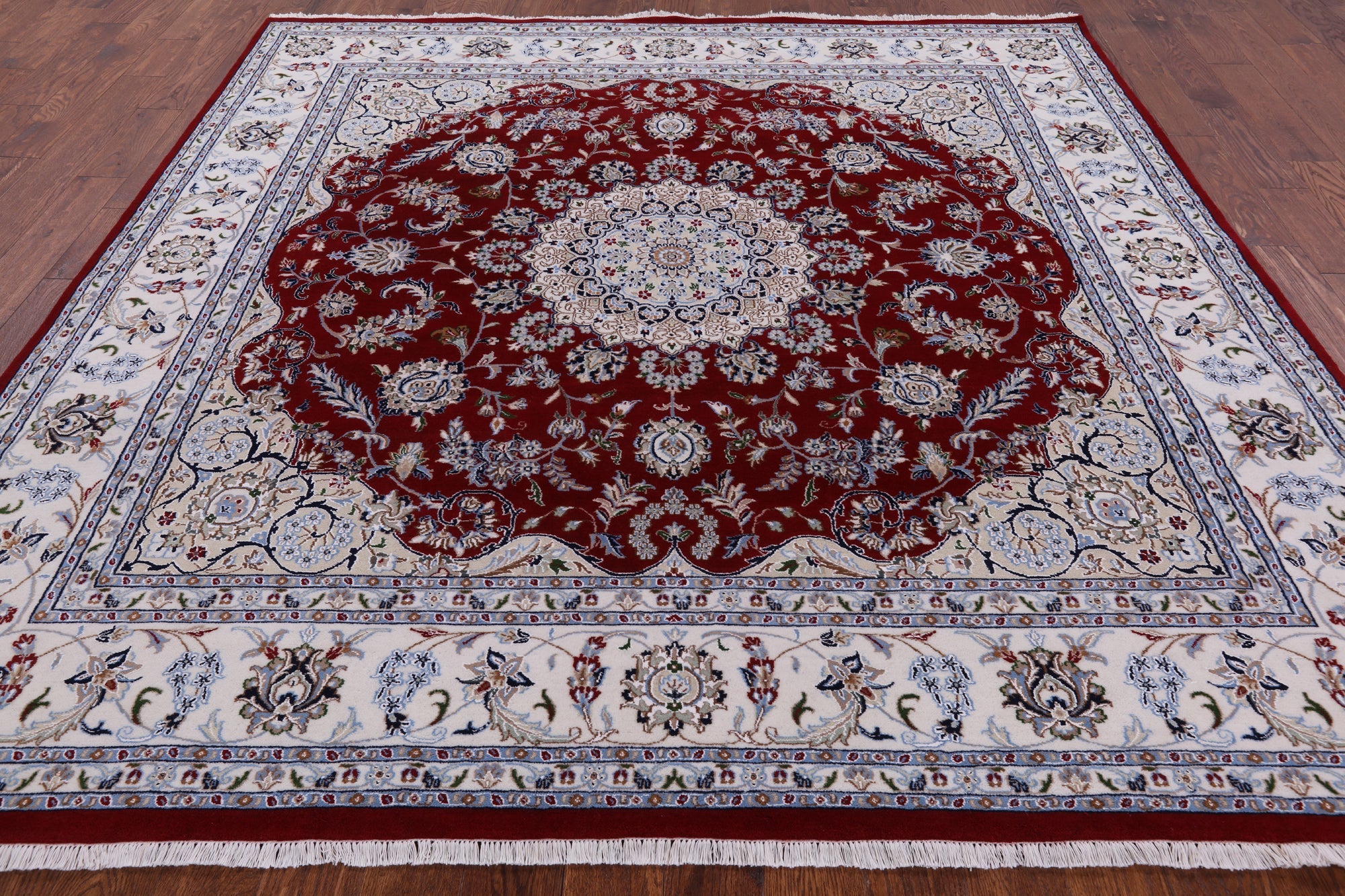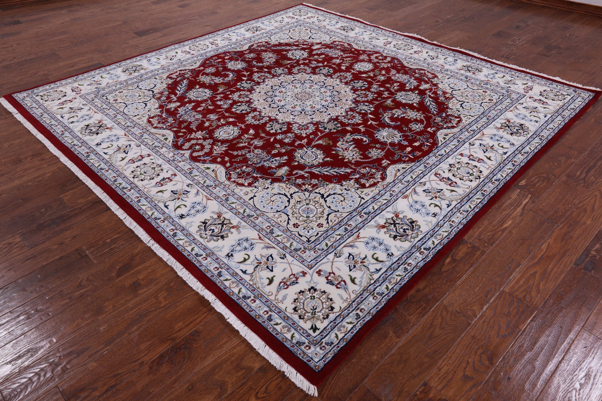 Burgundy 9' Square Persian Nain Handmade Wool & Silk Rug - Q4466