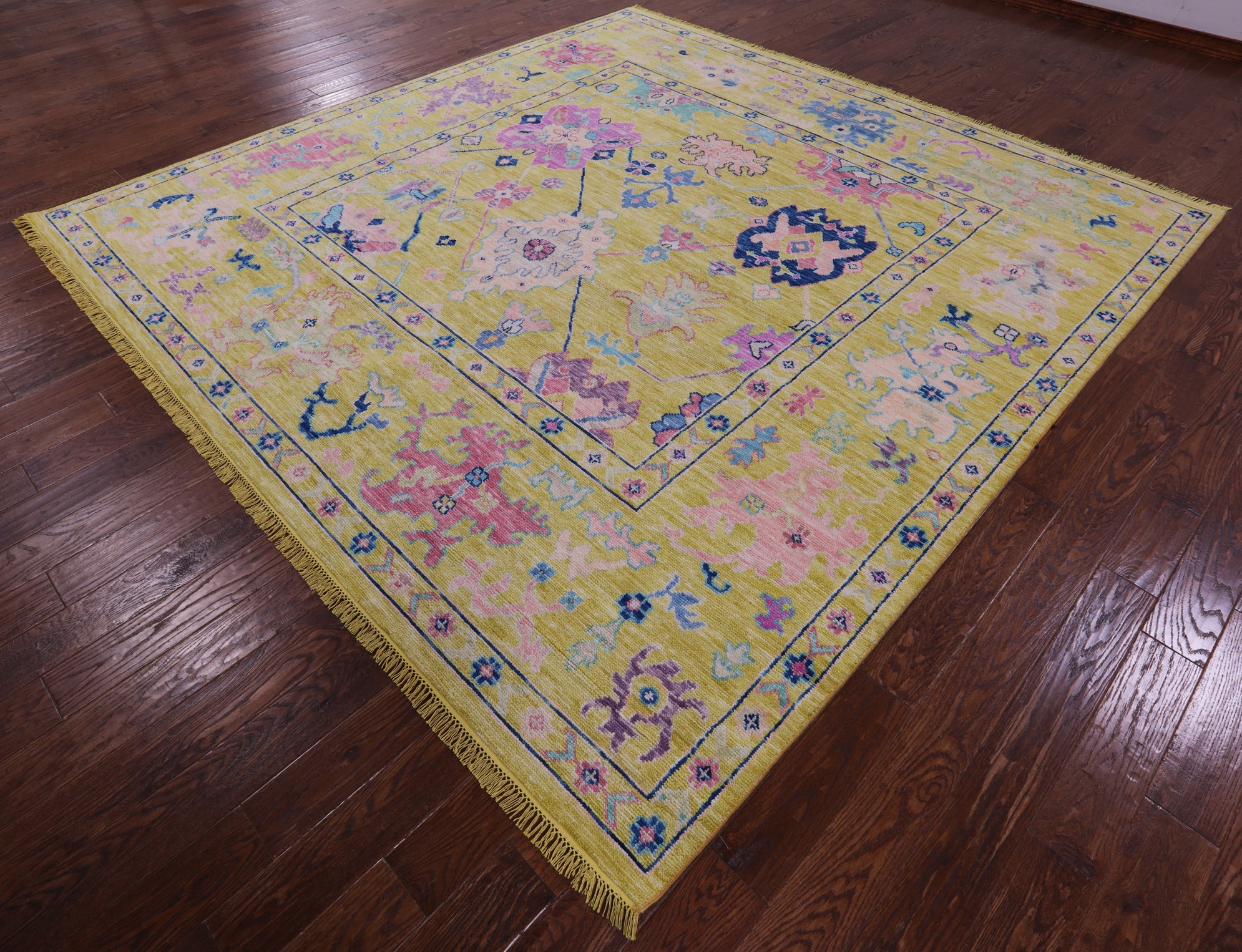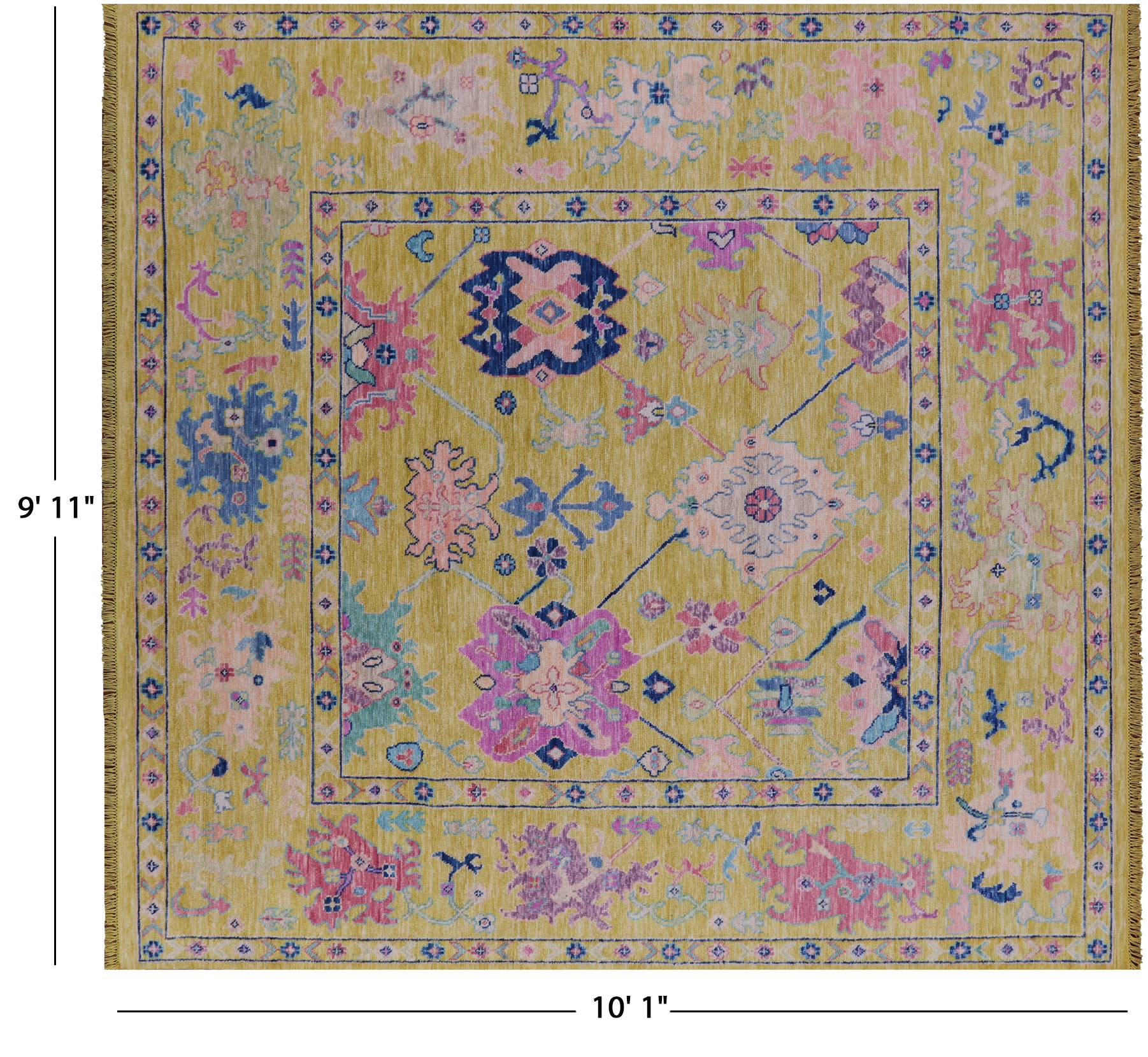 Gold 10' Square Turkish Angora Oushak Hand Knotted Wool Rug - Q21275