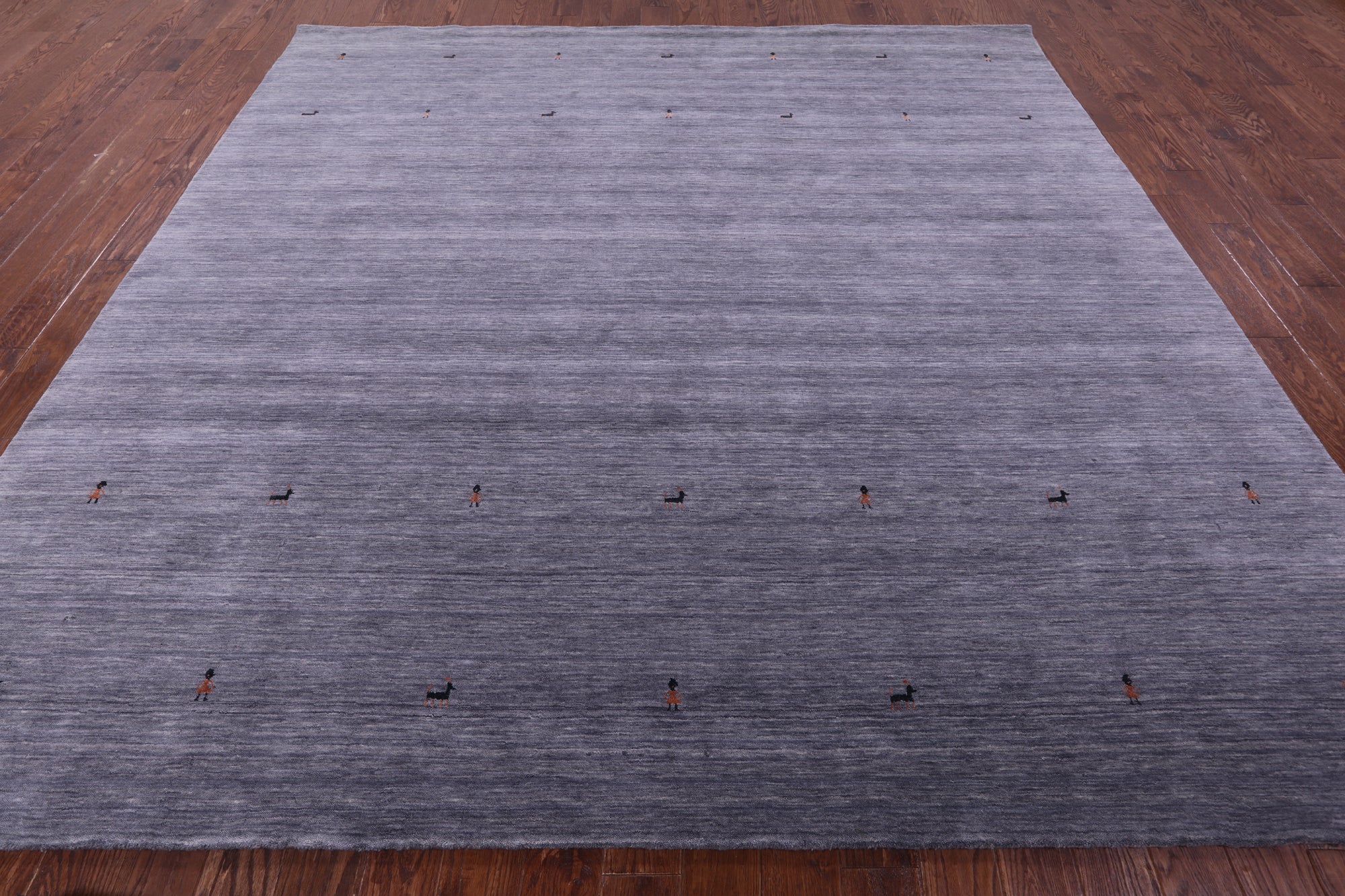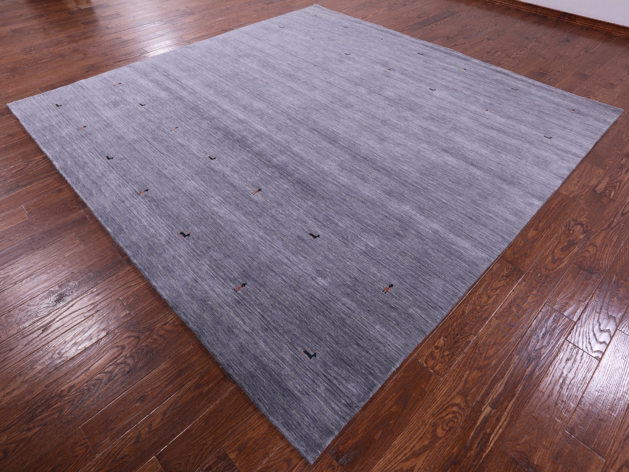 Grey 10' Square Hand Knotted Persian Gabbeh Wool Rug - Q15190