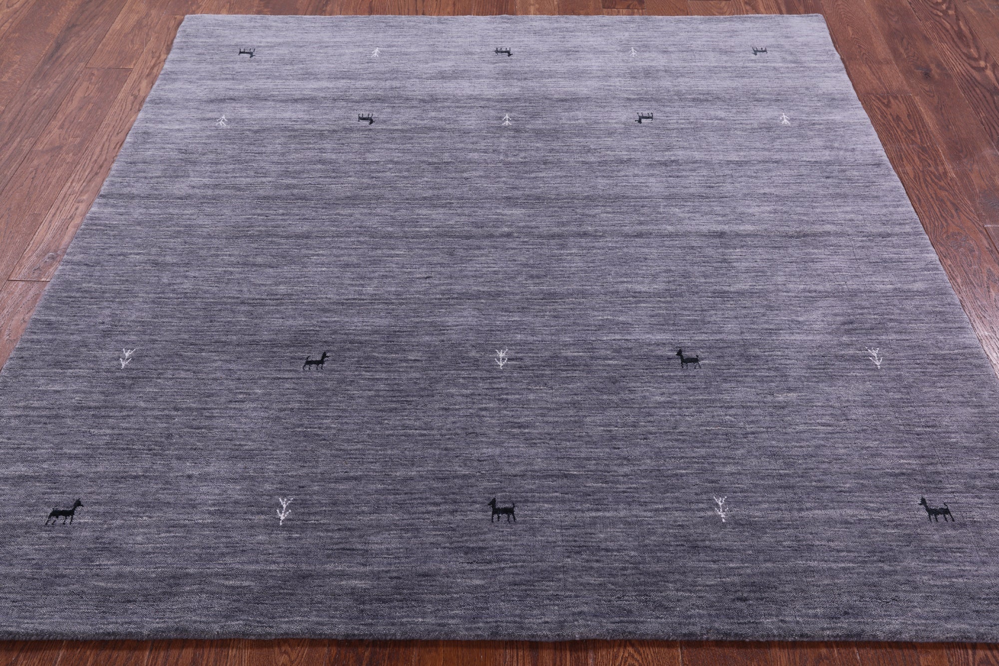Grey 6' Square Hand Knotted Persian Gabbeh Wool Rug - Q15326 is backordered and will ship as soon as it is back in stock.