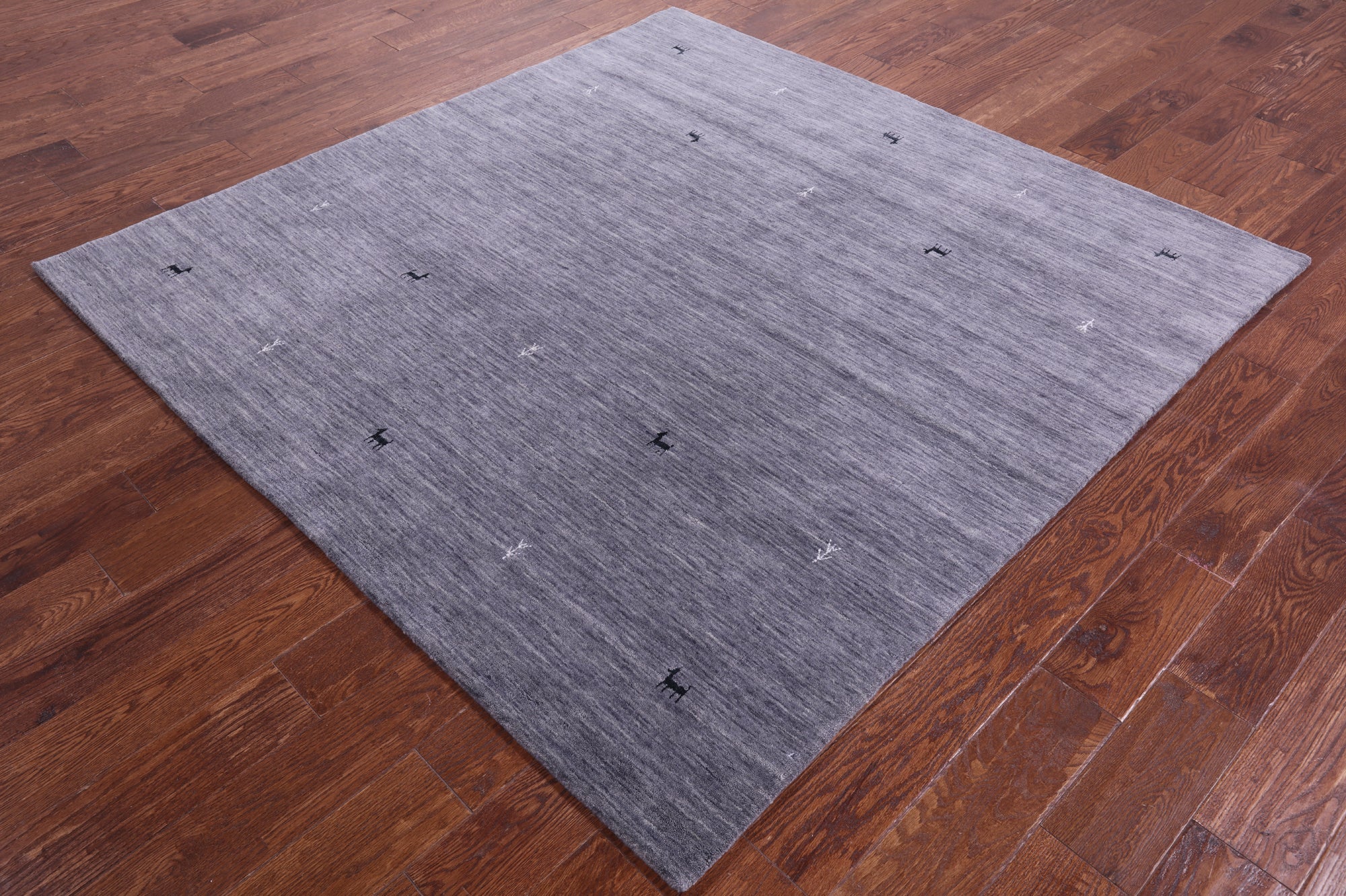 Grey 6' Square Hand Knotted Persian Gabbeh Wool Rug - Q15326