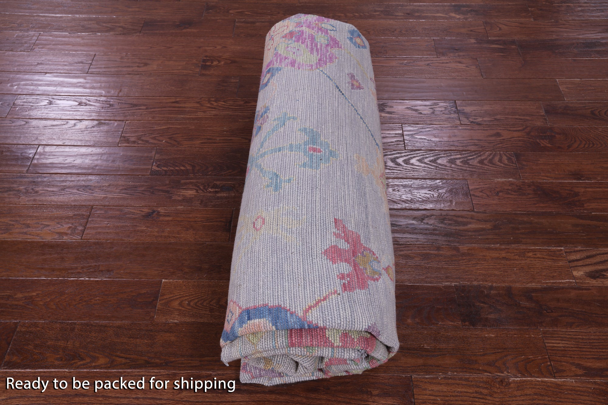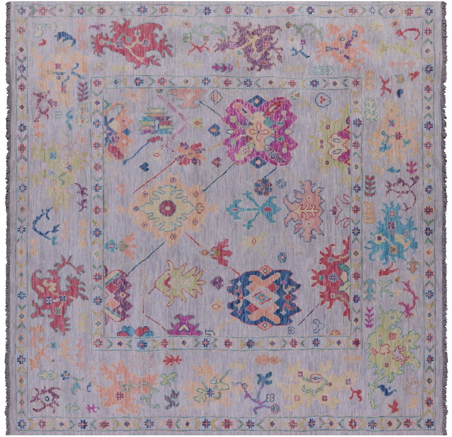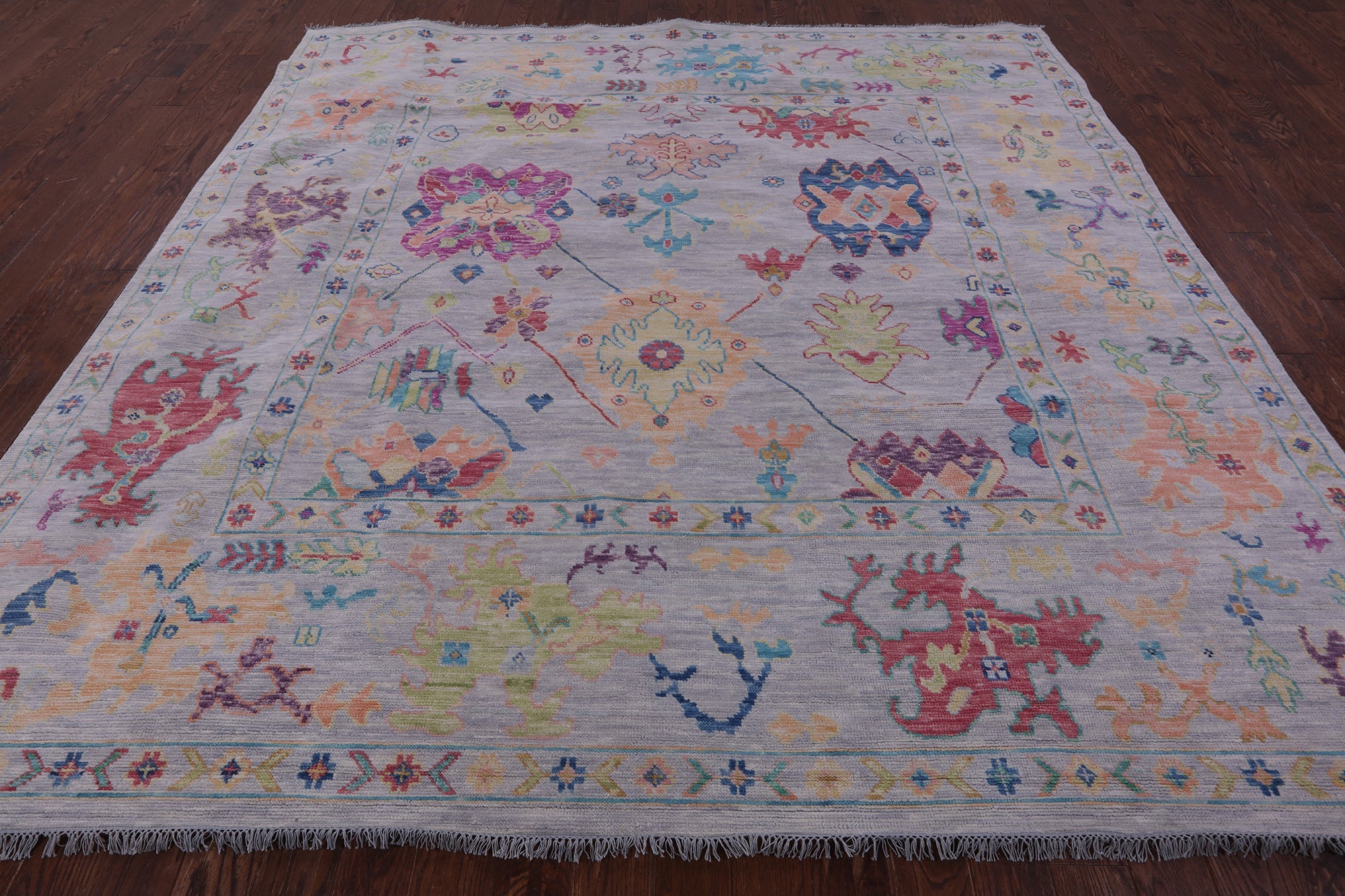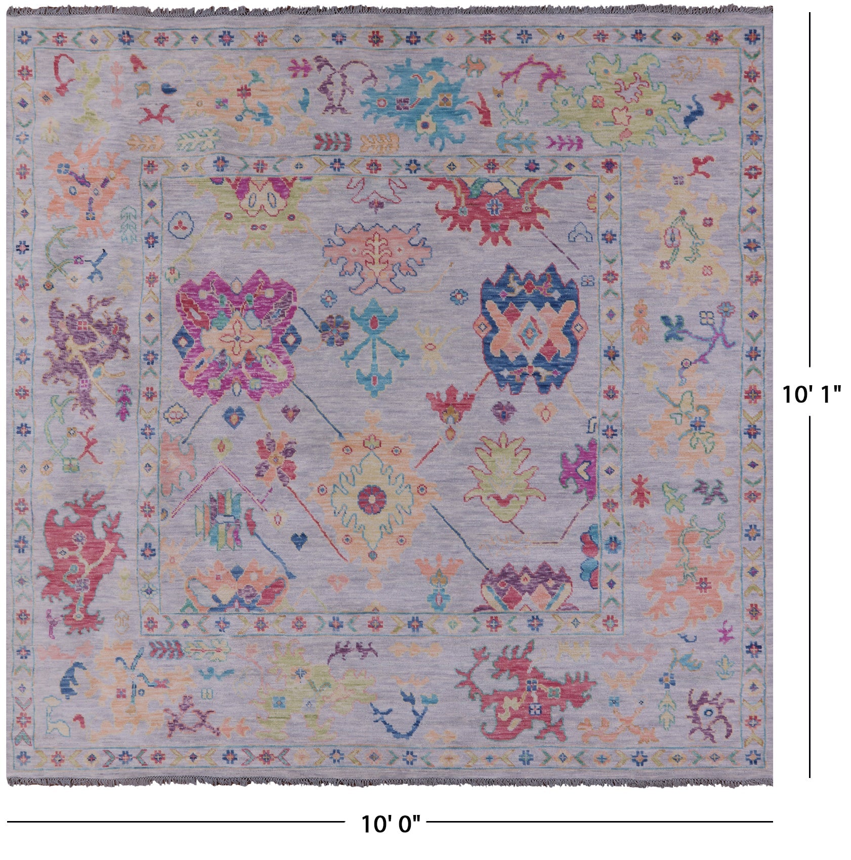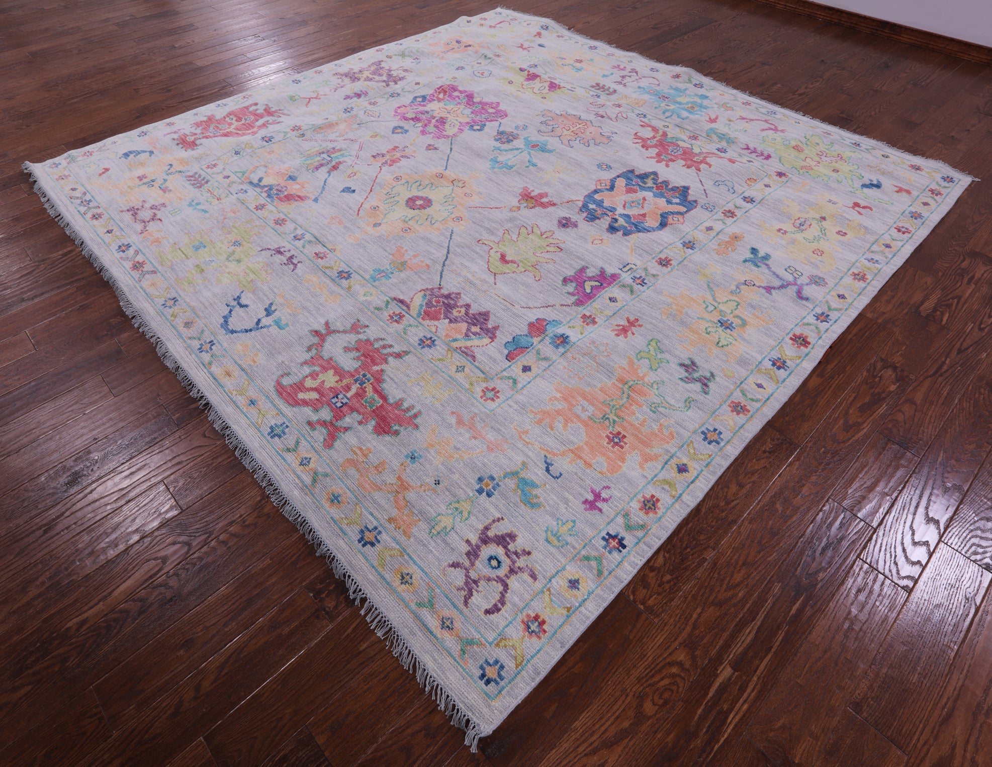 Grey 10' Square Hand Knotted Turkish Angora Oushak Rug - Q19797
