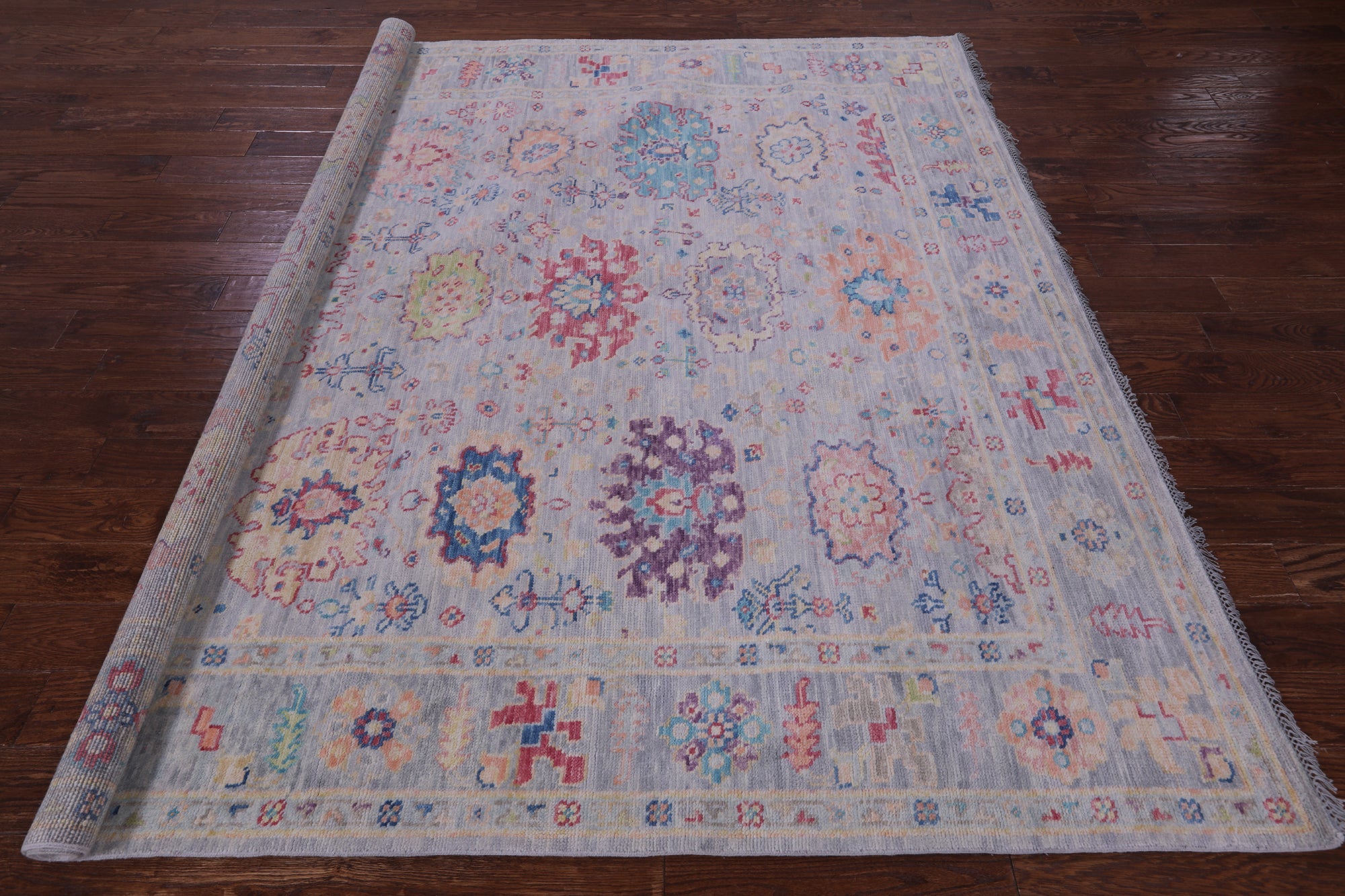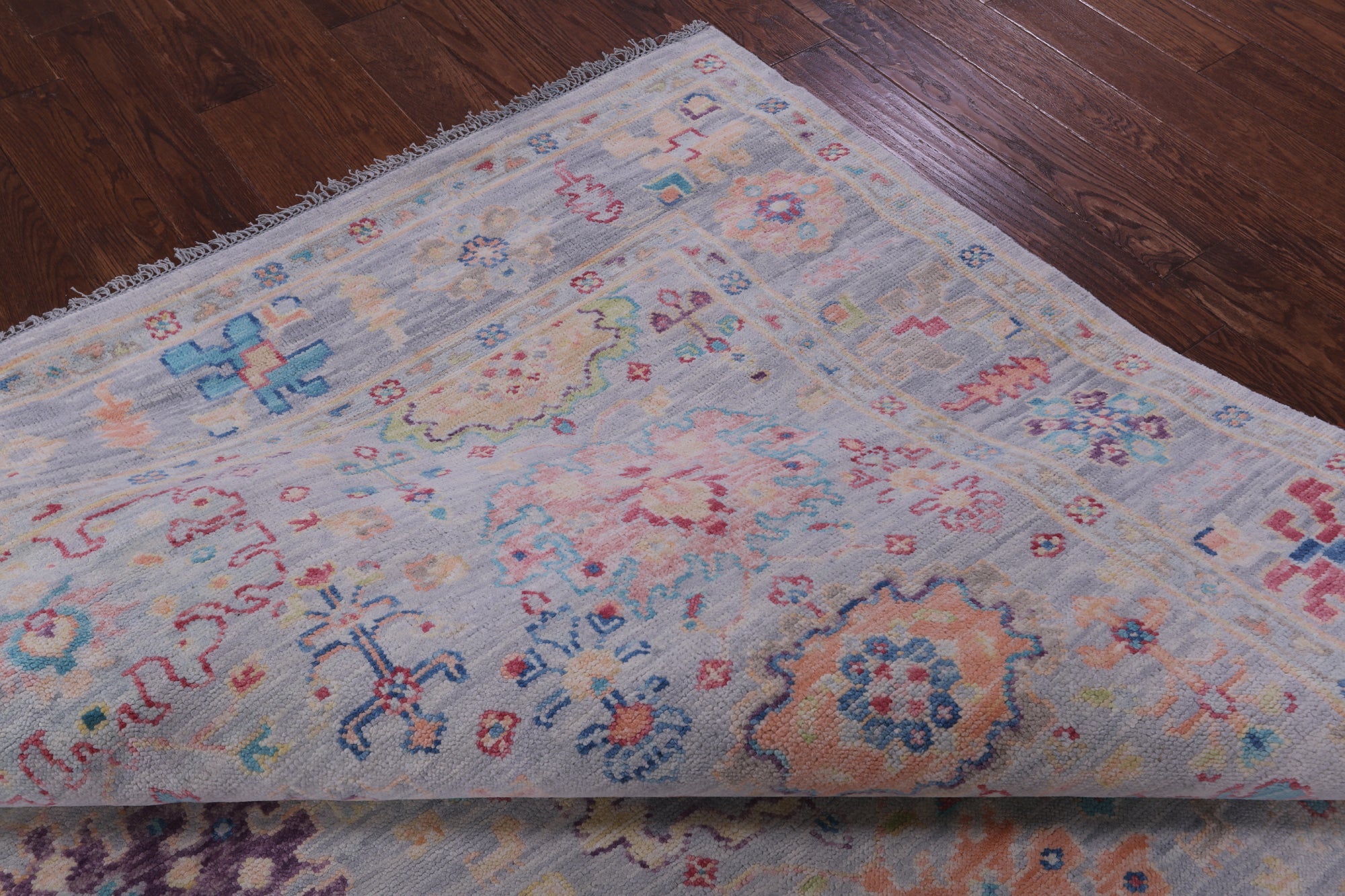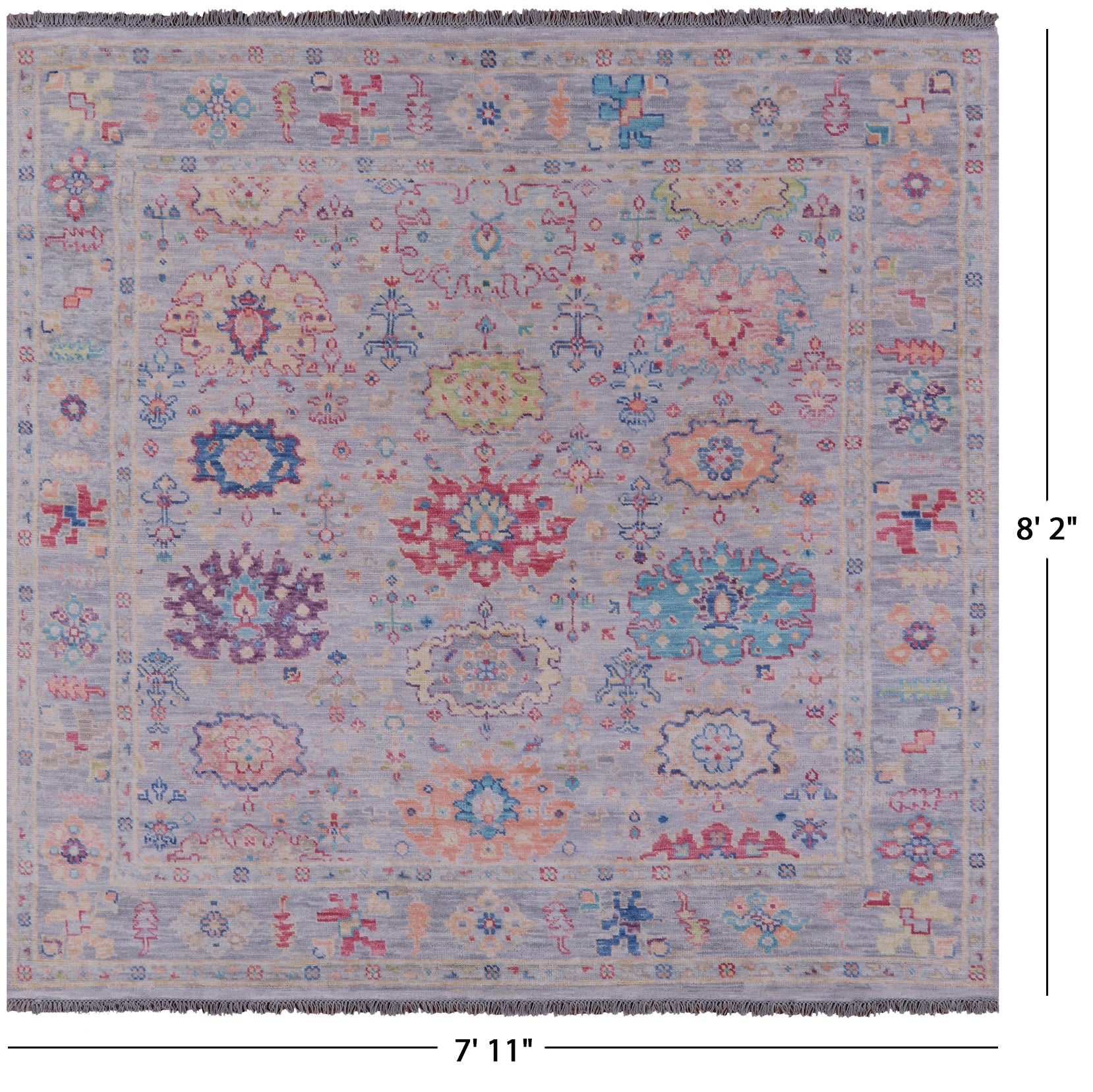 Grey 8' Square Hand Knotted Turkish Angora Oushak Rug - Q19871 is backordered and will ship as soon as it is back in stock.