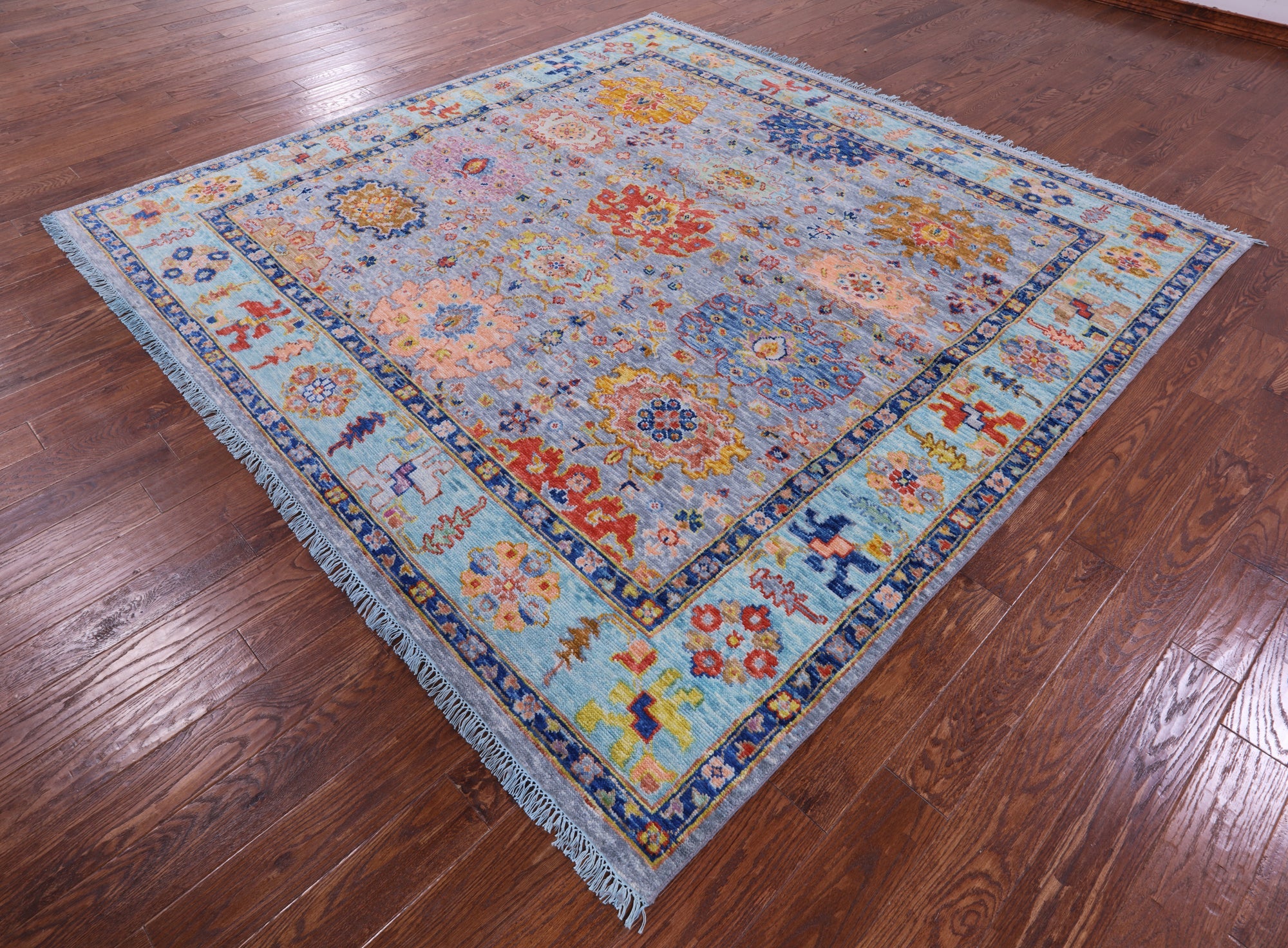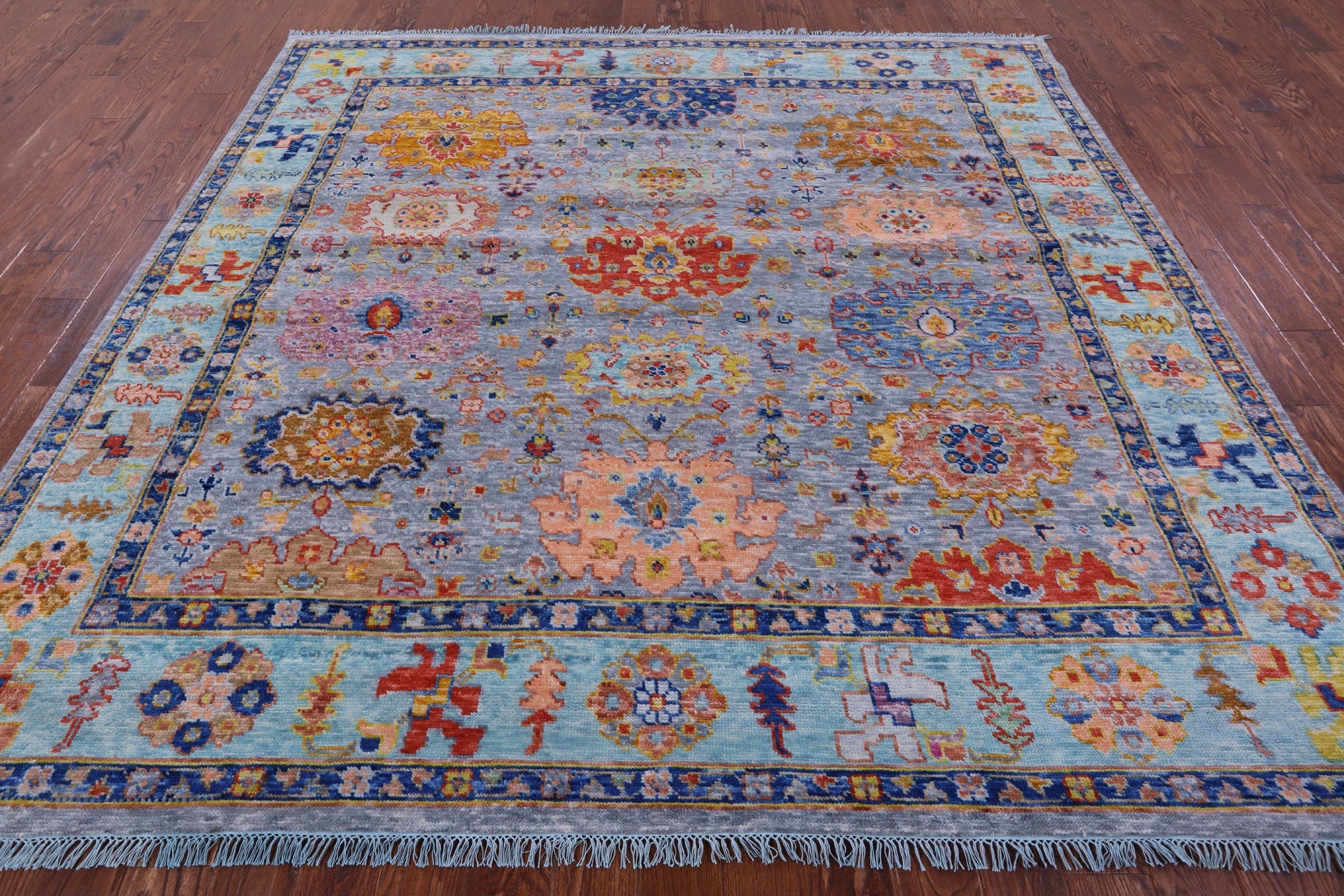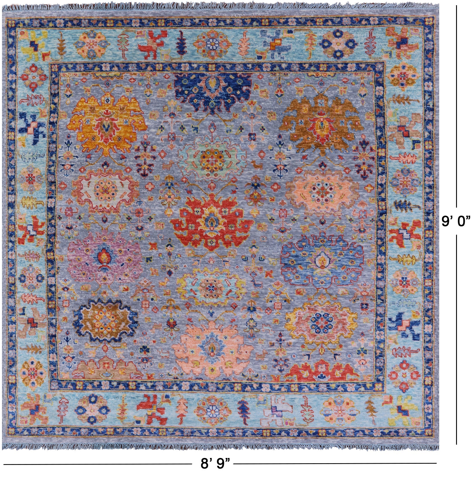 Grey 9' Square Hand Knotted Turkish Angora Oushak Wool Rug - Q21314