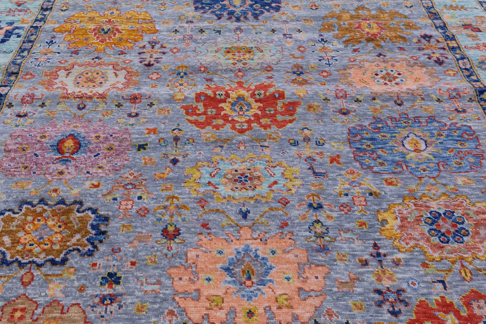 Grey 9' Square Hand Knotted Turkish Angora Oushak Wool Rug - Q21314 is backordered and will ship as soon as it is back in stock.