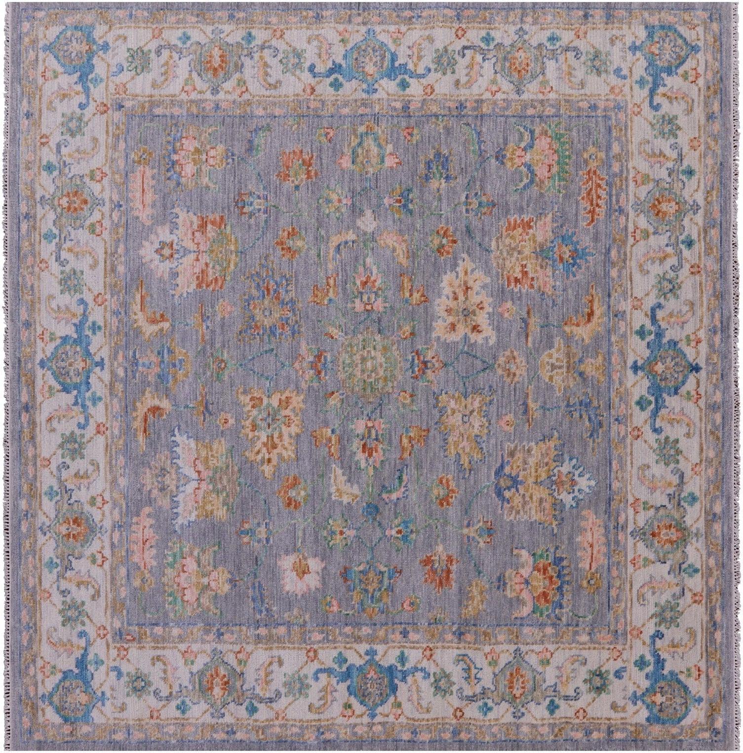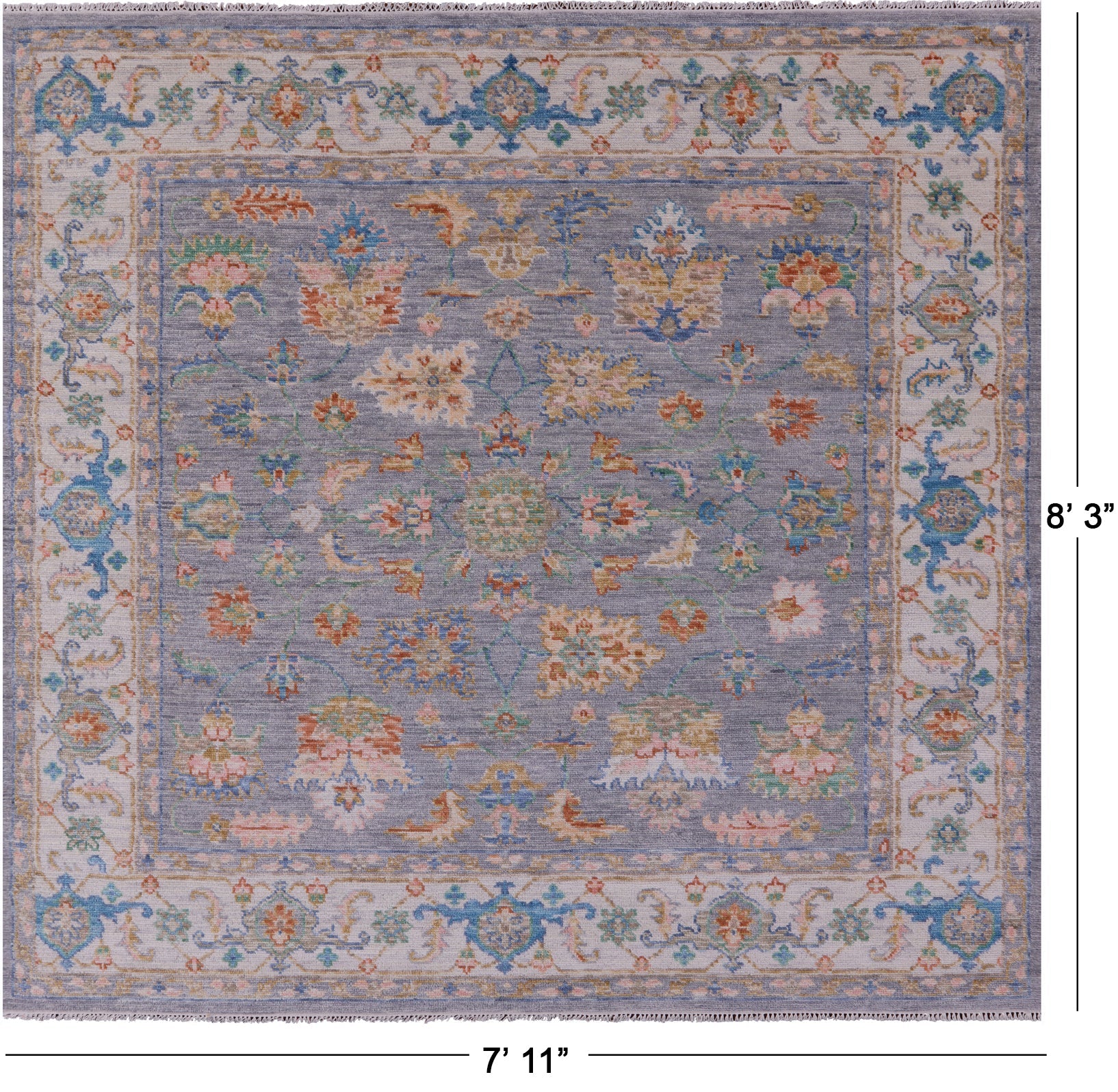 Grey 8' Square Handmade Heriz Serapi Wool Rug - Q20026