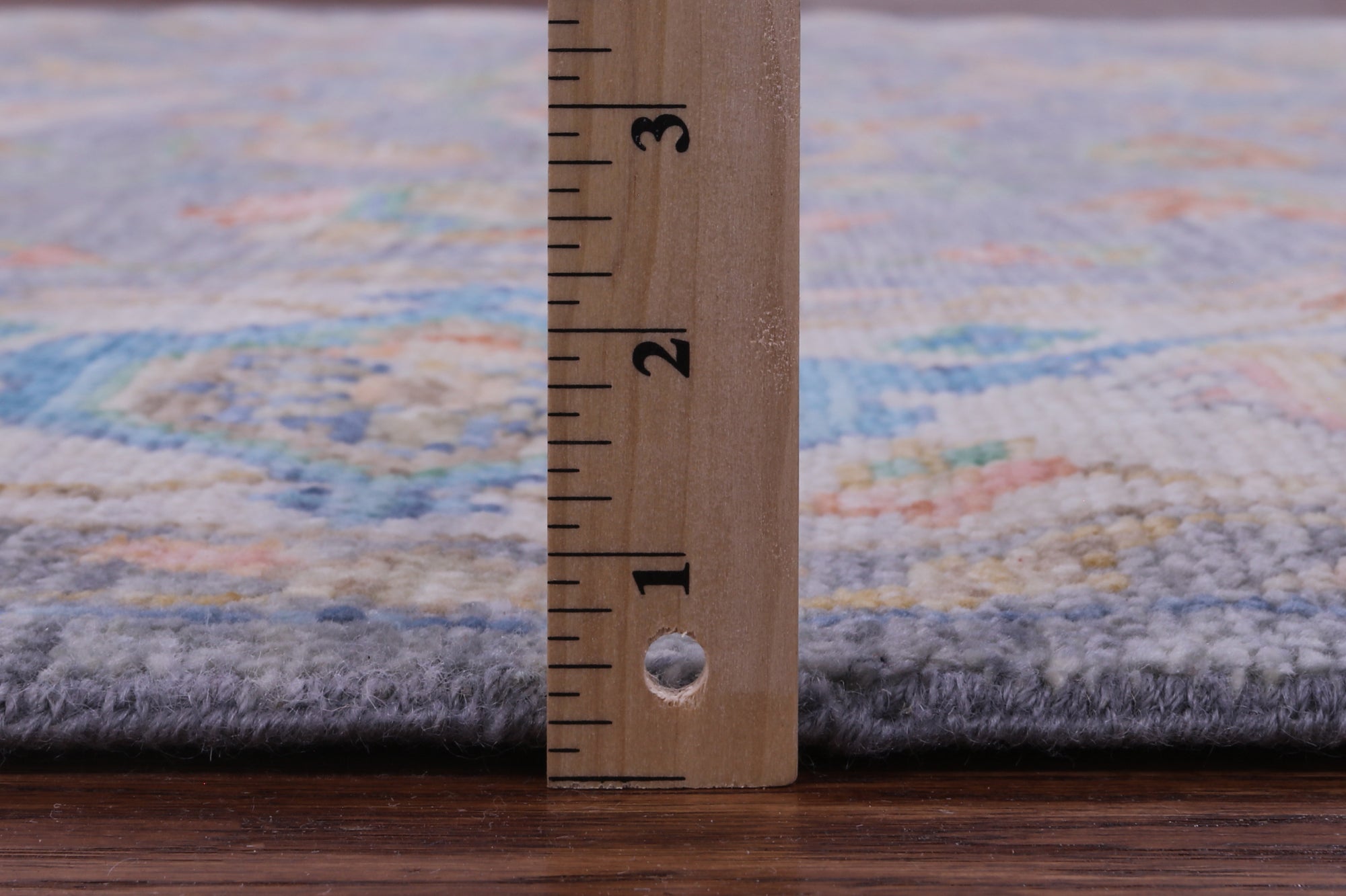 Grey 8' Square Handmade Heriz Serapi Wool Rug - Q20026 is backordered and will ship as soon as it is back in stock.
