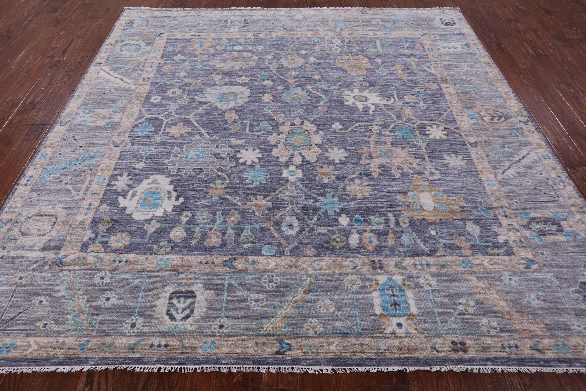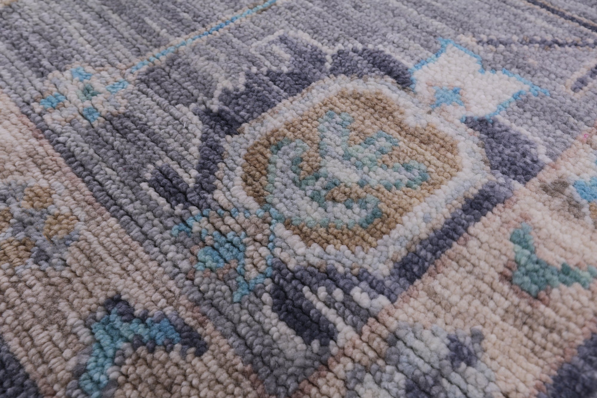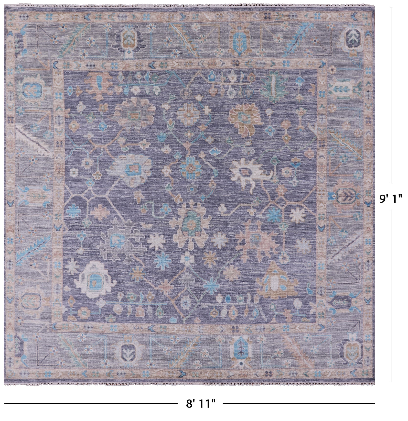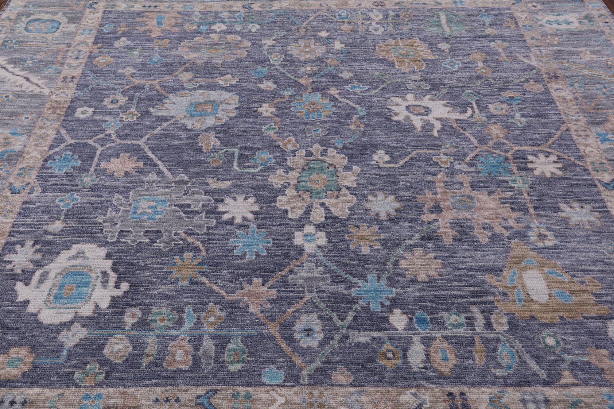 Grey 9' Square Handmade Turkish Angora Oushak Wool Rug - Q13299 is backordered and will ship as soon as it is back in stock.