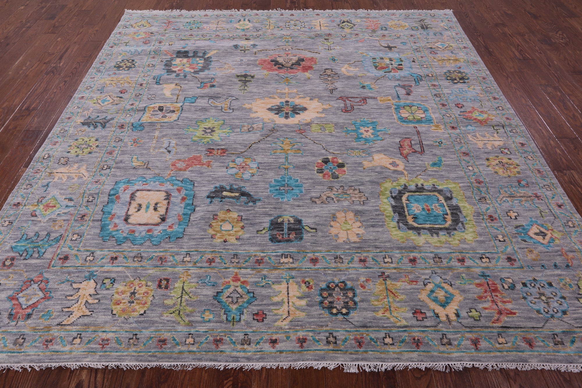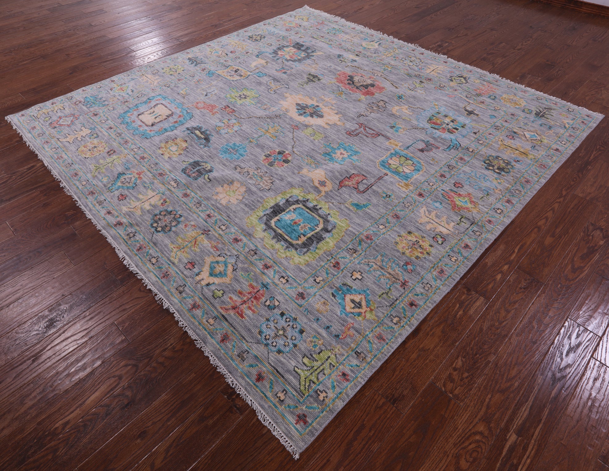 Grey 9' Square Handmade Turkish Angora Oushak Wool Rug - Q18991