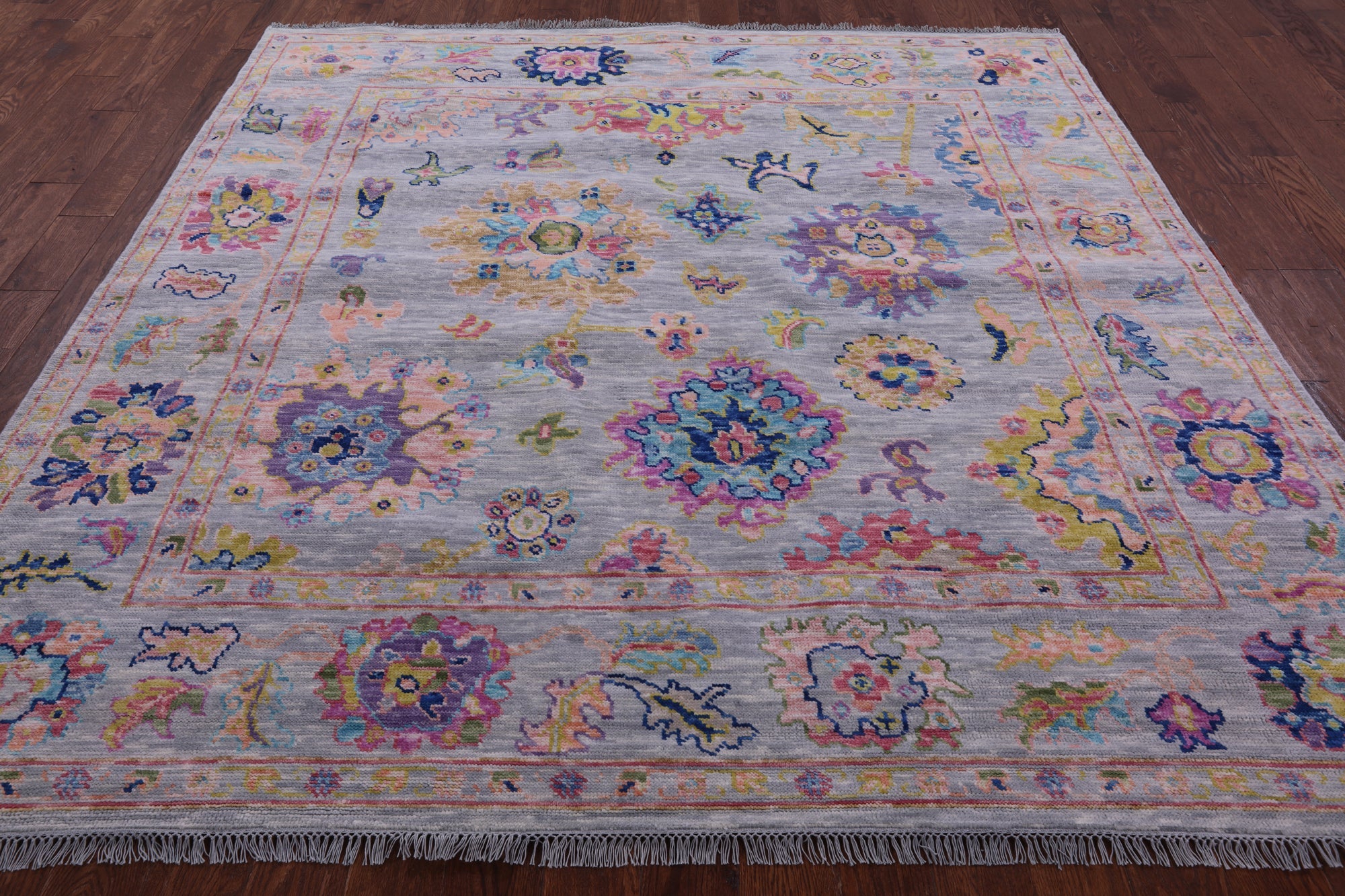 Grey 8' Square Handmade Turkish Angora Oushak Wool Rug - Q19848 is backordered and will ship as soon as it is back in stock.